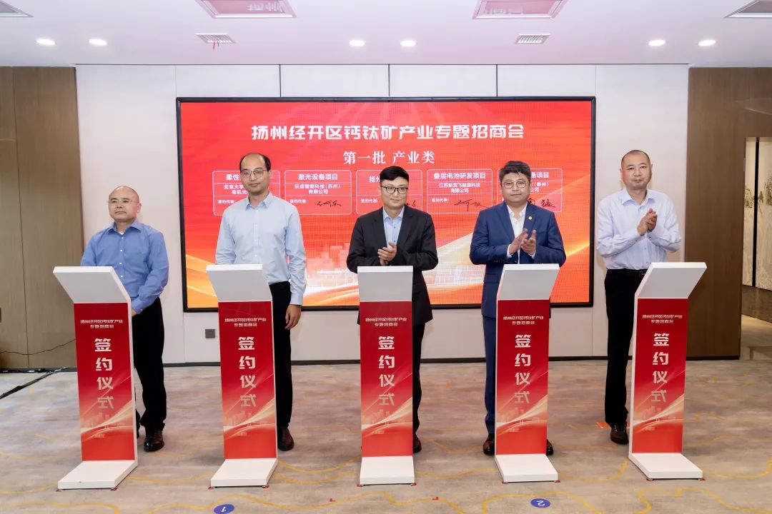 4月(yue)17日下午(wu),揚州經開區鈣鈦(tai)(tai)礦(kuang)(kuang)產(chan)業專題招(zhao)商(shang)會舉行(xing),匯聚了“政(zheng)、產(chan)、學(xue)、研、用”各(ge)界眾(zhong)多嘉賓,搭建深度合作與交(jiao)流(liu)的(de)平臺(tai),共(gong)同為鈣鈦(tai)(tai)礦(kuang)(kuang)產(chan)業的(de)未來發展(zhan)出謀劃策。會上,“鈣鈦(tai)(tai)礦(kuang)(kuang)創新中心(xin)”揭牌儀(yi)式和8個鈣鈦(tai)(tai)礦(kuang)(kuang)項目簽約儀(yi)式順利舉行(xing)。 揚(yang)州市(shi)委常委、區(qu)黨(dang)工委書(shu)記(ji)張(zhang)利,區(qu)黨(dang)工委副書(shu)記(ji)、管委會主任胡春(chun)風,國合洲(zhou)際(ji)(ji)能源研究院院長(chang)(chang)王進、中國國際(ji)(ji)科技促進會鈣鈦礦產業分會秘書(shu)長(chang)(chang)曹松杰、揚(yang)州德滬智能裝備有限公司董事(shi)長(chang)(chang)王錦山、臨港前(qian)沿投資董事(shi)長(chang)(chang)單秀紅(hong)等嘉賓(bin),區(qu)領導張(zhang)明、周(zhou)峰共同出席了本(ben)次(ci)活動。 據悉(xi),本次(ci)簽(qian)約4個產業(ye)(ye)類(lei)項(xiang)(xiang)(xiang)目(mu)(mu)(北大(da)柔性鈣(gai)(gai)鈦(tai)礦(kuang)項(xiang)(xiang)(xiang)目(mu)(mu)、樂成激光設(she)備項(xiang)(xiang)(xiang)目(mu)(mu)、新霖飛疊層電(dian)池研(yan)發項(xiang)(xiang)(xiang)目(mu)(mu)等),4個科(ke)創類(lei)項(xiang)(xiang)(xiang)目(mu)(mu)(四(si)川大(da)學鈣(gai)(gai)鈦(tai)疊層聯合(he)實(shi)驗(yan)室項(xiang)(xiang)(xiang)目(mu)(mu)、華東理工(gong)鈣(gai)(gai)鈦(tai)礦(kuang)高層次(ci)人(ren)才培訓基地項(xiang)(xiang)(xiang)目(mu)(mu)、華供集團山西省鈣(gai)(gai)鈦(tai)礦(kuang)中試產業(ye)(ye)化平臺項(xiang)(xiang)(xiang)目(mu)(mu)等),8個項(xiang)(xiang)(xiang)目(mu)(mu)總投資約17億元(yuan)。這(zhe)些項(xiang)(xiang)(xiang)目(mu)(mu)的(de)簽(qian)約,標志著揚州經(jing)開區在鈣(gai)(gai)鈦(tai)礦(kuang)產業(ye)(ye)領(ling)域又邁出(chu)了(le)堅實(shi)的(de)一(yi)步,也為該(gai)產業(ye)(ye)的(de)發展(zhan)注入了(le)新的(de)活力。
