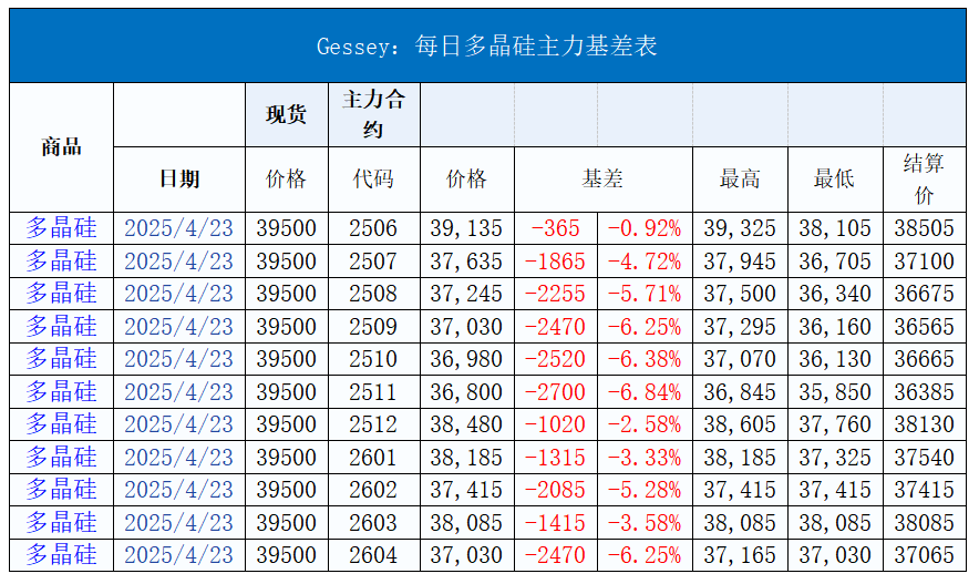 現貨市場價格變動: 多晶硅: 今(jin)日(ri)硅(gui)料(liao)(liao)價(jia)格(ge)小幅下跌,N型料(liao)(liao)主流價(jia)格(ge)在(zai)36-42.5元(yuan)(yuan)/公(gong)斤(jin),均價(jia)39.5元(yuan)(yuan)/公(gong)斤(jin)。N型顆粒硅(gui)主流價(jia)格(ge)在(zai)37-38.5元(yuan)(yuan)/公(gong)斤(jin),均價(jia)37.5元(yuan)(yuan)/公(gong)斤(jin),下跌3.85%。國產復投特級(ji)硅料(liao)主(zhu)流(liu)價(jia)(jia)(jia)格在(zai)33-36元(yuan)(yuan)/公斤(jin)(jin),均(jun)價(jia)(jia)(jia)35元(yuan)(yuan)/公斤(jin)(jin),國產致密特級(ji)硅料(liao)主(zhu)流(liu)價(jia)(jia)(jia)格在(zai)32-35元(yuan)(yuan)/公斤(jin)(jin),均(jun)價(jia)(jia)(jia)34元(yuan)(yuan)/公斤(jin)(jin)。全球多晶硅料(liao)主(zhu)流(liu)價(jia)(jia)(jia)格在(zai)19-22元(yuan)(yuan)/公斤(jin)(jin),均(jun)價(jia)(jia)(jia)20元(yuan)(yuan)/公斤(jin)(jin)。 硅片: 今日硅(gui)片(pian)價格小幅下跌,N型-183.75mm單(dan)晶硅(gui)片(pian)主流(liu)現(xian)貨(huo)價格維持1.05-1.18元(yuan)/片(pian),均價1.15元(yuan)/片(pian),下(xia)跌4.17%。N型-210mm單晶硅(gui)片主流現貨價格維持1.42-1.5元(yuan)(yuan)/片,均價1.45元(yuan)(yuan)/片,下跌3.33%。N型-210Rmm單晶硅片主流現貨價格1.28-1.4元/片,均價1.3元/片,下跌7.14%。 電池片: 今日電池(chi)片價(jia)(jia)格(ge)小幅下跌,23%以上183.75mm尺寸雙面單晶perc主流(liu)價(jia)(jia)格(ge)在(zai)0.27-0.29元(yuan)/瓦,均(jun)(jun)價(jia)(jia)0.275元(yuan)/瓦。23%以上210mm雙面單晶perc主流(liu)價(jia)(jia)格(ge)在(zai)0.28-0.3元(yuan)/瓦,均(jun)(jun)價(jia)(jia)0.28元(yuan)/瓦。24.3%以上183.75mm雙面Topcon電池(chi)片主流(liu)價(jia)(jia)格(ge)在(zai)0.28-0.285元(yuan)/瓦,均(jun)(jun)價(jia)(jia)0.28元(yuan)/瓦,下跌(die)4.44%。24.3%以上210mm雙面(mian)Topcon電池(chi)片主(zhu)流價(jia)格在0.29-0.295元(yuan)/瓦,均價(jia)0.29元(yuan)/瓦,下跌(die)1.69%。24.3%以上210Rmm雙面(mian)Topcon電池片(pian)主流價格在0.28-0.29元/瓦(wa),均價0.28元/瓦(wa),下(xia)跌1.75%。 組件: 今(jin)日組(zu)(zu)件(jian)價(jia)(jia)格小(xiao)幅下跌,雙(shuang)面(mian)單(dan)晶(jing)perc組(zu)(zu)件(jian)(182系(xi)(xi)列(lie))價(jia)(jia)格在(zai)0.6-0.67元(yuan)(yuan)(yuan)/ 瓦(wa)(wa),均(jun)價(jia)(jia)為0.665元(yuan)(yuan)(yuan)/瓦(wa)(wa)。雙(shuang)面(mian)單(dan)晶(jing)perc組(zu)(zu)件(jian)(210系(xi)(xi)列(lie))價(jia)(jia)格在(zai)0.62-0.68元(yuan)(yuan)(yuan)/ 瓦(wa)(wa),均(jun)價(jia)(jia)為0.67元(yuan)(yuan)(yuan)/瓦(wa)(wa)。N型雙(shuang)面(mian)Topcon 組(zu)(zu)件(jian)(182系(xi)(xi)列(lie))價(jia)(jia)格在(zai)0.7-0.74元(yuan)(yuan)(yuan)/ 瓦(wa)(wa),均(jun)價(jia)(jia)為0.73元(yuan)(yuan)(yuan)/瓦(wa)(wa)。N型雙(shuang)面(mian)Topcon 組(zu)(zu)件(jian)(210系(xi)(xi)列(lie))價(jia)(jia)格在(zai)0.71-0.725元(yuan)(yuan)(yuan)/ 瓦(wa)(wa),均(jun)價(jia)(jia)為0.72元(yuan)(yuan)(yuan)/瓦(wa)(wa)。N型雙(shuang)面(mian)HJT組(zu)(zu)件(jian)(210系(xi)(xi)列(lie))價(jia)(jia)格在(zai)0.75-0.77元(yuan)(yuan)(yuan)/ 瓦(wa)(wa),均(jun)價(jia)(jia)為0.76元(yuan)(yuan)(yuan)/瓦(wa)(wa)。N型雙(shuang)面(mian)BC組(zu)(zu)件(jian)(210R系(xi)(xi)列(lie))價(jia)(jia)格在(zai)0.8-0.85元(yuan)(yuan)(yuan)/ 瓦(wa)(wa),均(jun)價(jia)(jia)為0.83元(yuan)(yuan)(yuan)/瓦(wa)(wa),下(xia)跌4.60%。中(zhong)國區分布(bu)式(shi)項(xiang)目(mu)(≥580W)價(jia)(jia)格在0.69-0.74元/瓦(wa),均價(jia)(jia)為(wei)0.72元/瓦(wa),中(zhong)國區集中(zhong)式(shi)項(xiang)目(mu)(≥585W)價(jia)(jia)格在0.67-0.73元/ 瓦(wa),均價(jia)(jia)為(wei)0.7元/瓦(wa)。N型雙面BC組件(210R系(xi)列)集中(zhong)式(shi)項(xiang)目(mu)價(jia)(jia)格在0.8-0.81元/ 瓦(wa),均價(jia)(jia)為(wei)0.8元/瓦(wa),下跌0.62%。歐洲(zhou)港口(kou)(kou)現(xian)(xian)貨價(jia)(jia)格在(zai)0.088-0.96美(mei)(mei)元/ 瓦(wa)(wa)(wa),均(jun)價(jia)(jia)為(wei)0.092美(mei)(mei)元/瓦(wa)(wa)(wa)。印度港口(kou)(kou)現(xian)(xian)貨價(jia)(jia)格在(zai)0.086-0.22美(mei)(mei)元/ 瓦(wa)(wa)(wa),均(jun)價(jia)(jia)為(wei)0.21美(mei)(mei)元/瓦(wa)(wa)(wa)。美(mei)(mei)國港口(kou)(kou)現(xian)(xian)貨價(jia)(jia)格在(zai)0.26-0.28美(mei)(mei)元/ 瓦(wa)(wa)(wa),均(jun)價(jia)(jia)為(wei)0.265美(mei)(mei)元/瓦(wa)(wa)(wa)。 玻璃: 今日(ri)玻(bo)(bo)璃(li)價(jia)(jia)格整體維穩(wen),3.2mm雙層鍍(du)(du)膜光伏玻(bo)(bo)璃(li)價(jia)(jia)格在22-24元(yuan)(yuan)/平(ping)方(fang)米,均價(jia)(jia)為23.5元(yuan)(yuan)/平(ping)方(fang)米。2.0mm雙層鍍(du)(du)膜光伏玻(bo)(bo)璃(li)價(jia)(jia)格在14-15元(yuan)(yuan)/平(ping)方(fang)米,均價(jia)(jia)為14.5元(yuan)(yuan)/平(ping)方(fang)米。 聚焦每日行情波動: N型顆(ke)粒(li)硅(gui)主(zhu)流價格(ge)在37-38.5元/公(gong)斤,均價37.5元/公(gong)斤,下(xia)跌3.85%。硅(gui)(gui)料(liao)企業持續累庫,價格調降,下游采購(gou)意愿不強,或選擇(ze)低價混料(liao)優先(xian)成交。本周硅(gui)(gui)料(liao)市場成交量低,供需(xu)博弈激(ji)烈,也導致硅(gui)(gui)料(liao)庫存無法有效消化,進一(yi)步加劇了(le)價格壓力。 今日硅(gui)片(pian)價(jia)格小幅下(xia)跌,N型-183.75mm單晶硅(gui)片(pian)主流現貨價(jia)格維(wei)持1.05-1.18元(yuan)/片(pian),均(jun)價(jia)1.15元(yuan)/片(pian),下跌4.17%。N型(xing)-210mm單(dan)晶硅片(pian)主(zhu)流現貨價格維持1.42-1.5元/片(pian),均價1.45元/片(pian),下跌(die)3.33%。N型(xing)-210Rmm單晶硅片主流現(xian)貨(huo)價格1.28-1.4元(yuan)/片,均價1.3元(yuan)/片,下跌7.14%。本周硅(gui)片(pian)持續調降(jiang),雖然環比(bi)1季度,庫存有大幅(fu)回(hui)落,但是近兩(liang)周成(cheng)交(jiao)低(di)迷,庫存開始增(zeng)多,促使(shi)硅(gui)