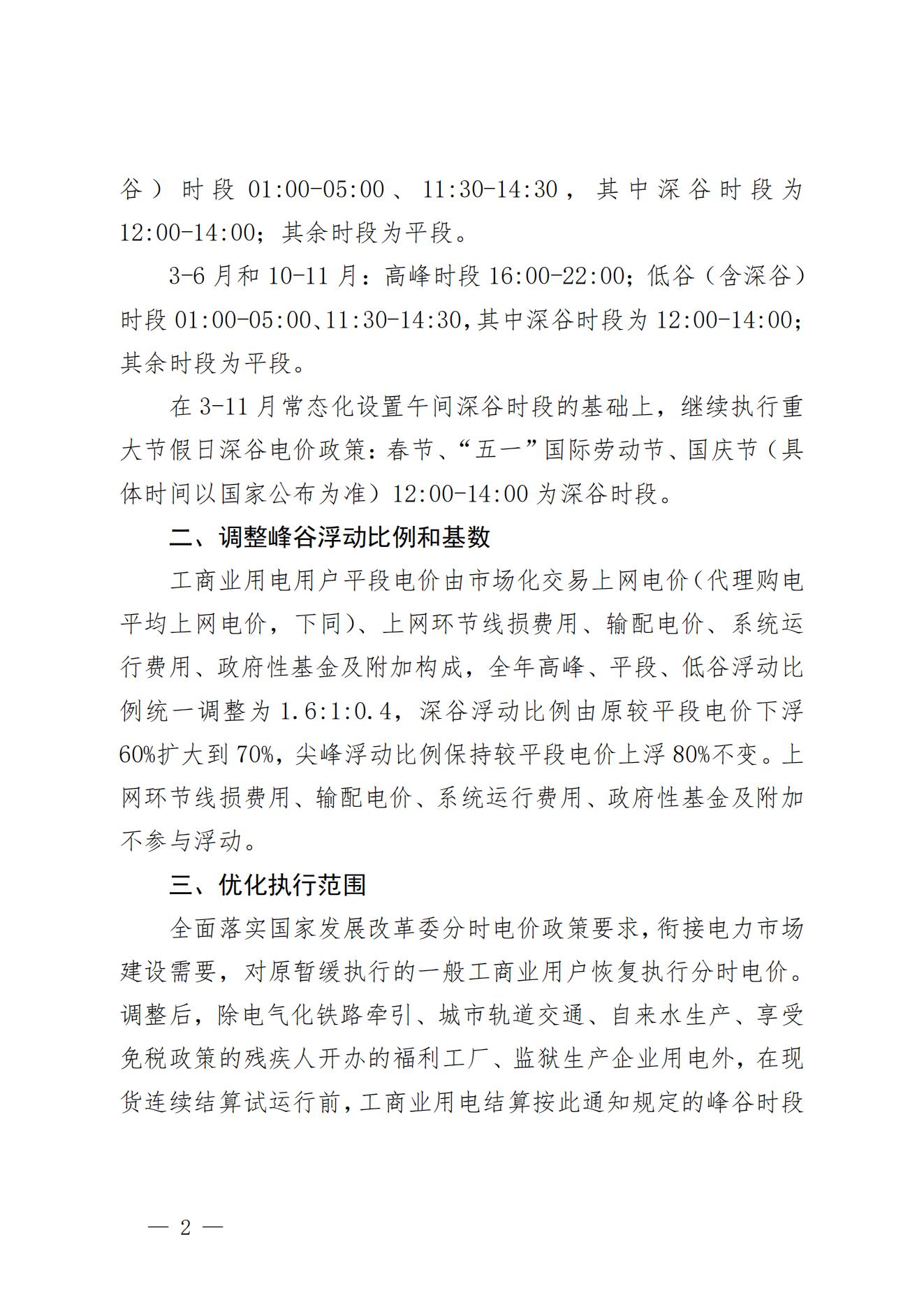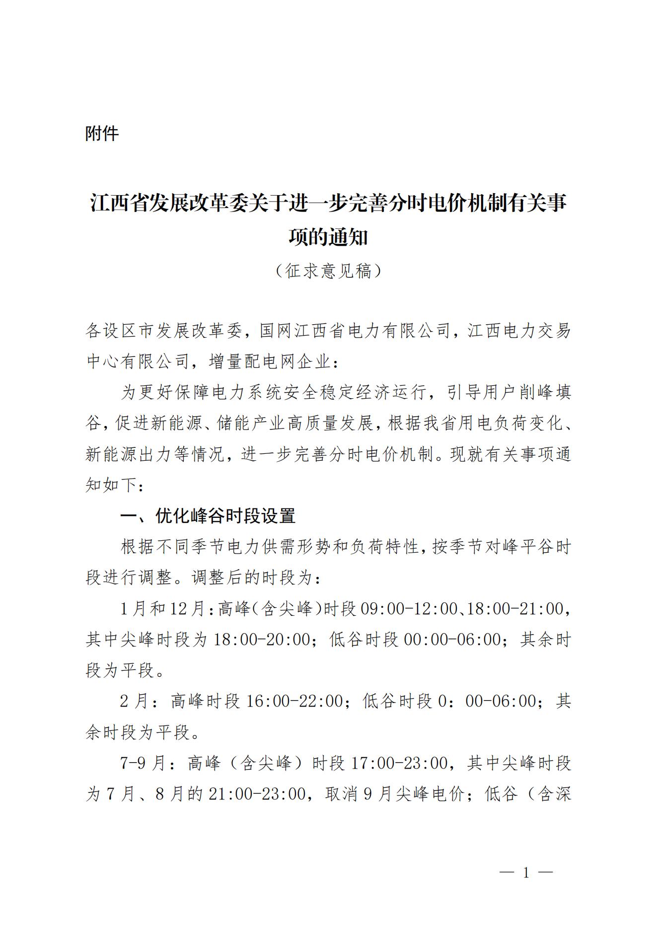 4月25日,江西省發展改革委發布關于公開征求《關于進一步完善分時電價機制有關事項的通知(征求意見稿)》意見的公告,擬按季節進行峰平谷時段調整。 根據文件,擬將3~11月的午間時段設置為谷電時段。其中,11:30—12:00為低谷時段,12:00—14:00為深谷時段。 全年高峰、平段、低谷浮動比例統一調整為1.6:1:0.4,而深谷浮動比例由原較平段電價下浮60%擴大到70%。 此外,在3-11月常態化設置午間深谷時段的基礎上,繼續執行重大節假日深谷電價政策:春節、“五一”國際勞動節、國慶節(具體時間以國家公布為準)12:00-14:00為深谷時段。 上一篇: 山東能源新能源集團揭牌運營!
