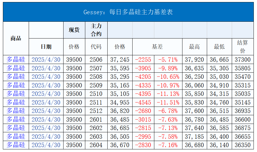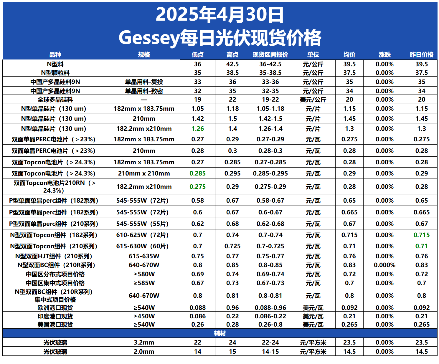 Gessey:4月30日每日光伏市場行情2025-04-30 16:43來源:gessey瀏覽數:232次