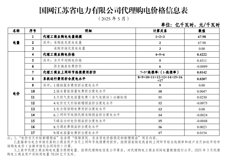 近日(ri),全(quan)國各地2025年5月電(dian)網(wang)企業代理購電(dian)價格陸續公布。 以下為2025年5月各地電網企業代理購電價(jia)格表,順序依次(ci)為:江(jiang)蘇、安徽(hui)、廣(guang)東(dong)、山(shan)東(dong)、山(shan)西、北(bei)京(jing)、河北(bei)、冀(ji)北(bei)、河南(nan)、浙江(jiang)、上海(hai)、重(zhong)慶、四(si)川、黑龍(long)江(jiang)、遼寧、內蒙古東(dong)部、江(jiang)西、湖北(bei)、湖南(nan)、青海(hai)、寧夏、陜西、天津、甘肅、新(xin)疆(jiang)、廣(guang)西、海(hai)南(nan)、貴(gui)州、云南(nan)、深圳、福建。(吉林、內蒙古電力集團暫未公布) 江蘇 安徽 廣東 山西 北(bei)京 河(he)北 冀北 河南 浙江 上(shang)海 重(zhong)慶 四川 黑龍江 遼寧 內蒙(meng)古東部 江(jiang)西 湖北 湖南 青海 寧(ning)夏 陜西 天(tian)津 甘肅 新疆 廣西 海南(nan) 貴州 云南 深圳 福(fu)建