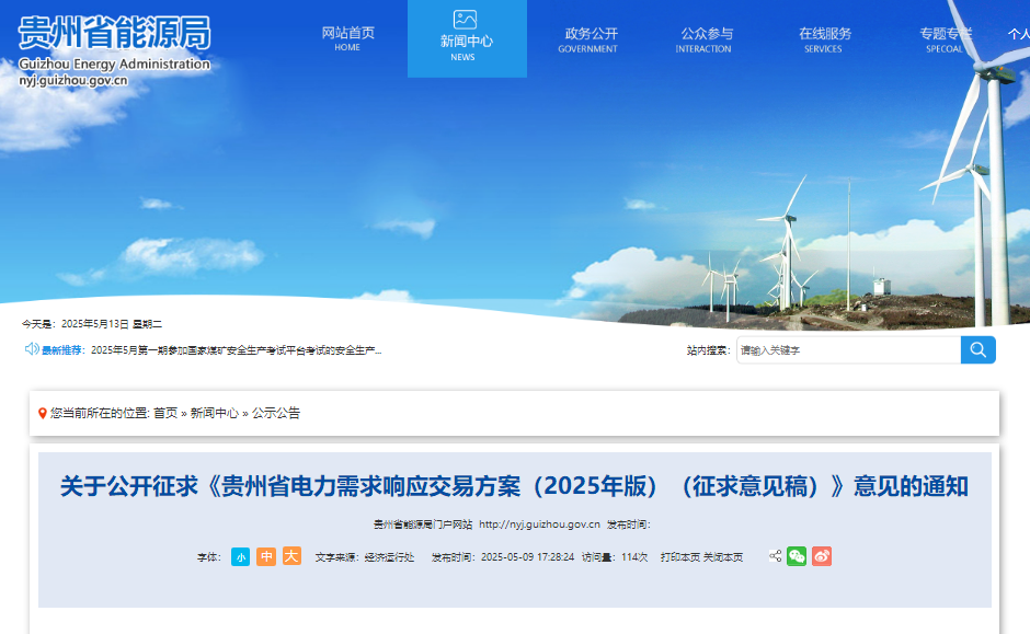 5月9日,貴(gui)州省(sheng)能源局(ju)發布關于公(gong)開(kai)征求(qiu)《貴(gui)州省(sheng)電力需求(qiu)響應交易方案(an)(2025年版)(征求(qiu)意(yi)見稿)》意(yi)見的通(tong)知。 《意見》指出,本方案所指電力(li)需(xu)求響(xiang)應為削峰(feng)、填谷類需(xu)求響(xiang)應,全省或局部范圍出現電力(li)供需(xu)平衡缺口,視情況啟動(dong)。要求充分發揮需(xu)求響(xiang)應作(zuo)用,形成最大用電負荷5%的需(xu)求響(xiang)應能力(li)。 對于虛(xu)擬(ni)(ni)電廠(chang)運(yun)營商(shang),需要具有法(fa)人(ren)資格、財務獨立(li)核算、信用(yong)良(liang)好、能(neng)獨立(li)承擔民事責(ze)任,且經(jing)省電力負(fu)荷(he)管(guan)理中心審核通過;聚合響應(ying)資源不低(di)于1萬(wan)千瓦;具備(bei)相關運(yun)營系統,對代理用(yong)戶有負(fu)荷(he)監測、調控(kong)能(neng)力,并接入新型電力負(fu)荷(he)管(guan)理系統。虛(xu)擬(ni)(ni)電廠(chang)運(yun)營商(shang)的市場(chang)準入條(tiao)件應(ying)滿足國(guo)家或省內相關規范(fan)文件要求。 其中(zhong)邀(yao)約型(xing)削峰響應補償(chang)價(jia)格上(shang)限為2.0元/千瓦時。邀(yao)約型(xing)填谷響應補償(chang)標準單位(wei)為千瓦/次,用戶按單段報價(jia)方式確定上(shang)下限,最終補償(chang)標準由當(dang)次市場競價(jia)形成。 實(shi)時性型削峰、填谷(gu)響(xiang)(xiang)應(ying)價格上下(xia)限綜合響(xiang)(xiang)應(ying)時間(jian)、響(xiang)(xiang)應(ying)容量(liang)、電(dian)能量(liang)市(shi)場(chang)進行研判確定(ding)。 關于公開征求《貴州省電力需求響應交易方案(2025年版)(征求意見稿)》意見的通知 為進一步深化電(dian)(dian)(dian)力(li)(li)需求(qiu)(qiu)側管理,促(cu)進電(dian)(dian)(dian)力(li)(li)供需平(ping)衡和(he)電(dian)(dian)(dian)力(li)(li)系(xi)統安全穩定運行(xing),充分(fen)發(fa)揮市場機制(zhi)調(diao)節電(dian)(dian)(dian)力(li)(li)供需平(ping)衡的重要作(zuo)用,根據(ju)《電(dian)(dian)(dian)力(li)(li)負(fu)荷(he)管理辦法(2023版)》、《電(dian)(dian)(dian)力(li)(li)需求(qiu)(qiu)側管理辦法(2023版)》規定,結合我省電(dian)(dian)(dian)力(li)(li)供需形勢和(he)市場化改(gai)革實(shi)際,我局(ju)組織起草了《貴州省電(dian)(dian)(dian)力(li)(li)需求(qiu)(qiu)響應交易方案(an)(2025年版)(征求(qiu)(qiu)意見(jian)(jian)稿)》,現向社會(hui)公開(kai)征求(qiu)(qiu)意見(jian)(jian),時間(jian)為2025年5月9日至6月9日。歡迎有(you)關單位(wei)和(he)社會(hui)各界人士提(ti)出寶貴意見(jian)(jian)建議,通過電(dian)(dian)(dian)子(zi)郵件等形式反饋省能源局(ju)經濟運行(xing)協調(diao)處。 感(gan)謝(xie)您的參與(yu)和支(zhi)持! 聯系方式(shi):省(sheng)能(neng)源局(ju)經濟運(yun)行(xing)協調處姜(jiang)筑瀚,0851-86821695 郵箱:673356210@qq.com 附(fu)件: 1.貴州省電力(li)需求響應交易方案(2025年版).doc 2.貴(gui)州省電力需求響(xiang)應(ying)交易方案(an)(2025年版)起草說明(ming).docx 貴州省電力需求響應交易方案(2025年版) (征求意見稿) 為進一步(bu)深化電(dian)力(li)(li)需(xu)(xu)求側管理(li),提高電(dian)網(wang)調節(jie)能力(li)(li),優化資源配置,促(cu)進電(dian)力(li)(li)供需(xu)(xu)平(ping)衡(heng)和(he)電(dian)力(li)(li)系統安全穩定運行(xing),充分發揮市場機(ji)制調節(jie)電(dian)力(li)(li)供需(xu)(xu)平(ping)衡(heng)的重要作用,根據《電(dian)力(li)(li)負荷管理(li)辦法(2023版)》、《電(dian)力(li)(li)需(xu)(xu)求側管理(li)辦法(2023版)》規(gui)定,結合我省電(dian)力(li)(li)供需(xu)(xu)形勢和(he)市場化改革實際,特制定本實施方案。 一、工作目標 (一)完善(shan)需(xu)求響應體(ti)系(xi)。堅持安全可靠、公正(zheng)平等、開放透明,優化(hua)需(xu)求響應工作機(ji)制,激(ji)勵(li)各類主(zhu)(zhu)體(ti)主(zhu)(zhu)動(dong)參與電力需(xu)求響應,統籌(chou)兼顧(gu)電力安全與經濟(ji)增(zeng)長(chang)。 (二)緩解(jie)電力供需(xu)矛盾(dun)。充分發揮需(xu)求(qiu)響(xiang)(xiang)應作(zuo)用,形成(cheng)最大用電負(fu)荷(he)5%的需(xu)求(qiu)響(xiang)(xiang)應能力。 (三)堅(jian)持(chi)(chi)公平公正。堅(jian)持(chi)(chi)“誰(shui)提供、誰(shui)獲利,誰(shui)受益、誰(shui)承擔”的原則,在實施過程(cheng)中(zhong)相(xiang)關市(shi)場成(cheng)員嚴格執行相(xiang)關法律政(zheng)策和(he)規(gui)則,對所有參與(yu)電力用戶(hu)實現(xian)公平公正。 二、組織實施 本方案所(suo)指電力需(xu)求(qiu)響應(ying)為削峰、填谷類需(xu)求(qiu)響應(ying),全省或局部范圍出現電力供需(xu)平(ping)衡缺口(kou),視情況啟(qi)動。 (一)響應主體 1.電力(li)(li)用戶。具有獨立省內電力(li)(li)營(ying)銷戶號(hao),設置獨立計量(liang)點,已實現電能在(zai)線(xian)監(jian)測,接入新(xin)型(xing)電力(li)(li)負荷管理系統。 2.虛擬電廠運(yun)營商(shang)。具(ju)有法人資格、財(cai)務(wu)獨(du)(du)立核算、信用良好、能(neng)獨(du)(du)立承擔民事責(ze)任,且經省電力(li)負(fu)荷管(guan)理(li)中(zhong)心審核通過(guo);聚合響(xiang)應資源不(bu)低于(yu)1萬千瓦;具(ju)備相關運(yun)營系(xi)統(tong),對(dui)代理(li)用戶(hu)有負(fu)荷監測、調控能(neng)力(li),并接入新型電力(li)負(fu)荷管(guan)理(li)系(xi)統(tong)。 虛擬電廠運營商的市場(chang)準(zhun)入條件應滿足國家或(huo)省(sheng)內相關規范文件要(yao)求(qiu)。 (二(er))資源類型(xing) 需求響應資(zi)源為(wei)市場主體可調(diao)節(jie)負(fu)荷(he)(he),按負(fu)荷(he)(he)類型可分為(wei)