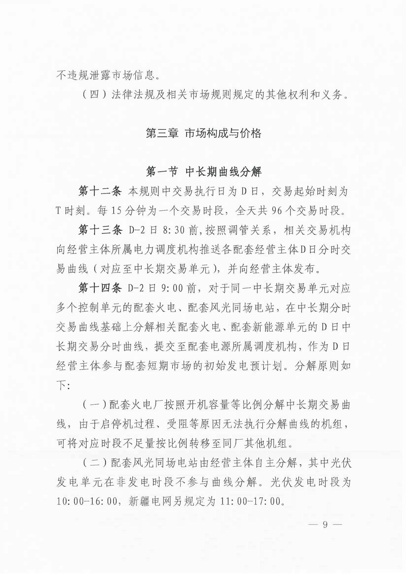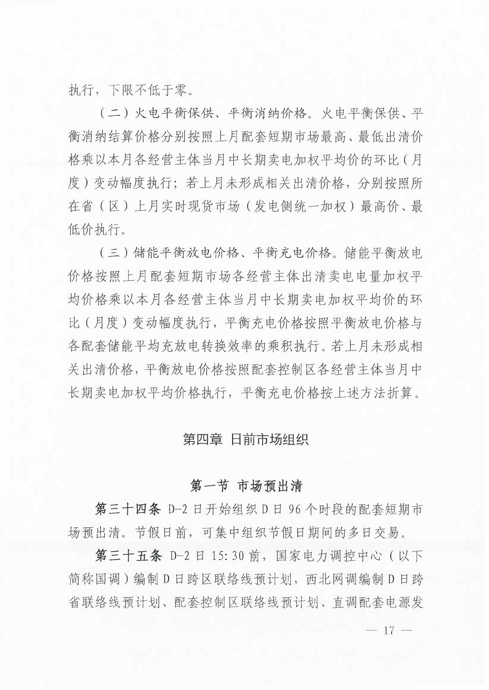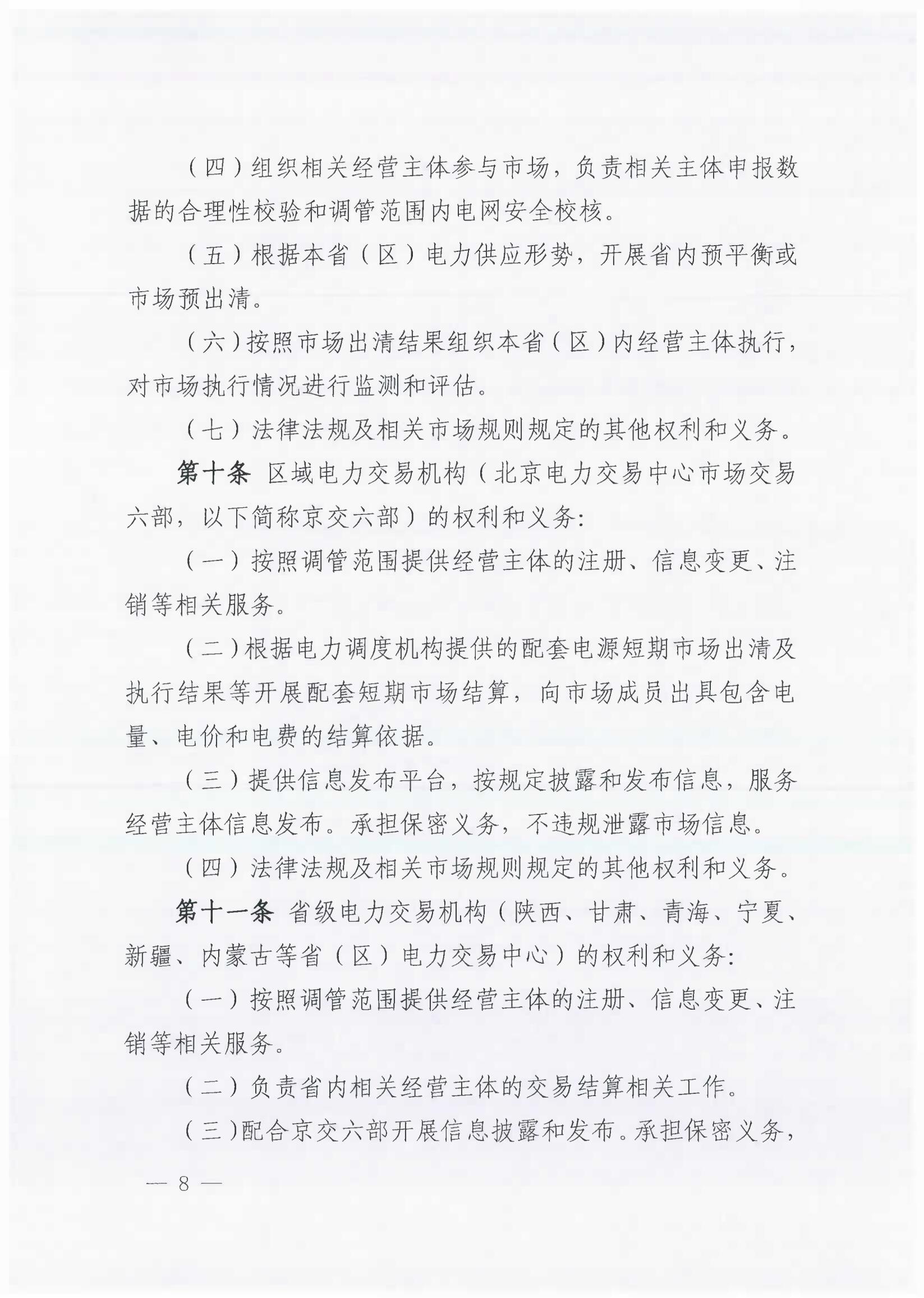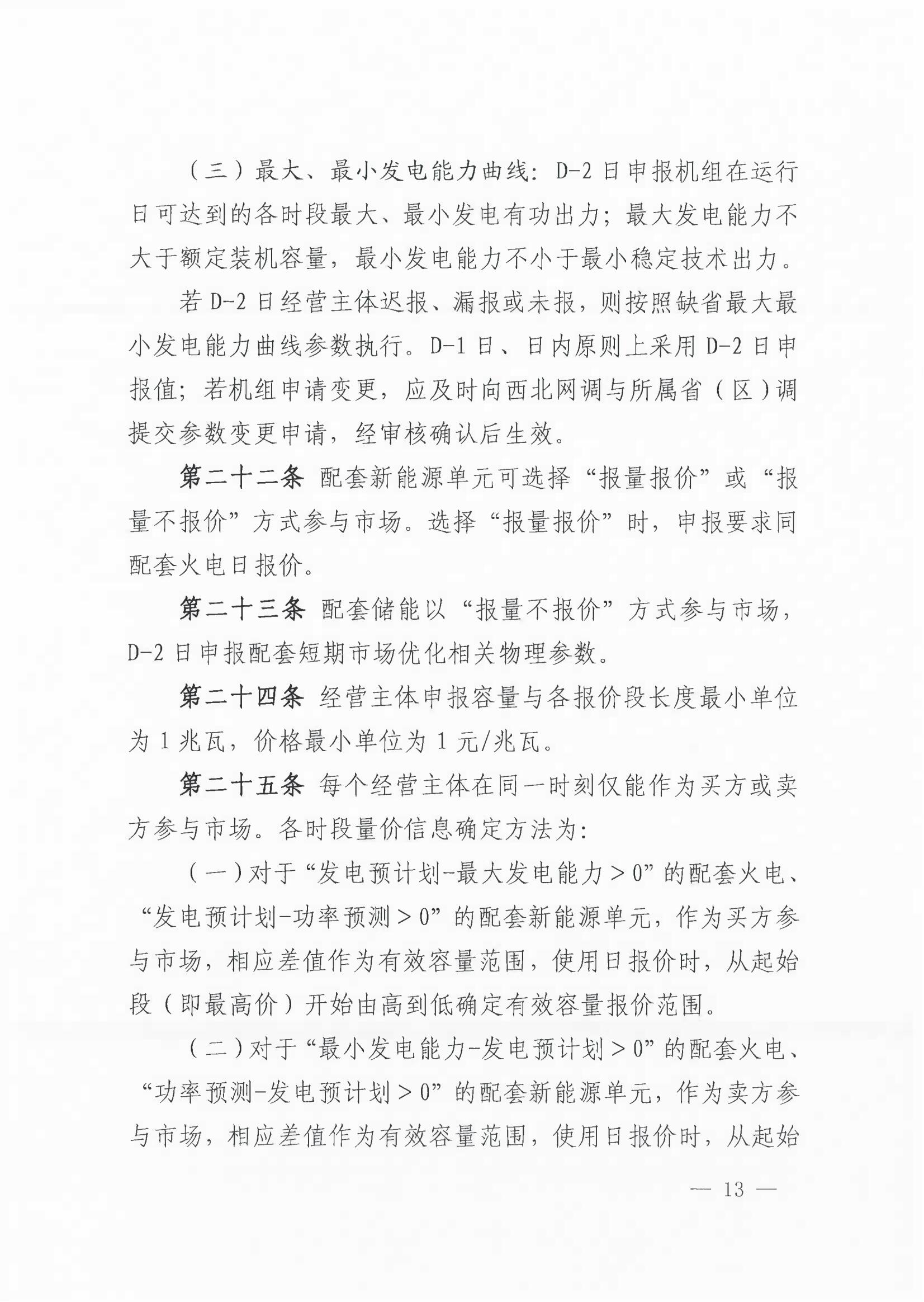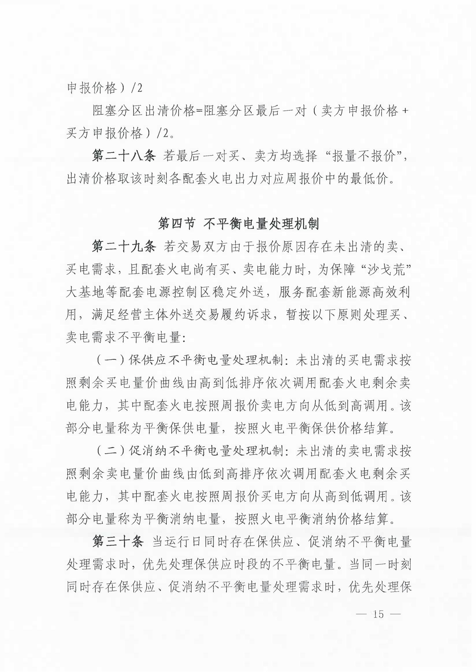 5月15日,國家能源局西北監管局發布關于印發《西北區域“沙戈荒”大基地配套電源短期平衡市場運營規則(試行)》的通知。通知指出,本規則所稱西北區域“沙戈荒”大基地配套電源短期平衡市場(以下簡稱配套短期市場)是指同一直流配套電源組成的獨立控制區(以下簡稱配套控制區)內偏離已有交易計劃的配套電源與具備調節能力的配套電源之間開展偏差申能量交易的市場。配套短期市場在日前、實時組織,各個配套短期市場獨立運營。 配套短期市場的市場成員包括經營主體、電網企業和市場運營機構等。經營主體包括發電側主體和新型經營主體。 發電側主體包括接入西北電網,由省級及以上電力調度機構直調的直流配套火電、風電、光伏和光熱。其中,火電、光熱以機組為單位,風電、光伏以場站為單位,風光同場電站以調度控制單元為單位參與市場(以下火電、光熱均簡稱配套火電;風電、光伏、風光同場電站的控制單元均簡稱配套新能源單元)。 原文如下: