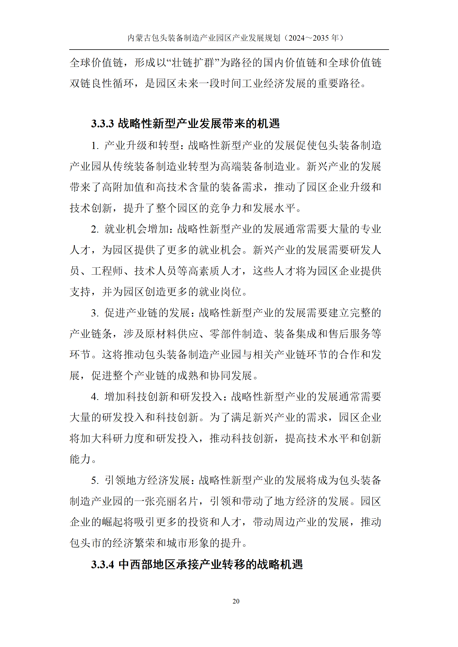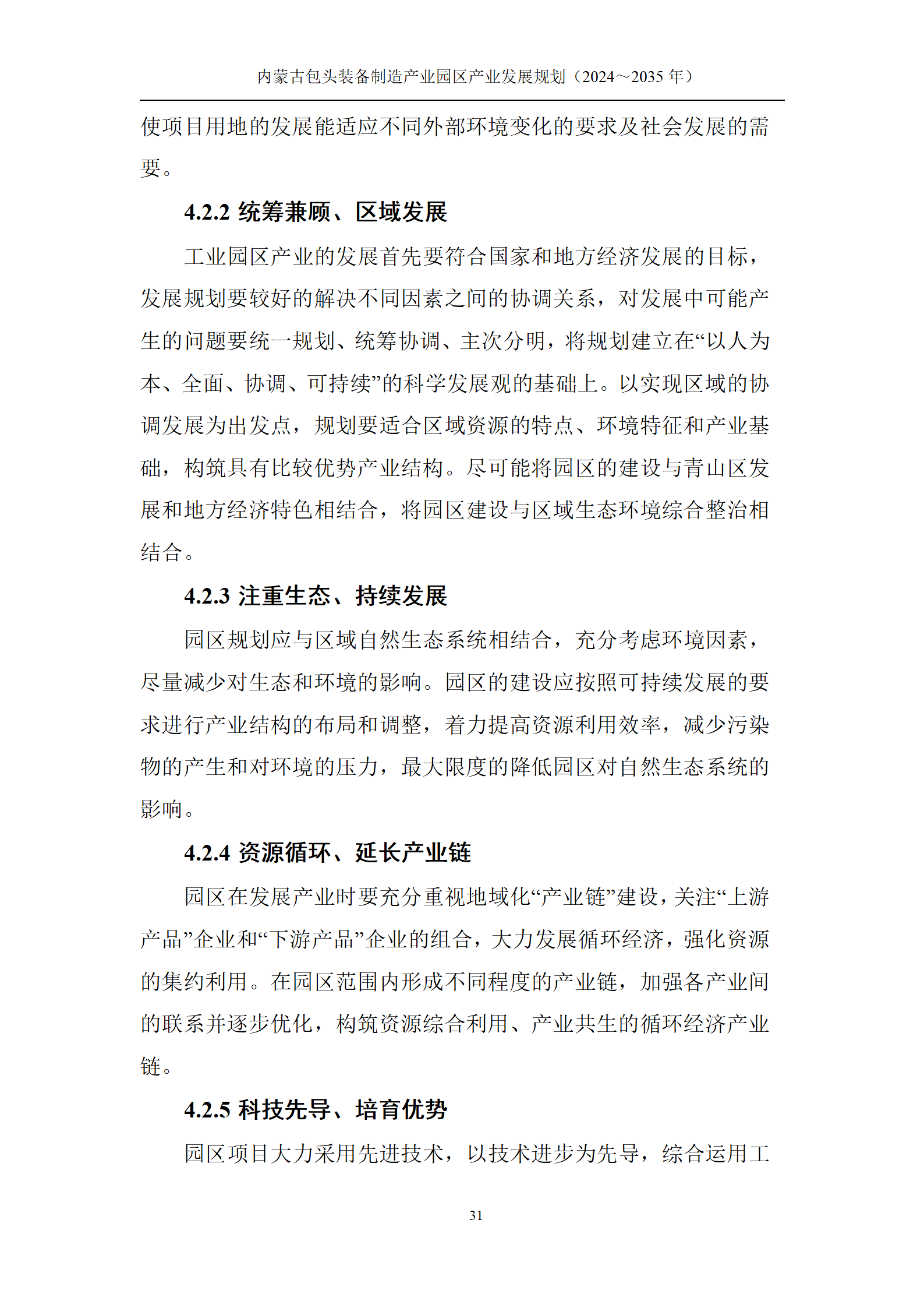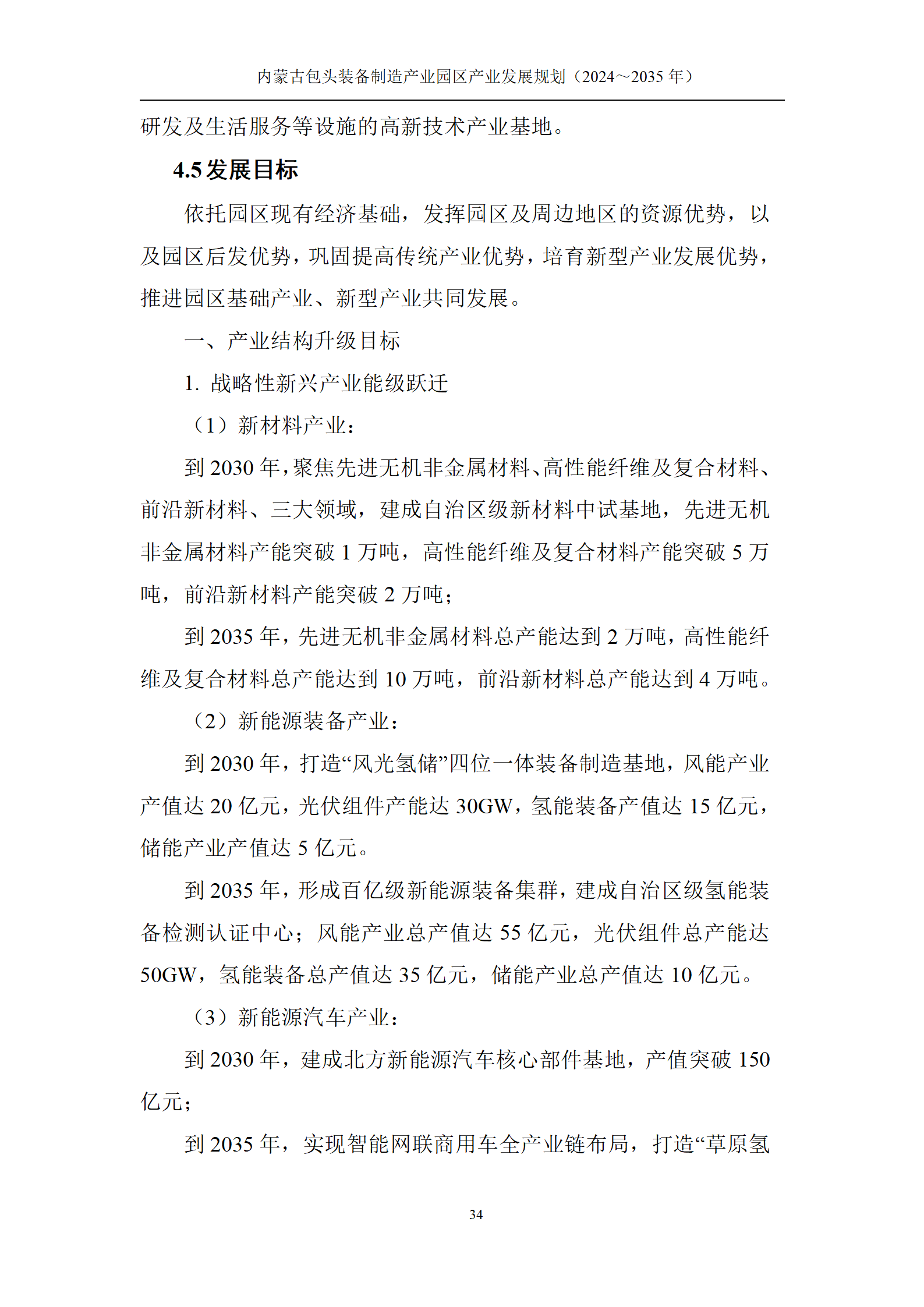 5月21日,內蒙古包頭裝(zhuang)(zhuang)備(bei)制(zhi)(zhi)造產(chan)業園(yuan)區管委會發布(bu)關于《包頭裝(zhuang)(zhuang)備(bei)制(zhi)(zhi)造產(chan)業園(yuan)區產(chan)業發展規劃(2024~2035年)》公(gong)開征求意見的(de)公(gong)告。 文件提(ti)出,到(dao)2030年(nian),打造“風光(guang)氫儲(chu)”四位一體裝(zhuang)備制造基地,風能產(chan)(chan)業產(chan)(chan)值(zhi)(zhi)達20億元(yuan),光(guang)伏組(zu)件產(chan)(chan)能達30GW,氫能裝(zhuang)備產(chan)(chan)值(zhi)(zhi)達15億元(yuan),儲(chu)能產(chan)(chan)業產(chan)(chan)值(zhi)(zhi)達5億元(yuan)。 到2035年(nian),形成(cheng)百億級新(xin)能(neng)源裝備(bei)集群(qun),建成(cheng)自(zi)治(zhi)區級氫(qing)能(neng)裝備(bei)檢測認證中(zhong)心;風能(neng)產業總產值達55億元(yuan),光(guang)伏組件(jian)總產能(neng)達50GW,氫(qing)能(neng)裝備(bei)總產值達35億元(yuan),儲能(neng)產業總產值達10億元(yuan)。 原文如(ru)下: 關于《包頭裝備制造產業園區產業發展規劃(2024~2035年)》公開征求意見的公告 為進一步適應(ying)產業(ye)(ye)發展新趨勢(shi),推動創新發展,提(ti)升(sheng)園區整體競爭力(li),2024年(nian)底,園區通(tong)過(guo)前期調研(yan)、多(duo)方征求(qiu)意(yi)見(jian)(jian)(jian)及多(duo)次會議研(yan)討,結合當前實際情況(kuang),修(xiu)編了《包頭裝(zhuang)備(bei)制(zhi)造產業(ye)(ye)園區產業(ye)(ye)發展規劃(2024~2035年(nian))》,拓展了傳統(tong)裝(zhuang)備(bei)制(zhi)造產業(ye)(ye)的發展思路(lu),新增了新一代技術等新興產業(ye)(ye),現形成《規劃》征求(qiu)意(yi)見(jian)(jian)(jian)稿,向(xiang)社(she)(she)會征求(qiu)意(yi)見(jian)(jian)(jian),歡迎社(she)(she)會各界提(ti)出意(yi)見(jian)(jian)(jian)建議。 公開征(zheng)求(qiu)意見時間:2024年(nian)5月21日(ri)——2024年(nian)6月21日(ri)。 意見反饋渠(qu)道(dao)如(ru)下: 回復郵箱:yqjjfzb@163.com 聯系電話(hua):0472—3651810 通(tong)訊地址:包頭市青山區青創路(lu)37路(lu),郵編(bian):014030 內蒙古包頭(tou)裝備(bei)制造產(chan)業園區產(chan)業發展(zhan)規劃(hua)(2024~2035年).docx
