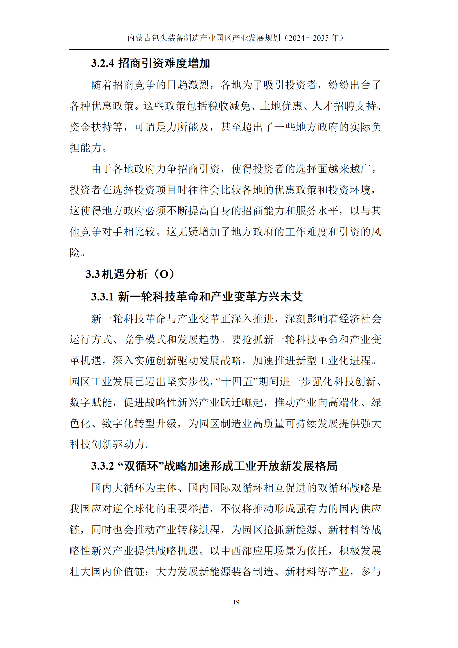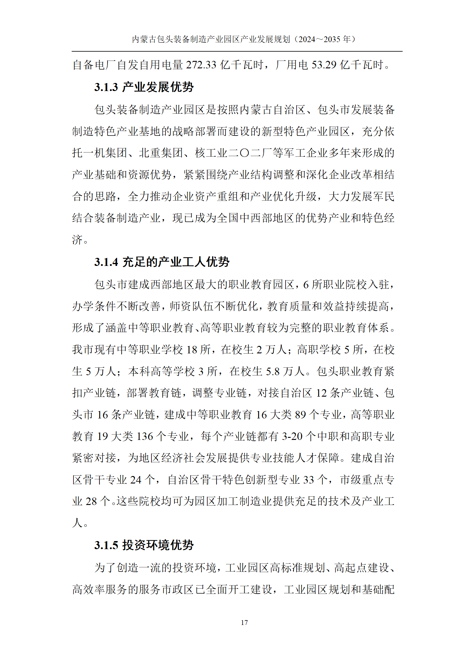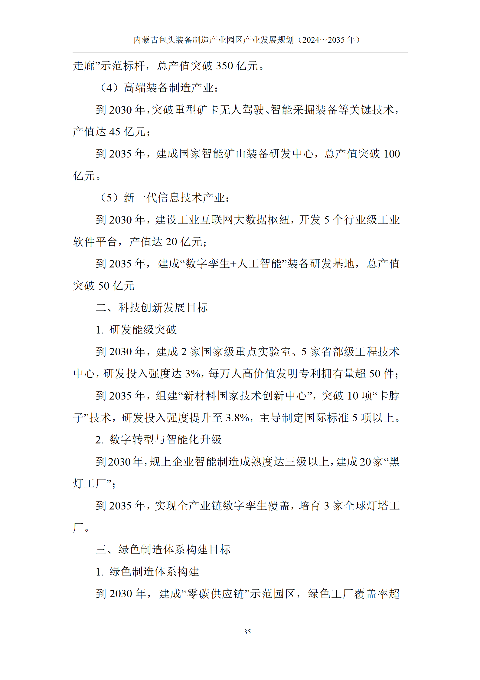 5月21日,內蒙古包頭裝(zhuang)(zhuang)備(bei)制(zhi)(zhi)造產(chan)業園(yuan)區管委會發布(bu)關于《包頭裝(zhuang)(zhuang)備(bei)制(zhi)(zhi)造產(chan)業園(yuan)區產(chan)業發展規劃(2024~2035年)》公(gong)開征求意見的(de)公(gong)告。 文件提(ti)出,到(dao)2030年(nian),打造“風光(guang)氫儲(chu)”四位一體裝(zhuang)備制造基地,風能產(chan)(chan)業產(chan)(chan)值(zhi)(zhi)達20億元(yuan),光(guang)伏組(zu)件產(chan)(chan)能達30GW,氫能裝(zhuang)備產(chan)(chan)值(zhi)(zhi)達15億元(yuan),儲(chu)能產(chan)(chan)業產(chan)(chan)值(zhi)(zhi)達5億元(yuan)。 到2035年(nian),形成(cheng)百億級新(xin)能(neng)源裝備(bei)集群(qun),建成(cheng)自(zi)治(zhi)區級氫(qing)能(neng)裝備(bei)檢測認證中(zhong)心;風能(neng)產業總產值達55億元(yuan),光(guang)伏組件(jian)總產能(neng)達50GW,氫(qing)能(neng)裝備(bei)總產值達35億元(yuan),儲能(neng)產業總產值達10億元(yuan)。 原文如(ru)下: 關于《包頭裝備制造產業園區產業發展規劃(2024~2035年)》公開征求意見的公告 為進一步適應(ying)產業(ye)(ye)發展新趨勢(shi),推動創新發展,提(ti)升(sheng)園區整體競爭力(li),2024年(nian)底,園區通(tong)過(guo)前期調研(yan)、多(duo)方征求(qiu)意(yi)見(jian)(jian)(jian)及多(duo)次會議研(yan)討,結合當前實際情況(kuang),修(xiu)編了《包頭裝(zhuang)備(bei)制(zhi)造產業(ye)(ye)園區產業(ye)(ye)發展規劃(2024~2035年(nian))》,拓展了傳統(tong)裝(zhuang)備(bei)制(zhi)造產業(ye)(ye)的發展思路(lu),新增了新一代技術等新興產業(ye)(ye),現形成《規劃》征求(qiu)意(yi)見(jian)(jian)(jian)稿,向(xiang)社(she)(she)會征求(qiu)意(yi)見(jian)(jian)(jian),歡迎社(she)(she)會各界提(ti)出意(yi)見(jian)(jian)(jian)建議。 公開征(zheng)求(qiu)意見時間:2024年(nian)5月21日(ri)——2024年(nian)6月21日(ri)。 意見反饋渠(qu)道(dao)如(ru)下: 回復郵箱:yqjjfzb@163.com 聯系電話(hua):0472—3651810 通(tong)訊地址:包頭市青山區青創路(lu)37路(lu),郵編(bian):014030 內蒙古包頭(tou)裝備(bei)制造產(chan)業園區產(chan)業發展(zhan)規劃(hua)(2024~2035年).docx