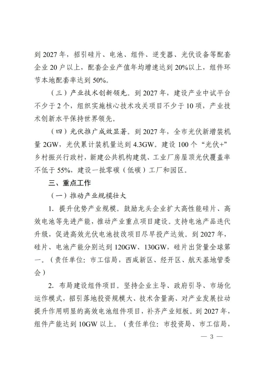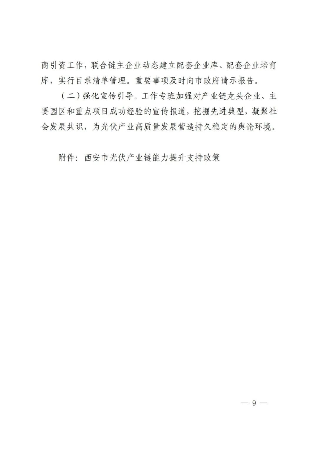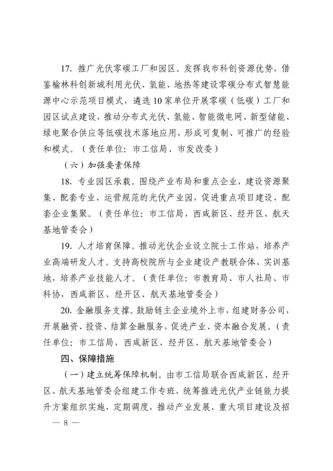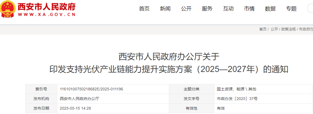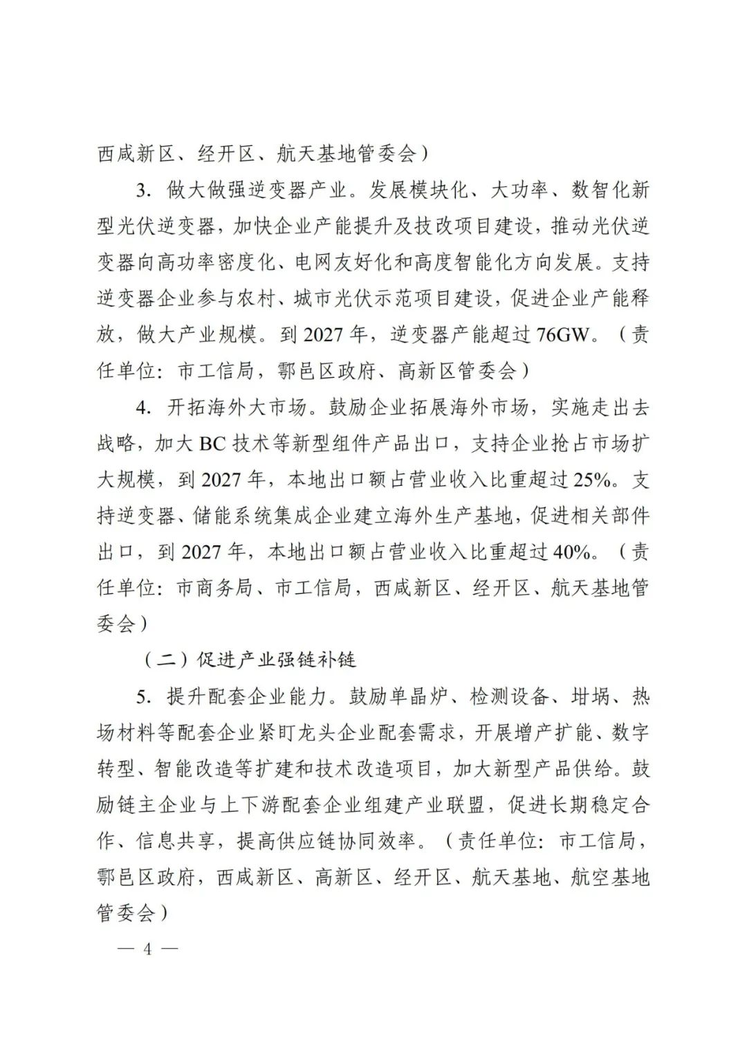 5月15日,西(xi)安市人民政府辦公(gong)廳發布《關于支持光(guang)伏產業鏈能力提升實(shi)施(shi)方案(2025—2027年(nian))的通知》。 《通(tong)知》指(zhi)出,到2027年,打造世(shi)界一(yi)流的(de)先進(jin)光伏制造基地(di),形成硅片(pian)、電池、組件、逆變器、系統(tong)集成、光伏儲能、光伏制氫(qing)裝備制造及相關配套等較(jiao)為完整的(de)光伏產業(ye)鏈條(tiao)。 推動光伏制(zhi)氫裝(zhuang)備(bei)發展。緊(jin)抓光伏發電制(zhi)氫市(shi)場(chang)需(xu)求,鼓(gu)勵企業擴大產業規(gui)模,提(ti)高制(zhi)氫裝(zhuang)備(bei)研發和(he)制(zhi)造(zao)能力,促(cu)進光伏制(zhi)氫裝(zhuang)備(bei)制(zhi)造(zao)產業發展。 加強核心技(ji)術(shu)(shu)攻關。支(zhi)持光伏(fu)企業(ye)圍(wei)繞(rao)(rao)背接觸(BC)、異質結(jie)(HJT)、鈣鈦(tai)礦(kuang)等(deng)(deng)新型光伏(fu)電池(chi)技(ji)術(shu)(shu),逆變器企業(ye)圍(wei)繞(rao)(rao)模組化大功(gong)率技(ji)術(shu)(shu),儲(chu)能(neng)(neng)企業(ye)圍(wei)繞(rao)(rao)高功(gong)率—長時長儲(chu)能(neng)(neng)電池(chi)核心技(ji)術(shu)(shu),氫能(neng)(neng)企業(ye)圍(wei)繞(rao)(rao)高性能(neng)(neng)陰離子交換膜材料(liao)、自支(zhi)撐(cheng)活性材料(liao)等(deng)(deng)開展技(ji)術(shu)(shu)攻關。 以(yi)國(guo)家公共(gong)領域用車(che)全面電動(dong)化試點(dian)建設(she)為(wei)契機,在(zai)公路(lu)客貨運樞紐、公路(lu)服務區(停車(che)場)、加油站(zhan)(zhan)等重(zhong)點(dian)場景,建設(she)一(yi)批(pi)“光儲充(chong)”一(yi)體站(zhan)(zhan),在(zai)氫燃料電池重(zhong)卡短倒運輸場景探索建設(she)一(yi)批(pi)光伏制氫儲氫加氫站(zhan)(zhan)。 推廣光伏零碳(tan)(tan)工廠和(he)園區。發揮西安市(shi)科(ke)創資源優勢,借(jie)鑒榆林科(ke)創新城利(li)用(yong)(yong)光伏、氫能(neng)、地熱等(deng)建(jian)設(she)零碳(tan)(tan)分布式(shi)智慧能(neng)源中心示范(fan)項(xiang)目(mu)模(mo)式(shi),遴選(xuan)10家單位開展零碳(tan)(tan)(低(di)碳(tan)(tan))工廠和(he)園區試點建(jian)設(she),推動分布式(shi)光伏、氫能(neng)、智能(neng)微電(dian)(dian)網、新型儲(chu)能(neng)、綠電(dian)(dian)聚合供應(ying)等(deng)低(di)碳(tan)(tan)技術落地應(ying)用(yong)(yong),形成可(ke)復制、可(ke)推廣的經驗和(he)模(mo)式(shi)。 推進新(xin)建(jian)項目(mu)建(jian)設。對硅片、電(dian)池、組(zu)件企業(ye)實(shi)施的(de)新(xin)建(jian)項目(mu),固(gu)投(tou)(tou)50億(yi)(yi)元(yuan)(含)以上(shang),按(an)(an)照(zhao)固(gu)定(ding)資(zi)(zi)產(chan)(chan)投(tou)(tou)資(zi)(zi)額(e)(e)10%給予不(bu)超(chao)過7億(yi)(yi)元(yuan)獎勵(li)(li)(li)(li)(li);固(gu)投(tou)(tou)10億(yi)(yi)元(yuan)(含)—50億(yi)(yi)元(yuan),按(an)(an)照(zhao)固(gu)定(ding)資(zi)(zi)產(chan)(chan)投(tou)(tou)資(zi)(zi)額(e)(e)12%給予不(bu)超(chao)過4億(yi)(yi)元(yuan)獎勵(li)(li)(li)(li)(li)。對逆變器、儲(chu)能(neng)、氫能(neng)裝(zhuang)備制(zhi)造及(ji)光伏(fu)配套企業(ye)實(shi)施的(de)新(xin)建(jian)項目(mu),固(gu)投(tou)(tou)5億(yi)(yi)元(yuan)(含)以上(shang),按(an)(an)照(zhao)固(gu)定(ding)資(zi)(zi)產(chan)(chan)投(tou)(tou)資(zi)(zi)額(e)(e)10%給予不(bu)超(chao)過6000萬元(yuan)獎勵(li)(li)(li)(li)(li);固(gu)投(tou)(tou)1億(yi)(yi)元(yuan)(含)—5億(yi)(yi)元(yuan),按(an)(an)照(zhao)固(gu)定(ding)資(zi)(zi)產(chan)(chan)投(tou)(tou)資(zi)(zi)額(e)(e)15%給予不(bu)超(chao)過5000萬元(yuan)獎勵(li)(li)(li)(li)(li);固(gu)投(tou)(tou)2000萬元(yuan)(含)—1億(yi)(yi)元(yuan),按(an)(an)照(zhao)固(gu)定(ding)資(zi)(zi)產(chan)(chan)投(tou)(tou)資(zi)(zi)額(e)(e)20%給予不(bu)超(chao)過1000萬元(yuan)獎勵(li)(li)(li)(li)(li)。 支持(chi)技改(gai)項目(mu)建設(she)(she)(she)。對硅片(pian)、電池、組件、逆變器和光伏配(pei)套及儲能、氫能裝(zhuang)備(bei)制造企業實施的技改(gai)項目(mu),設(she)(she)(she)備(bei)投(tou)資額(e)(e)(e)10億元(含(han))以上,按照設(she)(she)(she)備(bei)投(tou)資額(e)(e)(e)8%給(gei)予(yu)不(bu)超過1.5億元獎(jiang)勵(li)(li)(li);設(she)(she)(she)備(bei)投(tou)資額(e)(e)(e)1億元(含(han))—10億元,按照設(she)(she)(she)備(bei)投(tou)資額(e)(e)(e)10%給(gei)予(yu)不(bu)超過6000萬元獎(jiang)勵(li)(li)(li);設(she)(she)(she)備(bei)投(tou)資額(e)(e)(e)1000萬元(含(han))—1億元,按照設(she)(she)(she)備(bei)投(tou)資額(e)(e)(e)15%給(gei)予(yu)不(bu)超過1000萬元獎(jiang)勵(li)(li)(li)。 降低企業融資(zi)成本。對(dui)營業收入(ru)正(zheng)增長(chang)硅(gui)片、電(dian)池、組(zu)件、逆(ni)變器及儲能、氫能裝備制(zhi)造等企業固(gu)定資(zi)產(chan)投資(zi)項目(mu)貸(dai)款(kuan),貸(dai)款(kuan)額1億元(yuan)(含)以(yi)上按(an)不超過(guo)人民銀行(xing)同期貸(dai)款(kuan)市場報價利率(LPR)50%給予不超過(guo)1000萬元(yuan)貼息獎勵。 推動(dong)核心技(ji)(ji)術攻關(guan)。支持光伏企(qi)業圍繞背接觸(chu)(BC)、異質(zhi)結(HJT)、鈣鈦礦等(deng)新型光伏電(dian)池(chi)技(ji)(ji)術,逆(ni)變器企(qi)業圍繞模組化大功率(lv)技(ji)(ji)術,儲能(neng)企(qi)業圍繞高(gao)功率(lv)—長時(shi)長儲能(neng)電(dian)池(chi)核心技(ji)(ji)術,氫(qing)能(neng)企(qi)業圍繞高(gao)性能(neng)陰離子(zi)交換膜材料、自(zi)支撐(cheng)活性材料等(deng)開展技(ji)(ji)術攻關(guan)。三年選(xuan)取不少(shao)于10個(ge)技(ji)(ji)術攻關(guan)項目,每個(ge)項目給予最(zui)高(gao)300萬元獎(jiang)勵(li)。 支(zhi)持產(chan)業標準(zhun)制定(ding)(ding)。支(zhi)持光伏、氫能、儲能企(qi)業主(zhu)