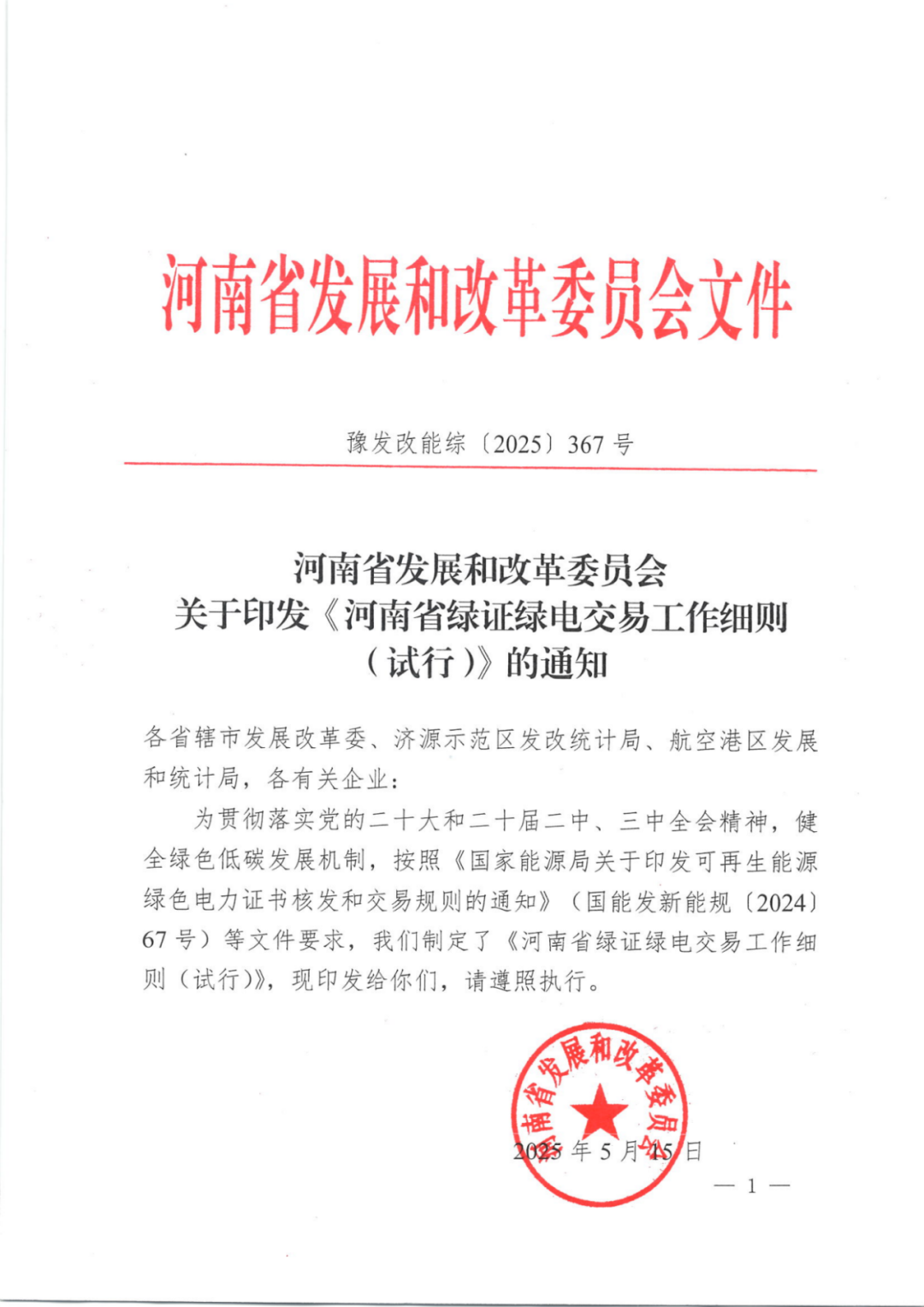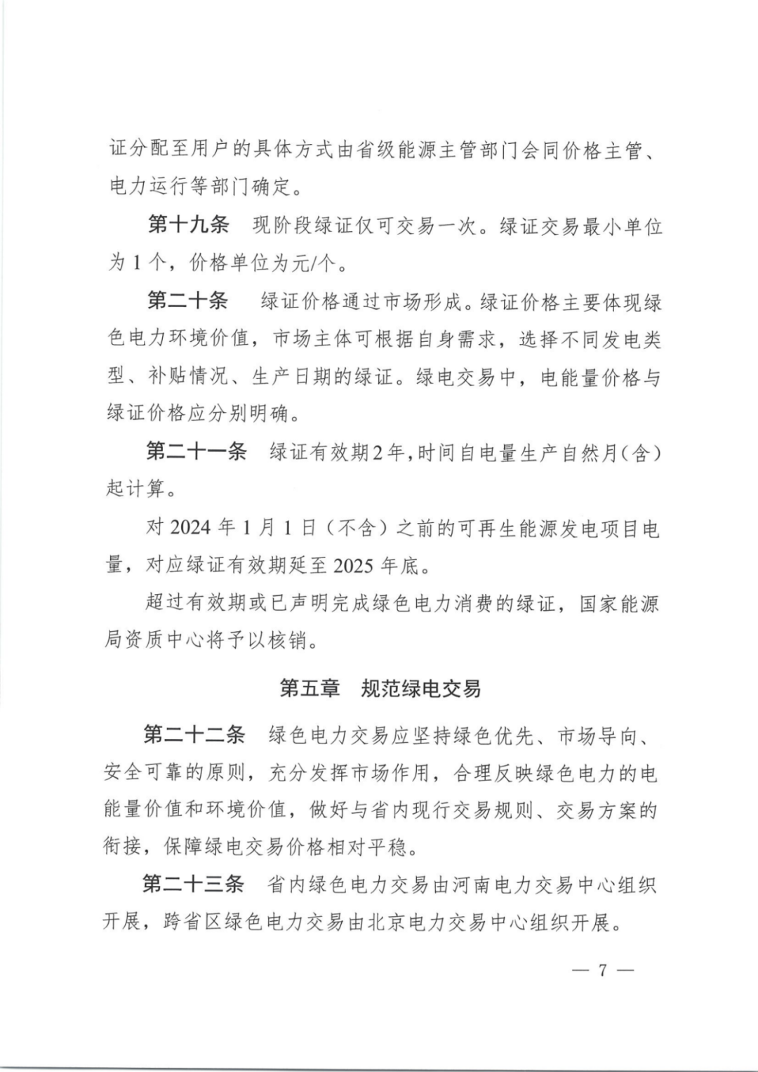5月15日,河南省發改委印發《河南省綠證綠電交易工作細則(試行)》的通知,對綠證給出最新要求。通知指出,文件適用于省內生產的風電、太陽能發電、常規水電、生物質發電、地熱能發電等可再生能源發電項目電量對應綠證的核發及相關管理工作。 電網企業、電力交易機構應在歸集和報送電量數據時標注綠證對應電量是否納入可持續發展價格結算機制,并對電量信息準確性負責。執行機制電價電量對應的綠證參與交易所獲得的收益,按照國家有關規定執行。 文件指出要加強綠證綠電與節能降碳政策銜接,擬將可再生能源電力消納權重分解之重點用能單位,使用綠證用于權重核算。 原文如下: