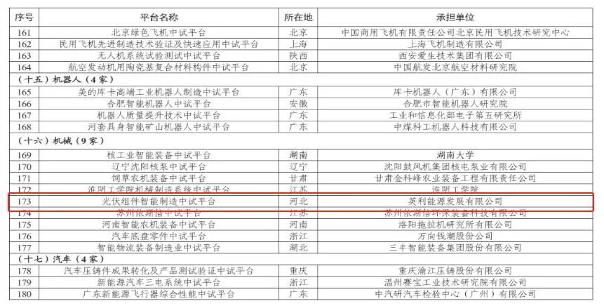 近日,工(gong)業和(he)信息化部公示了(le)首批重點培育中(zhong)試平(ping)(ping)臺初步名單(dan),英利(li)發展光(guang)伏組件智(zhi)能(neng)制造中(zhong)試平(ping)(ping)臺憑借在光(guang)伏領(ling)域的深厚底蘊以及領(ling)先的技術實力(li)和(he)產業轉化能(neng)力(li)脫穎而出,成功入選(xuan)。河(he)北省上榜(bang)6家,英利(li)發展成為全省唯一入選(xuan)的光(guang)伏領(ling)域中(zhong)試平(ping)(ping)臺。 中試(shi)平(ping)臺也被稱為(wei)科(ke)技成果轉(zhuan)化應用(yong)的(de)“最后(hou)一(yi)公里”,是科(ke)研成果向生產力(li)轉(zhuan)化的(de)重(zhong)要環(huan)節,在推動產業(ye)(ye)升級和技術(shu)進步(bu)方面發揮著橋梁和紐帶作用(yong)。此(ci)次工信部開展(zhan)重(zhong)點培育中試(shi)平(ping)臺遴選工作,旨在進一(yi)步(bu)加強(qiang)我國(guo)制造業(ye)(ye)領(ling)域的(de)科(ke)技創新(xin)能力(li)建設,加速(su)科(ke)技成果轉(zhuan)化,提升產業(ye)(ye)整體競(jing)爭力(li)。首批入選的(de)中試(shi)平(ping)臺,涵蓋了眾多戰略性新(xin)興(xing)產業(ye)(ye)和關鍵基礎產業(ye)(ye)領(ling)域,具有較強(qiang)的(de)示范(fan)引領(ling)作用(yong)。 英利發展光(guang)(guang)伏組件智能制造(zao)中試平(ping)臺自成(cheng)立以來(lai),一直(zhi)專注(zhu)于光(guang)(guang)伏組件制造(zao)技(ji)術(shu)(shu)的(de)研發、創新與應用(yong),致力(li)于打(da)造(zao)智能化(hua)、高效化(hua)的(de)光(guang)(guang)伏組件生產(chan)體系。該平(ping)臺已成(cheng)功(gong)完成(cheng)了(le)(le)多項光(guang)(guang)伏組件關鍵技(ji)術(shu)(shu)的(de)中試驗證和(he)產(chan)業(ye)化(hua)推廣,為推動我國光(guang)(guang)伏產(chan)業(ye)技(ji)術(shu)(shu)升級和(he)成(cheng)本降低做出了(le)(le)積(ji)極貢獻。其研發的(de)高效光(guang)(guang)伏組件產(chan)品在國內外(wai)市場占有(you)重要份額,獲(huo)得了(le)(le)廣泛認可(ke)和(he)好評。 此次入選(xuan)工(gong)信部(bu)首批(pi)重點(dian)培育(yu)中(zhong)試平臺初(chu)步名單,是對英利(li)發展技術實(shi)力(li)和發展潛力(li)的(de)高度認可,也為(wei)平臺未來的(de)發展提供了更(geng)廣闊的(de)空間。英利(li)發展將以(yi)此次入選(xuan)為(wei)契機(ji)(ji),進一(yi)步加大(da)研(yan)發投入,加強(qiang)與高校(xiao)、科研(yan)機(ji)(ji)構(gou)以(yi)及(ji)產業鏈上下游企業的(de)合作,不斷提升(sheng)中(zhong)試平臺的(de)科技創(chuang)新能(neng)力(li),推(tui)動產業化應用,為(wei)我國(guo)光伏(fu)產業的(de)高質量發展以(yi)及(ji)實(shi)現碳達(da)峰、碳中(zhong)和目標(biao)貢獻更(geng)大(da)的(de)力(li)量。