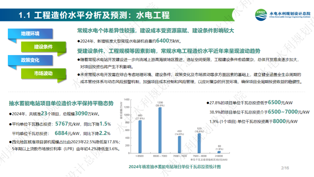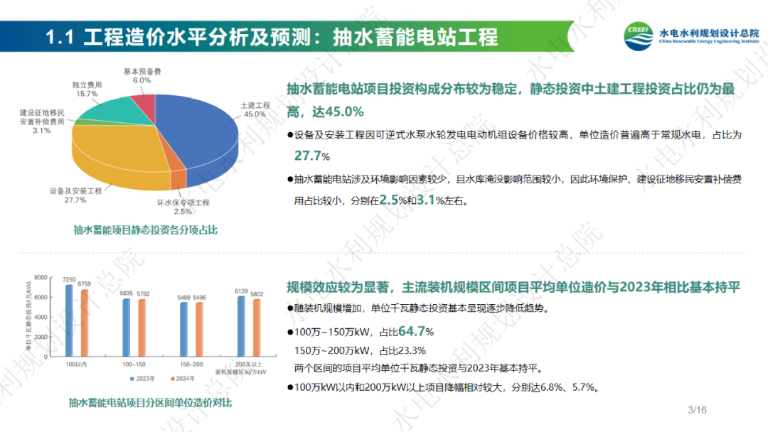 6月3日,水電總院公布2024年度中國可再生能源工程造價管理報告,報告包括水、光、抽蓄、儲能等最新造價情況。
