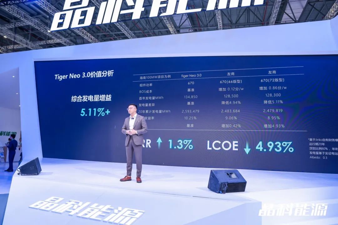 6月11日,全球領先的光儲企業晶科能源,在2025 SNEC光伏展上重磅發布多款革新性光儲產品。其中包括全新一代Tiger Neo 3.0系列組件、晶科海豚SunGiga G2Plus 520kWh液冷儲能系統等光儲解決方案。其搭載突破性的先進光儲技術,實現兼具效率、性能及安全性的極致升級,為全球能源轉型提供強大助力。 此外,晶科能源也重磅發布行業首份《TOPCon技術及Tiger Neo 3.0商業方案白皮書》,深度解析TOPCon核心工藝鏈、技術架構、性能優勢等,依托獨家收錄的全球10+極端環境電站(沙漠、高原、沿海)的硬核測試數據,為TOPCon技術的卓越可靠性提供了堅實依據。 作為光伏行業技術引領者,憑借卓越的科技創新能力與技術研發實力,晶科能源在疊層電池多項關鍵技術上獲得世界紀錄認證。其基于N型TOPCon的鈣鈦礦疊層電池經第三方認證轉換效率高達34.22%,第28次打破世界紀錄,這一成就標志著晶科能源在下一代高效光伏技術研發上持續保持領先優勢。 在SNEC展會上,晶科能源重磅發布Tiger Neo 3.0系列組件產品,該組件融合20BB,HCP,MAX、FP等多項創新技術。這些技術有效減少了光學和電學的損耗,顯著提升了電池的轉換效率,助力組件的發電功率提升,最終實現功率高達670W,組件效率達24.8%,雙面率達85%的優異性能。高效性能帶來高發電量的同時,還持續降低度電成本(LCOE),為光伏項目帶來更豐厚的投資回報增益。憑借高雙面發電增益和低度電成本的優勢,Tiger Neo 3.0組件成為一款性能卓越的優質產品。 此外,該產品通過印膠技術、組件焊接、無主柵電池設計的全面升級,提升了組件的結構強度,降低了隱裂和高溫熱斑風險,進一步提升了產品的穩定性和使用壽命。使得該產品適用于多種應用場景,包括地面電站、工商業屋頂和分銷市場等,滿足不同用戶的需求。據悉,Tiger Neo 3.0組件產品預計將于2025年Q4實現接單。 鈣鈦礦疊層電池效率達34.22%,第28次打破世界紀錄 晶科能源在疊層電池技術領域展現出全面且領先的布局優勢。憑借在疊層電池結構、技術、材料三個維度的創新性突破,獨創業內首個以N型TOPCon為底電池的“鈣鈦礦/TOPCon疊層電池“結構及成套工藝。并通過強大的研發支撐體系和產業化推進能力,晶科在多項核心技術上獲得世界紀錄認證。其中,基于N型TOPCon的鈣鈦礦疊層電池技術轉化效率達34.22%,第28次打破世界紀錄。疊層電池第三方認證Voc超過2.01 V,創造了鈣鈦礦/晶硅疊層電池Voc世界紀錄。 晶科能源的疊層電池在可靠性方面也取得了顯著進展,在DH、TC和MPPT等多項測試中,其效率相對衰減小于5%,達到業內領先水平。通過不斷的技術創新和嚴格的質量控制,晶科確保其疊層電池能夠在不同環境條件下保持高性能和長壽命。 此外,晶科能源在疊層電池研發投入方面展現出強大的實力與決心。其研發平臺依托浙江省“全省先進疊層光伏技術重點實驗室”,配備國際領先的研發設備和科研場地,致力于解決疊層電池組件產業化技術瓶頸,推動疊層光伏產品的商業化。同時,晶科與UNSW、ANU等國際知名機構保持長期合作,已完成近15項科研項目,有6個項目正在進行中。通過持續的創新和投入,晶科能源在疊層電池領域取得了多項突破,為光伏產業的可持續發展做出了重要貢獻。 520kWh超大容量!晶科海豚開啟安全高效儲能新紀元 繼4月北京儲能展發布晶科藍鯨 SunTera G3 6.25MWh 儲能系統后,晶科能源在本次 SNEC 展會重點推出面向工商業場景的海豚 SunGiga G2 Plus 520kWh 液冷儲能系統,以創新技術為核心,憑借極致安全、超高性能、智慧運維和超凡價值四大核心價值,重新定義工商業儲能產品標準。該系統采用雙簇設計,兼容全球市場,最高支持12臺并機數量,搭配 2H/4H 靈活配置,精準匹配工商業用戶對長周期、高收益儲能方案的需求。具備IP55防護等級、C5防腐等級,支持最高3000米海拔運行,適應各種極端條件。同時,其智慧運維體系覆蓋全生命周期,賦能系統更安全、更高效和更經濟。 此外,該儲能系統以“安全為基石”構建全方位防護體系,涵蓋結構安全、電氣安全、消防安全三大維度,樹立行業標桿。其獨創電芯至系統五級防護架構,支持電芯級異常預警、箱體滿足2H防火、配備系統級消防氣體抑制等,杜絕隱患蔓延,為儲能系統構筑堅不可摧的防御網絡。預計2025年Q4,海豚SunGiga G2 Plus 520 kWh儲能系統將開啟全球交付。 未來,晶科能源將持之以恒深耕技術革新,以卓越品質為全球能源轉型賦能。繼續深化與全球科研機構、能源企業的全面合作,加速推動光伏技術創新與應用,讓綠色能源惠及千家萬戶。同時,晶科能源也將積極踐行社會責任,助力全球應對氣候變化,共同開創可持續發展的美好未來。