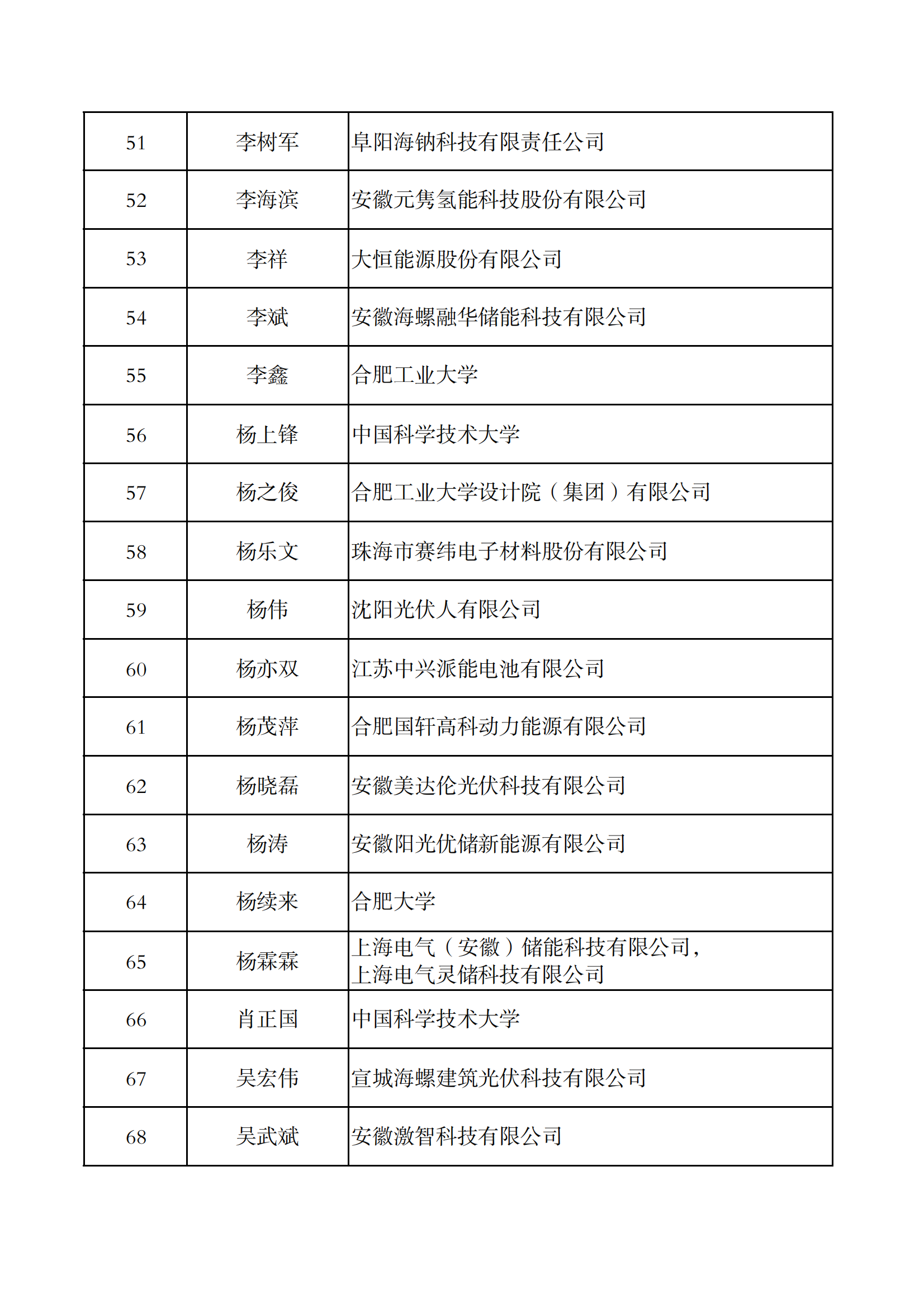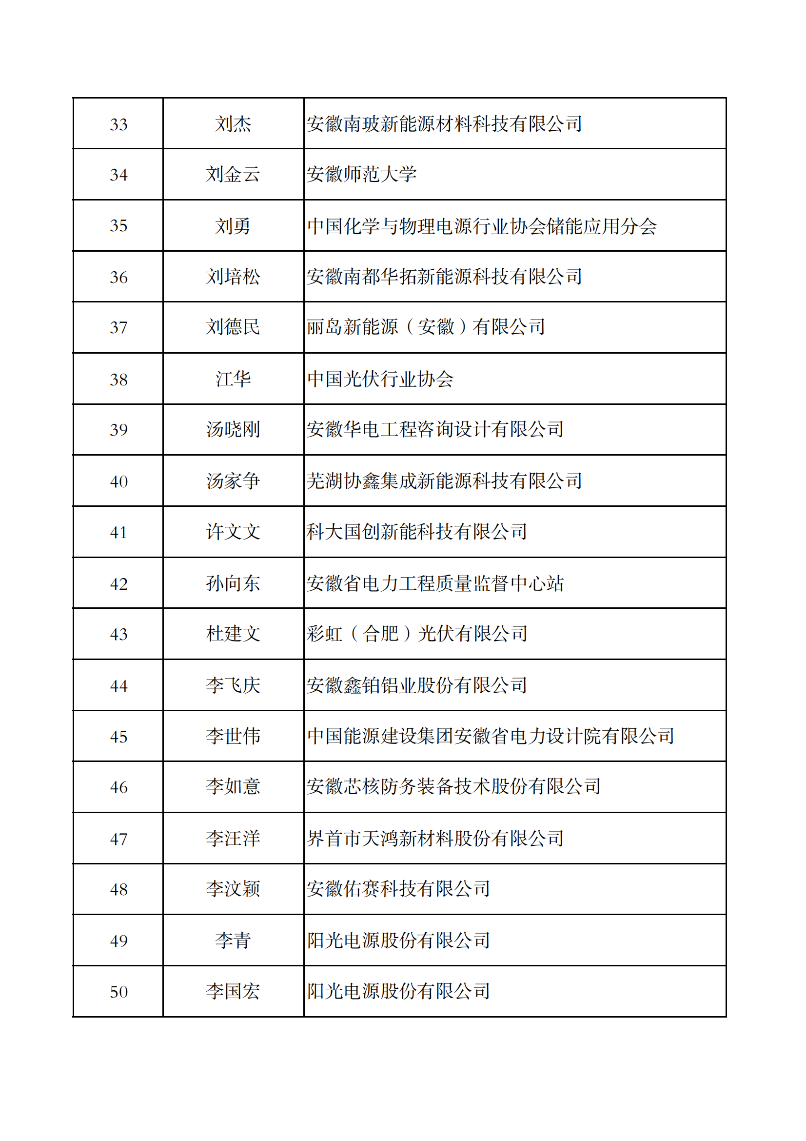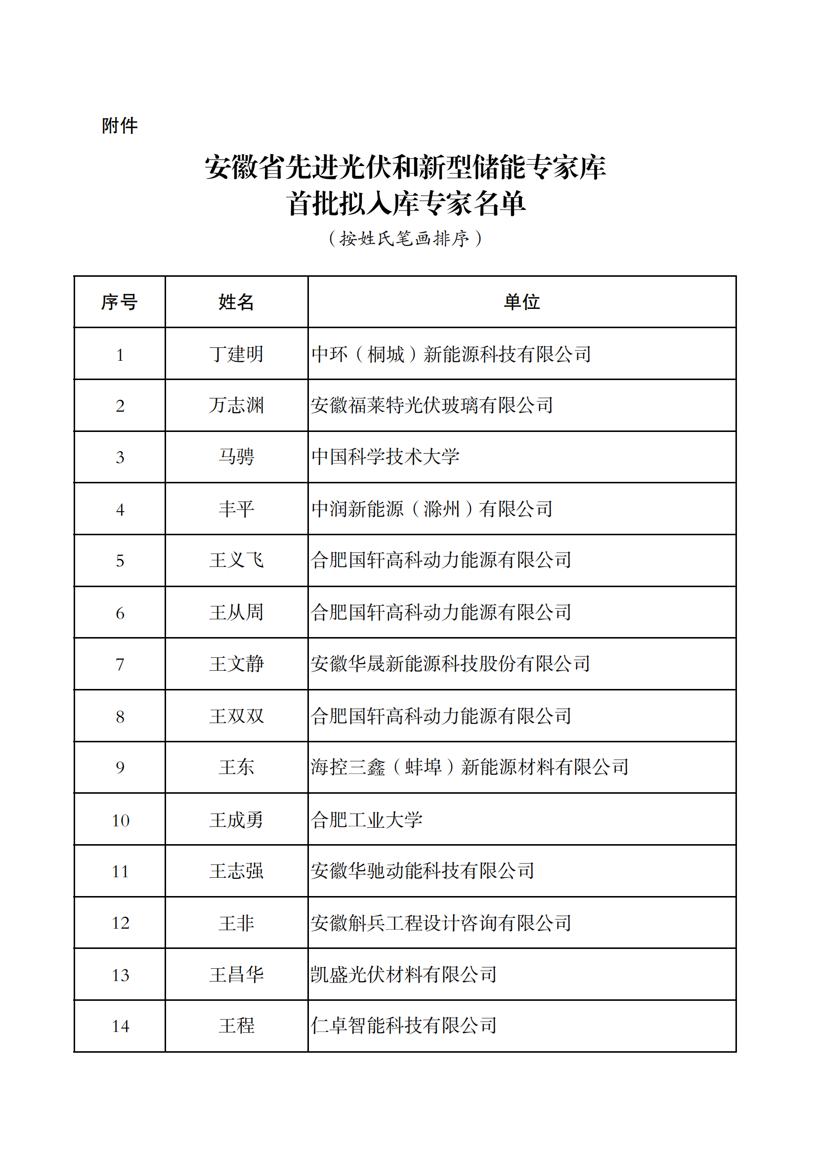 6月16日,安徽省工信廳公示了安徽省先進光伏和新型儲能專家庫首批擬入庫專家名單,共計143位專家。 詳情如下: 關于安徽省先進光伏和新型儲能專家庫首批擬入庫專家名單的公示 為深入貫徹落實《關于強化創新引領推動先進光伏和新型儲能產業集群高質量發展的指導意見》,充分發揮專業人員在促進光儲產業高質量發展中智力支撐作用,根據《安徽省先進光伏和新型儲能產業集群建設領導小組辦公室關于征集先進光伏和新型儲能領域專家庫的通知》,經公開征集、擇優入庫,擬將丁建明等143名專家納入安徽省先進光伏和新型儲能專家庫,現予以公示。公示期為5個工作日,如有異議,請實名向省光儲辦反映。 聯系電話:0551-62871759,郵 箱:sunchengyun@ahjxw.gov.cn。 附件:安徽省先進光伏和新型儲能專家庫首批擬入庫專家名單 安徽省先進光伏和新型儲能產業集群建設工作領導小組辦公室 2025年6月16日