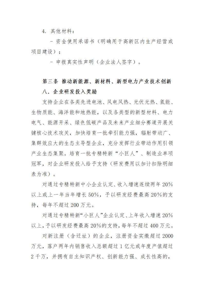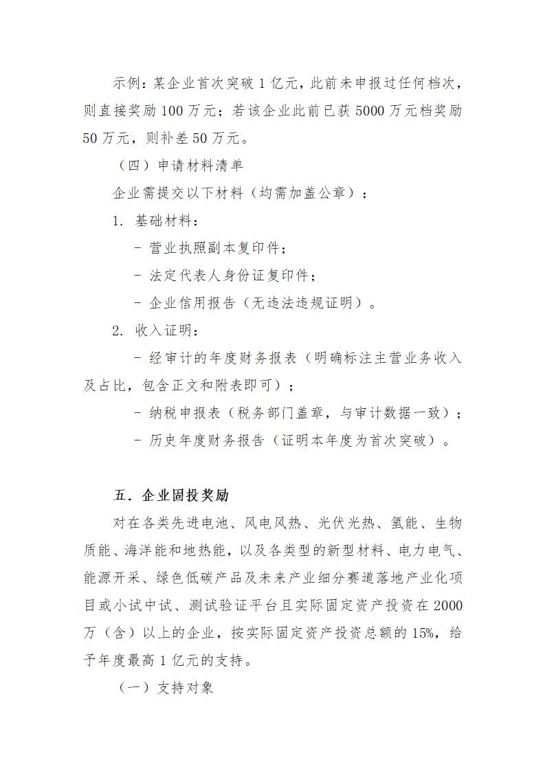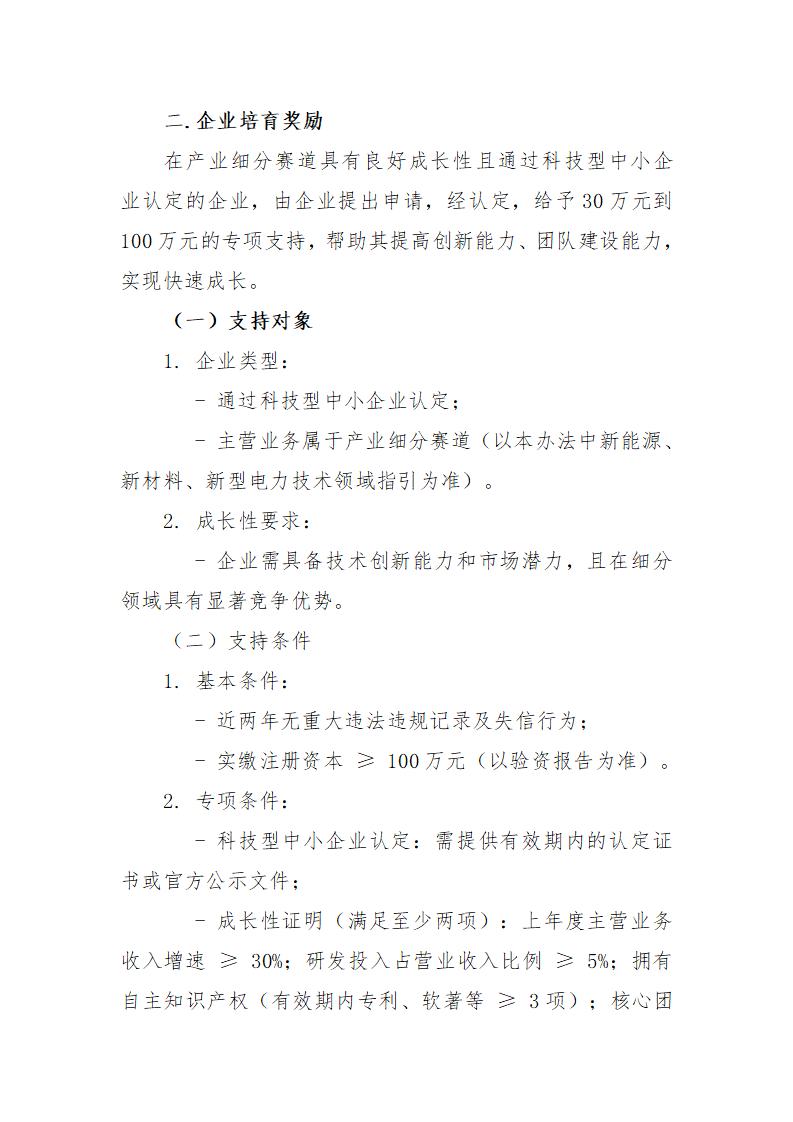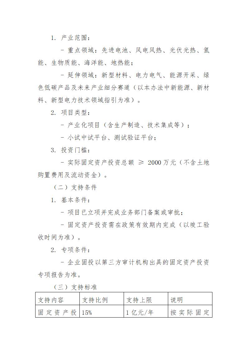 6月17日,天津濱海高新技術產業開發區管理委員會發布關于《天津濱海高新區促進新能源、新材料、新型電力集群融合創新高質量發展辦法(征求意見稿)》及實施細則公開征求意見的通知。 文件提到,對在各類先進電池、風電風熱、光伏光熱、氫能、生物質能、海洋能和地熱能,以及各類型的新型材料、電力電氣、能源開采、綠色低碳產品及未來產業細分賽道落地產業化項目或小試中試、測試驗證平臺且實際固定資產投資在2000萬(含)以上的企業,按實際固定資產投資總額的15%,給予年度最高1億元的支持。 同時,支持企業在各類先進電池、風電風熱、光伏光熱、氫能、生物質能、海洋能和地熱能,以及各類型的新型材料、電力電氣、能源開采、綠色低碳產品及未來產業細分賽道開展關鍵核心技術攻關,加快培育一批牽引能力強,輻射帶動廣、集群效應大的生態主導型企業,充分發揮行業帶動作用引領產業生態集聚。培育一批專精特新“小巨人”、制造業單項冠軍,對企業研發投入給予支持(研發費用以加計扣除明細表為準)。 對通過專精特新中小企業認定、收入增速連續兩年20%以上或上一年當年增長50%,予以研發經費最高20%的支持,每年不超過200萬元。 對通過專精特新“小巨人”企業認定、上年收入增速20%以上,予以研發經費最高20%的支持,每年不超過400萬元。 對新注冊(含遷址)的企業,注冊資金實繳超過2000萬元,落戶兩年內銷售收入總額超過1億元或年度產值超過2千萬,并擁有自主知識產權、創新能力強、成長性高的,予以研發經費最高20%的支持,在政策期內每年不超過500萬元;注冊資金實繳超過10億元,落戶當年內銷售收入總額達到5億元或年度產值超過1億元,并擁有自主知識產權、創新能力強的,予以研發經費最高30%的支持,在政策期內每年不超過3000萬元。 詳情如下: 關于《天津濱海高新區促進新能源、新材料、新型電力集群融合創新高質量發展辦法(征求意見稿)》及實施細則公開征求意見的通知 為落實國務院進一步支持天津濱海新區高質量發展的要求,進一步促進高新區新能源、新材料、新型電力產業高質量發展,高新區新能源產業局起草了《天津濱海高新區促進新能源、新材料、新型電力集群融合創新高質量發展辦法(征求意見稿)》及實施辦法細則,現向社會公開征求意見。公眾可通過以下途徑和方式提出反饋意見: 一、通過電子郵件將意見發送至:gxqxny@tht.gov.cn。郵件標題請注明“新能源、新材料、新型電力集群融合創新高質量發展辦法征求意見”字樣; 二、通過信函方式將意見寄至:天津市濱海新區日新道188號1號樓新能源產業局(郵編:300301),并請在信封上注明“新能源、新材料、新型電力集群融合創新高質量發展辦法征求意見”字樣。 意見反饋截止時間為:2025年6月25日。 聯系人:王工、閆工;聯系電話:022-84806802。 附件1:天津濱海高新區促進新能源、新材料、新型電力集群融合創新高質量發展辦法(征求意見稿) 附件2:天津濱海高新區促進新能源、新材料、新型電力集群融合創新高質量發展辦法實施細則(征求意見稿) 高新區新能源產業局 2025年6月16日 天津濱海高新區促進新能源、新材料、新型電力 集群融合創新高質量發展辦法(征求意見稿) 為貫徹落實中共中央國務院《關于完整準確全面貫徹新發展理念做好碳達峰碳中和工作的意見》、國家發展改革委國家能源局《關于促進新時代新能源高質量發展的實施方案》、中國人民銀行生態環境部金融監管總局中國證監會《關于發揮綠色金融作用服務美麗中國建設的意見》,加快高新區新能源、新材料、新型電力產業發展步伐,強化產業鏈要素支撐,切實落實好“碳達峰、碳中和”工作目標要求,結合高新區實際制定本辦法。 本辦法所指的新能源、新材料、新型電力產業主要是指各類型的能源產品(包括但不限于各類先進電池、風力發電設備、太陽能光伏光熱、氫能、生物質能、海洋能和地熱能)及其相關制造裝備、核心材料、新能源應用等,以及各類型的新型材料、電力電氣能源管理裝備、能源數字化、開采裝備、熱泵設備、綠色低碳應用、生態修復治理、CCUS、碳核查核證、綠色金融、碳匯碳資產管理等領域。為符合技術發展趨勢,細化各細分領域支持范圍,依據國家相關部門公示的產業目錄,即時修訂本辦法并發布新能源、新材料、新型電力技術領域指引。 本辦法適用于工商、稅務及統計關系均在高新區,符合國家規劃布局和產業政策,有健全財務制度、具有獨立法人資格、實行獨立核算、無重大安全事故、無不良經營行為、無不良信用記錄、無重大環境污染問題、無重大不穩定因素,且從事新能源、新材料、新型電力產業研發、生產、配套和服務的產業上下游企業、事業單位、社會團體及非盈利性組織等。 加強新能源、新材料、新型電力產業主體培育 第一條.對新注冊(遷入),在政策期內新增實繳注冊資本2000萬元及以上的,且年度主營業務收入不低于2000萬元的,按照實繳注冊資本的1%予以支持,支持總額最高不超過1000萬元;在政策期內新增實繳注冊資本10億元及以上的,且年度主營業務收入不低于1億元的,按照實繳注冊資本的1.5%予以支持,支持總額最高不超過5000萬元。 第二條.在產業細分賽道具有良好成長性且通過科技型中小企業認定的企業,由企業提出申請,經認定,給予30