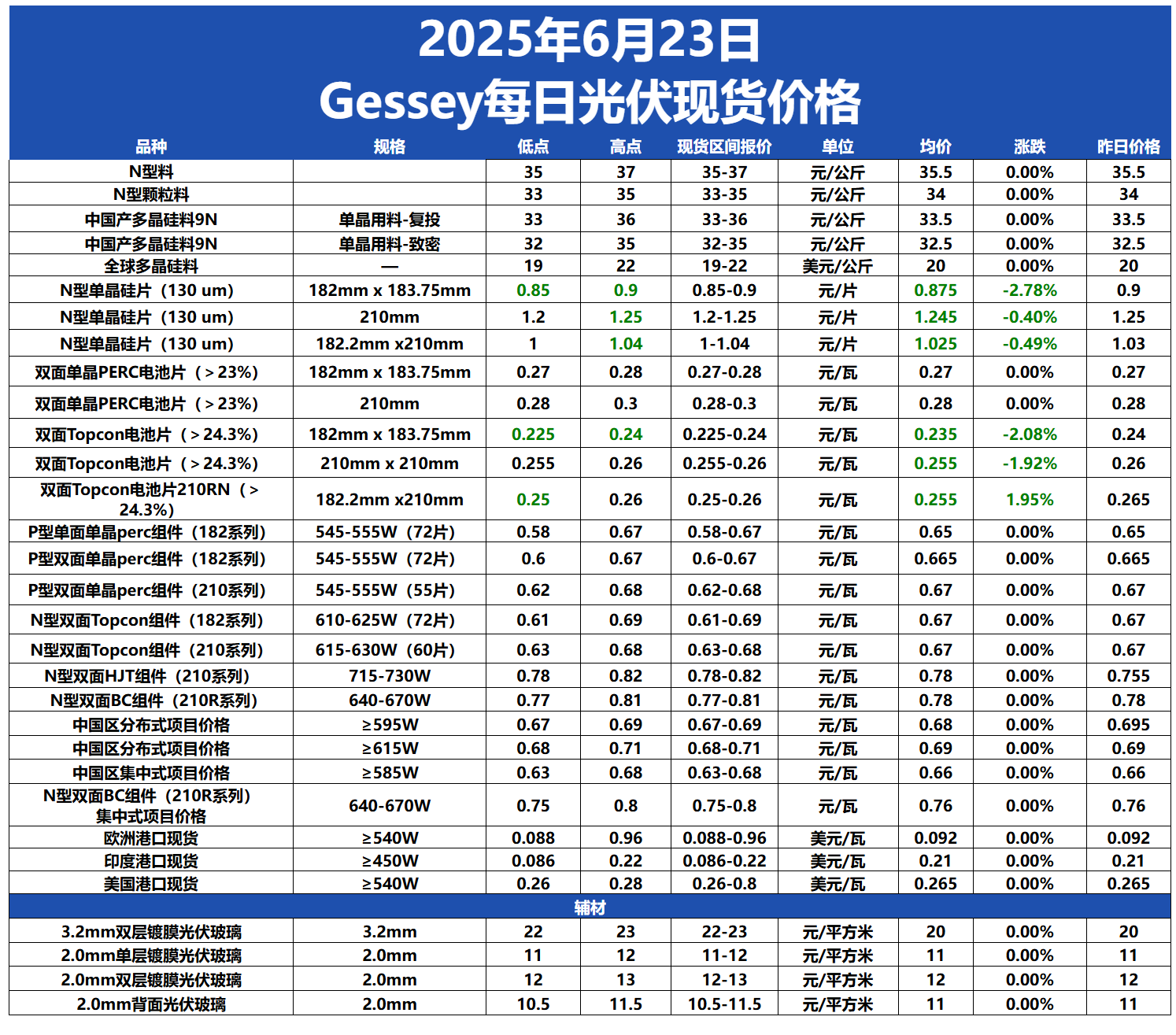 今日電池、硅片價格聯動,小幅松動2025-06-23 18:31來源:gessey瀏覽數:271次