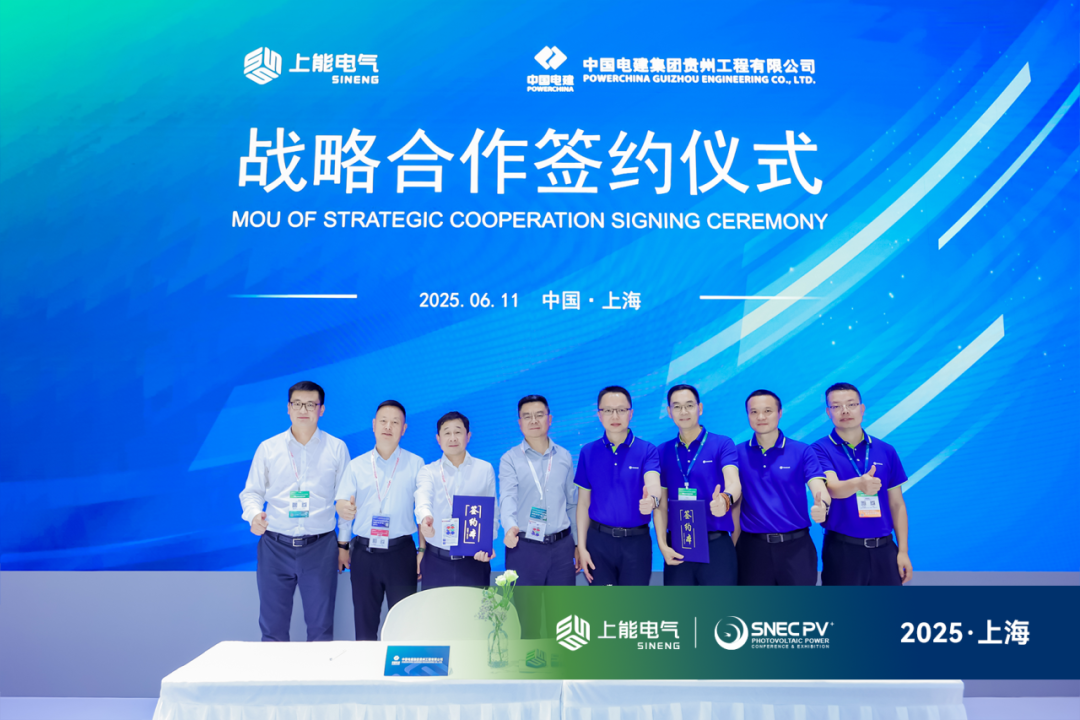 在能源結構加速調整、綠色發展全面提速的時代大背景下,光儲技術融合正成為推動區域綠色轉型、增強能源韌性的重要路徑。近日,上能電氣股份有限公司與中國電建集團貴州工程有限公司正式簽署戰略合作簽約儀式。 根據協議,雙方基于互利共贏、共同發展的原則,充分發揮各自在技術研發、市場資源和項目實施等方面的核心優勢,重點圍繞新能源技術創新、全球市場布局及標桿項目建設等領域開展深度合作。 中國電建集團貴州工程有限公司總會計師高昱和上能電氣股份有限公司市場中心執行總裁劉志國代表雙方簽署協議。中國電建集團貴州工程有限公司副總經理余豪、副總經理閆建國、國際工程公司總經理穆曉慶,上能電氣股份有限公司副總裁楊春明、華南區總經理劉云靜、華南區云貴總監李福明出席并見證簽約。 中國電建集團貴州工程有限公司是中國電建旗下的大型施工總承包企業,具備強大的工程建設能力和國內領先的技術管理水平,業務覆蓋全國并積極拓展海外市場。未來,雙方將共同打造一批具有示范意義的高質量綠色能源項目,通過技術創新驅動和商業模式升級,持續為全球能源轉型注入新動能,為構建清潔低碳、安全高效的現代能源體系貢獻更大力量。