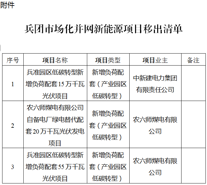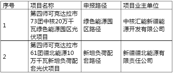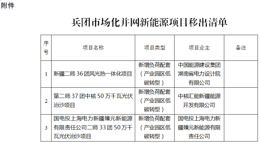 近日,新(xin)(xin)疆兵團(tuan)(tuan)第二師(shi)、第四師(shi)、第六師(shi)、第十師(shi)發布移(yi)出(chu)(chu)兵團(tuan)(tuan)市(shi)(shi)場化并網新(xin)(xin)能(neng)源項(xiang)(xiang)(xiang)目(mu)清(qing)單的公示。根據文件(jian),四個師(shi)合計9個項(xiang)(xiang)(xiang)目(mu)移(yi)出(chu)(chu)市(shi)(shi)場化并網新(xin)(xin)能(neng)源項(xiang)(xiang)(xiang)目(mu)清(qing)單,項(xiang)(xiang)(xiang)目(mu)合計容(rong)量超3GW,項(xiang)(xiang)(xiang)目(mu)業主包括中國能(neng)建、中核、國家電(dian)投等(deng)電(dian)力央企(qi)(qi)以及疆北能(neng)源、中新(xin)(xin)建電(dian)力、農六師(shi)煤電(dian)等(deng)地方(fang)國企(qi)(qi)。 詳情如下(xia) : 第二師: 關(guan)于中(zhong)能建湖南院36團風光熱(re)一(yi)體(ti)化項目(mu)(mu)、中(zhong)核37團50萬千瓦(wa)(wa)光伏(fu)治沙項目(mu)(mu)及(ji)國電(dian)投上海電(dian)力新(xin)(xin)疆臻元新(xin)(xin)能源有(you)限責任公司二師33團50萬千瓦(wa)(wa)光伏(fu)治沙項目(mu)(mu)移(yi)出兵團市場(chang)化并網新(xin)(xin)能源項目(mu)(mu)清單的公示 根據工作需要,中(zhong)國能(neng)源建設集團(tuan)湖南(nan)省電(dian)力(li)設計(ji)院有限(xian)公司(si)(si)、中(zhong)核匯能(neng)新(xin)疆(jiang)能(neng)源開(kai)發(fa)有限(xian)公司(si)(si)、國電(dian)投上(shang)海(hai)電(dian)力(li)新(xin)疆(jiang)臻(zhen)元新(xin)能(neng)源有限(xian)責任公司(si)(si)向我委(wei)申(shen)報移出清單項目共3個。本次申(shen)請移出清單光伏發(fa)電(dian)項目裝機容量200萬千瓦,現按(an)工作程序(xu)予以公示,公示期為7天。 在公(gong)(gong)示(shi)期內(nei),任何單(dan)(dan)位和個(ge)人(ren)對公(gong)(gong)示(shi)內(nei)容存在異議(yi),可以書(shu)面提(ti)出(chu)意(yi)見(jian)。單(dan)(dan)位意(yi)見(jian)必須加蓋公(gong)(gong)章,個(ge)人(ren)意(yi)見(jian)必須署明(ming)真實姓(xing)名、身份證號和聯系電話。如無異議(yi),3個(ge)項目將移(yi)出(chu)兵(bing)團市場化并網新能源項目清單(dan)(dan)。 聯系(xi)方(fang)式:師市(shi)發展改革委能源科 0996-2930903 附件:1.項目清單(dan) 第二師鐵門關市發展(zhan)改革委(wei) 2025年6月(yue)27日 第四師: 關于(yu)將(jiang)73團(tuan)中核20萬(wan)千(qian)瓦綠色能(neng)(neng)(neng)源(yuan)(yuan)園區光(guang)伏項目(mu)、61團(tuan)疆(jiang)北能(neng)(neng)(neng)源(yuan)(yuan)10萬(wan)千(qian)瓦新增負(fu)荷配套光(guang)伏項目(mu)移(yi)出兵團(tuan)市場(chang)化并網新能(neng)(neng)(neng)源(yuan)(yuan)發電項目(mu)清單(dan)的公示 近期,第四(si)師可克(ke)達拉市73團(tuan)(tuan)(tuan)中核(he)20萬千瓦綠色能源(yuan)園(yuan)區光(guang)伏(fu)項目(mu)、第四(si)師可克(ke)達拉市61團(tuan)(tuan)(tuan)疆北能源(yuan)10萬千瓦新增(zeng)負荷配套光(guang)伏(fu)項目(mu)向我委申請移出兵團(tuan)(tuan)(tuan)市場(chang)化并網新能源(yuan)發(fa)電項目(mu)清單,取消(xiao)開發(fa)建設。根據工作需要(yao),現(xian)對相關(guan)信息(xi)進(jin)行公示。 在公(gong)示期內,任何單(dan)位和(he)(he)個人對公(gong)示內容(rong)存在異議(yi),可書(shu)面提出意見。單(dan)位意見必(bi)(bi)須(xu)加蓋(gai)公(gong)章(zhang),個人意見必(bi)(bi)須(xu)署明真實姓(xing)名、身份證號和(he)(he)聯系電(dian)(dian)話。如(ru)無異議(yi),在公(gong)示期結束(shu)后,我委將向兵團發展改革(ge)委申請(qing)將相關(guan)項(xiang)目移出兵團市場化并網新能源發電(dian)(dian)項(xiang)目清單(dan)。 公示時(shi)間(jian):2025年(nian)6月(yue)27日(ri)—2025年(nian)7月(yue)4日(ri) 監督舉報電話:0999—818531,8182336(傳真) 通(tong)訊地址(zhi):可克達拉市鎮江西(xi)路515號 附(fu)件:申(shen)請移出兵團市場化并網新能(neng)源發電項目清單(dan) 第四師可克達拉市發展(zhan)和改革委員會 2025年6月27日 附件(jian) 申請(qing)移出兵團市場化并網新能源(yuan)發(fa)電項目清單 第六師: 關于將(jiang)中新(xin)(xin)建電力兵(bing)準園區低碳轉型新(xin)(xin)增(zeng)負荷配套15萬千(qian)瓦光伏等三個項目(mu)移出兵(bing)團市場(chang)化并網新(xin)(xin)能源(yuan)項目(mu)清單的公(gong)示 根據工(gong)作(zuo)需要,中新建電力集團(tuan)有限責任公司(si)、農六(liu)師煤電有限公司(si)向我委申報(bao)移(yi)出清單(dan)項目共3個。本次申請移(yi)出清單(dan)光(guang)伏發電項目裝機容量共90萬(wan)千瓦(wa),分別為兵(bing)(bing)準園(yuan)區低(di)碳轉型(xing)新增負荷配套(tao)15萬(wan)千瓦(wa)光(guang)伏項目、農六(liu)師煤電有限公司(si)自備電廠綠電替(ti)代配套(tao)20萬(wan)千瓦(wa)光(guang)伏發電項目、兵(bing)(bing)準園(yuan)區低(di)碳轉型(xing)新增負荷配套(tao)55萬(wan)千瓦(wa)光(guang)伏項目。現按(an)工(gong)作(zuo)程序予以公示,公示期(qi)為7天。 在(zai)公示期內,任何單位和個人(ren)(ren)對公示內容存(cun)在(zai)異議,可以書(shu)面提(ti)出意見(jian)(jian)(jian)。單位意見(jian)(jian)(jian)必須加蓋公章,個人(ren)(ren)意見(jian)(jian)(jian)必須署(shu)明真實(shi)姓名、身(shen)份證(zheng)號(hao)和聯系電話。如無(wu)異議,3個項(xiang)(xiang)目將(jiang)移出兵團市(shi)場化(hua)并網新能源項(xiang)(xiang)目清單。 聯(lian)系電話: 0994-5801031 附件(jian):兵團市場(chang)化并網新能源項目移出清單 兵(bing)團市(shi)場化并(bing)網新能源項目(mu)移(yi)出清單(dan) 第六師(shi)發展和(he)改(gai)革委(wei)員(yuan)會(hui) 2025年6月27日 第十師: 關于將第(di)十師184團中核80萬千瓦(wa)新(xin)(xin)能(neng)源(yuan)加儲能(nen