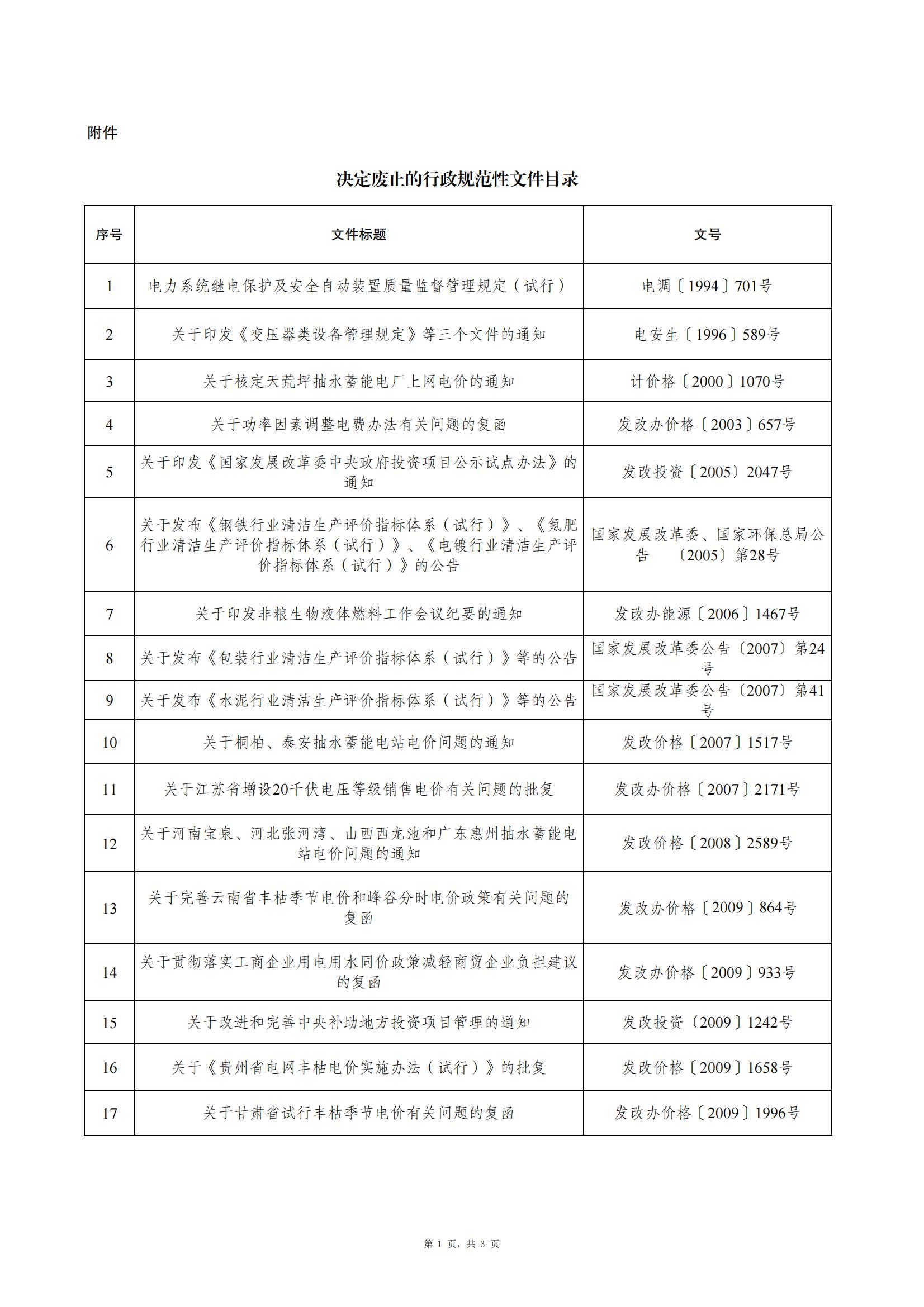 6月30日,國家發展改革委關于廢止一批行政規范性(xing)文件的公告。 落(luo)實國(guo)務院(yuan)關于加強行(xing)政(zheng)規(gui)(gui)(gui)范(fan)(fan)性文件(jian)制定和(he)監督管理(li)工(gong)作的有(you)關要(yao)(yao)求,根據經(jing)濟社會(hui)發展(zhan)(zhan)和(he)工(gong)作實踐需要(yao)(yao),國(guo)家發展(zhan)(zhan)改(gai)革委組織(zhi)對行(xing)政(zheng)規(gui)(gui)(gui)范(fan)(fan)性文件(jian)開展(zhan)(zhan)了(le)清理(li),決定對《電(dian)力(li)系統繼電(dian)保護及(ji)安全自動裝置質量監督管理(li)規(gui)(gui)(gui)定》(試行(xing))(電(dian)調〔1994〕701號(hao))等45件(jian)行(xing)政(zheng)規(gui)(gui)(gui)范(fan)(fan)性文件(jian)予以廢止。 本公告自印發之日(ri)起施行。