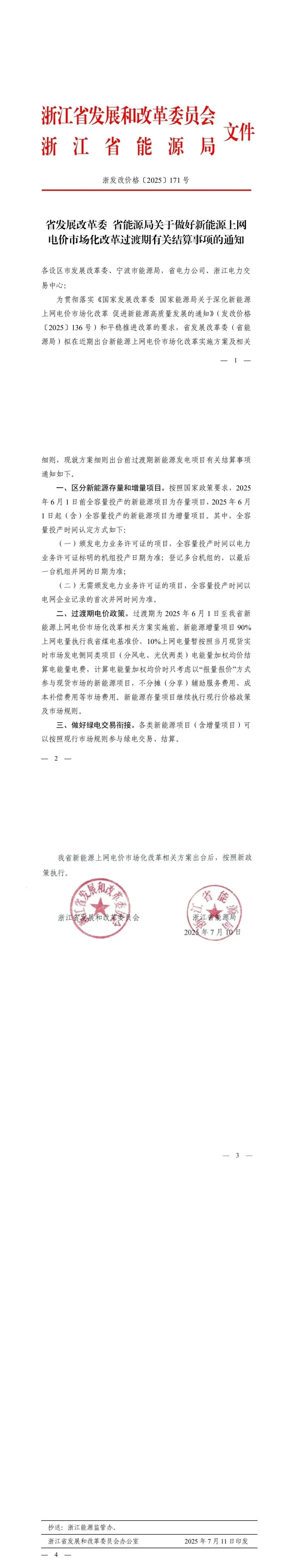 浙江136號文過渡文件:存量按現行政策,增量項目90%燃煤基準價、10%現貨2025-07-14 14:06來源:gessey瀏覽數:237次