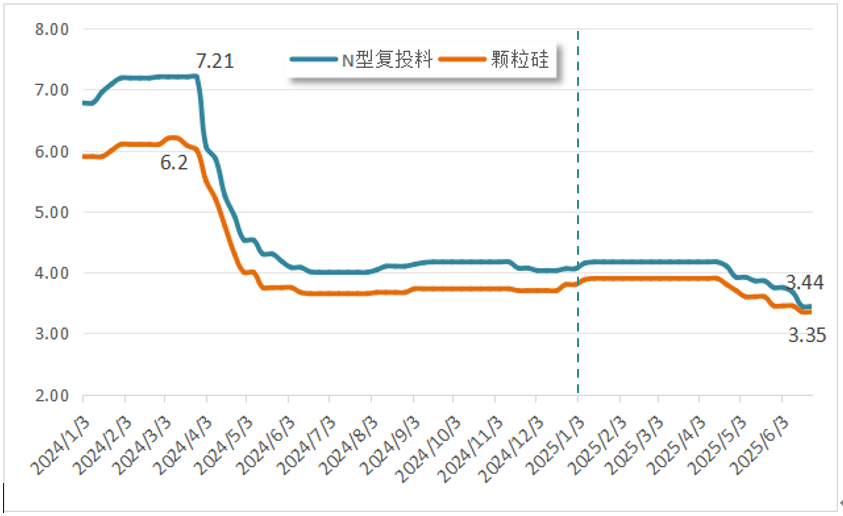 企業開工維持低位 2025年上半年,硅(gui)產業鏈各環節市場價(jia)格持續(xu)低(di)(di)于生(sheng)產成(cheng)(cheng)本甚至現金成(cheng)(cheng)本,絕大多數生(sheng)產企業深陷虧損(sun)運營(ying)的窘境(jing)。其中多晶硅(gui)均(jun)價(jia)于2024年5月(yue)(yue)中旬(xun)降至3.8萬元(yuan)(yuan)/噸,低(di)(di)于行(xing)業平均(jun)成(cheng)(cheng)本運行(xing)持續(xu)時間(jian)已超14個(ge)月(yue)(yue);工(gong)業硅(gui)均(jun)價(jia)于2025年4月(yue)(yue)底降至9648元(yuan)(yuan)/噸,低(di)(di)于行(xing)業平均(jun)成(cheng)(cheng)本運行(xing)已持續(xu)近3個(ge)月(yue)(yue);182尺寸硅(gui)片均(jun)價(jia)于2025年5月(yue)(yue)中旬(xun)開始降至0.95元(yuan)(yuan)/片,成(cheng)(cheng)本倒掛時間(jian)超2個(ge)月(yue)(yue)。 為改善(shan)產(chan)(chan)業(ye)鏈供需矛盾,各環節企業(ye)紛紛壓(ya)減(jian)負(fu)荷,工業(ye)硅、多(duo)晶硅、硅片月(yue)(yue)度(du)開工率分別(bie)創41.9%、38.6%、44.3%的(de)歷史(shi)新低。2025年(nian)上(shang)半(ban)年(nian)國內多(duo)晶硅月(yue)(yue)均產(chan)(chan)量為10萬噸,其中(zhong)(zhong)2月(yue)(yue)份月(yue)(yue)度(du)產(chan)(chan)量低至9.2萬噸,同比大(da)幅(fu)減(jian)少47.4%。上(shang)半(ban)年(nian)前五家企業(ye)總體開工率為42.2%,其中(zhong)(zhong)開工率最低的(de)一家頭部企業(ye)上(shang)半(ban)年(nian)開工負(fu)荷僅(jin)為24.1%。通(tong)過全產(chan)(chan)業(ye)鏈減(jian)產(chan)(chan)降(jiang)負(fu)荷,上(shang)半(ban)年(nian)多(duo)晶硅基本達到(dao)產(chan)(chan)銷平衡甚(shen)至小幅(fu)去庫的(de)狀態(tai)。 圖(tu)1 2025年上半(ban)年多(duo)晶(jing)硅行(xing)業開工率情(qing)況 行業庫存小幅消減 2023年(nian)之前,國(guo)內(nei)多(duo)晶(jing)硅(gui)庫(ku)存(cun)(cun)基本(ben)維持在2周(zhou)左右產量的正(zheng)常(chang)流轉狀態(tai)。但從2023年(nian)10月份開(kai)始(shi),國(guo)內(nei)新建多(duo)晶(jing)硅(gui)產能陸續集中釋放(fang),上下游供(gong)需錯配導致市場迅速進入(ru)供(gong)應過剩的局面,庫(ku)存(cun)(cun)開(kai)始(shi)逐步積壓(ya)。2023年(nian)底(di),國(guo)內(nei)多(duo)晶(jing)硅(gui)庫(ku)存(cun)(cun)累積6.3萬噸(dun)。2024年(nian)期間,新增庫(ku)存(cun)(cun)33.5萬噸(dun),到年(nian)底(di)達(da)到39.8萬噸(dun)的歷(li)史高位。 2025年上半(ban)年,國內(nei)多晶(jing)硅產量約59.7萬噸,同(tong)比減少44.0%。同(tong)期(qi)硅片(pian)產量約313.8GW,同(tong)比減少23.8%,對應多晶(jing)硅需(xu)求(qiu)量為62.8萬噸。2025年上半(ban)年多晶(jing)硅供應略小于(yu)需(xu)求(qiu),去庫存(cun)約3.1萬噸(供需(xu)含進出(chu)口),截至(zhi)6月(yue)底,國內(nei)多晶(jing)硅庫存(cun)小幅降至(zhi)36.7萬噸。 圖(tu)2 2025年(nian)(nian)上半年(nian)(nian)多晶硅行(xing)業庫存情況 硅料價格先穩后跌 2025年上(shang)半(ban)年多(duo)晶(jing)(jing)硅(gui)價(jia)格(ge)(ge)呈“先穩后(hou)跌(die)(die)”走勢。1月(yue)(yue)初到(dao)4月(yue)(yue)中旬(xun),市場價(jia)格(ge)(ge)相對持穩,多(duo)晶(jing)(jing)硅(gui)復投料從1月(yue)(yue)初的(de)4.06萬元(yuan)/噸(dun)(dun)微幅(fu)上(shang)漲(zhang)至1月(yue)(yue)中旬(xun)的(de)4.17萬元(yuan)/噸(dun)(dun),漲(zhang)幅(fu)為(wei)(wei)2.7%,后(hou)價(jia)格(ge)(ge)持穩運行三個月(yue)(yue)至4月(yue)(yue)中旬(xun)。4月(yue)(yue)下(xia)旬(xun)開(kai)始,價(jia)格(ge)(ge)一路下(xia)滑至6月(yue)(yue)底的(de)3.44萬元(yuan)/噸(dun)(dun),跌(die)(die)幅(fu)為(wei)(wei)17.5%。2025年上(shang)半(ban)年多(duo)晶(jing)(jing)硅(gui)均價(jia)為(wei)(wei)3.68萬元(yuan)/噸(dun)(dun),同(tong)比下(xia)滑28.8%。 1-4月份“持穩階段”:受“430”和(he)“531”政策影響,終端搶(qiang)裝刺(ci)激下(xia)游需求,價格漲勢向(xiang)上傳導至硅(gui)片(pian)環節,但多晶硅(gui)受制于過高的庫存壓力(li),未能(neng)續接(jie)漲勢。 4-6月份“下行階段”:搶(qiang)裝備貨基本接近尾聲,下游排產逐步減(jian)少(shao),同期多(duo)晶硅產出小幅波(bo)動(dong)增加,雖仍(reng)維(wei)持去(qu)(qu)庫狀(zhuang)態,但(dan)去(qu)(qu)庫量有所減(jian)少(shao),再加之較大的(de)行業庫存基數暫(zan)無明顯撼動(dong),導致多(duo)晶硅價格再度進入下跌(die)走勢。 圖3 2024年1月-2025年6月多晶硅市場(chang)價格走(zou)勢(shi) 供需走勢動態調整 2025年(nian)(nian)(nian)全球光伏(fu)裝機預計(ji)約(yue)(yue)580GW,全年(nian)(nian)(nian)全球多(duo)晶硅(gui)需求約(yue)(yue)140萬(wan)噸(dun)(dun)(不(bu)含(han)各(ge)環(huan)節庫(ku)存(cun)),國內(nei)(nei)需求約(yue)(yue)130萬(wan)噸(dun)(dun)。上半年(nian)(nian)(nian)國內(nei)(nei)多(duo)晶硅(gui)產(chan)量約(yue)(yue)59.7萬(wan)噸(dun)(dun),下(xia)半年(nian)(nian)(nian)考慮到國內(nei)(nei)三家頭部企業的個別基地復產(chan)以及部分新建產(chan)能釋放,預計(ji)下(xia)半年(nian)(nian)(nian)產(chan)量約(yue)(yue)75萬(wan)噸(dun)(dun),全年(nian)(nian)(nian)國內(nei)(nei)多(duo)晶硅(gui)產(chan)量預計(ji)在(zai)135萬(wan)噸(dun)(dun)左右。若按(an)當前排產(chan)計(ji)劃進行,在(zai)硅(gui)片環(huan)節供需基本(ben)平衡、電池和組件(jian)環(huan)節去庫(ku)的情況下(xia),下(xia)半年(nian)(nian)(nian)硅(gui)料環(huan)節將再次進入小幅(fu)累庫(ku)狀態,全年(nian)(nian)(nian)合計(ji)庫(ku)存(cun)增量約(yue)(yue)3萬(wan)噸(dun)(dun)。 當前(qian)(qian)多(duo)(duo)晶(jing)硅(gui)產業正(zheng)處于深刻(ke)調整、結構重(zhong)塑的(de)關鍵階段,國家(jia)部委與協會正(zheng)通過(guo)“反內(nei)卷(juan)”行動(dong)、產能(neng)(neng)并購、績效(xia