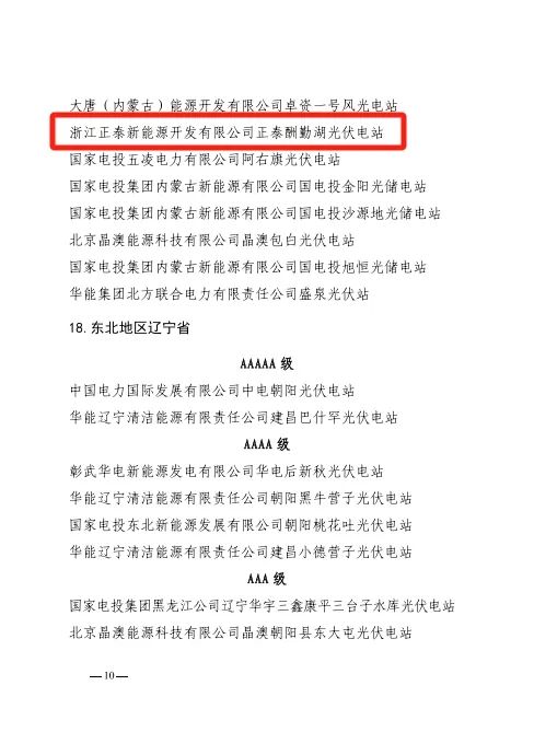 近日,中(zhong)國電力(li)企業聯合會(中(zhong)電聯)公(gong)布(bu)2024年度電力(li)行業光伏(fu)發電運行指標(biao)(biao)對(dui)標(biao)(biao)結果,正泰新能源(yuan)甌泰光伏(fu)電站(zhan)獲華(hua)東地區(qu)浙江(jiang)省AAAA級光伏(fu)電站(zhan),正泰長源(yuan)光伏(fu)電站(zhan)獲東北(bei)(bei)地區(qu)吉林(lin)省AAA級光伏(fu)電站(zhan),正泰酬(chou)勤湖光伏(fu)電站(zhan)獲華(hua)北(bei)(bei)地區(qu)內蒙自治(zhi)區(qu)AAA級光伏(fu)電站(zhan)。 此次評(ping)選,全(quan)國各發電(dian)集團(投資公司(si))共上報2048家集中(zhong)式光伏電(dian)站(zhan)(zhan)參與(yu)對標。評(ping)委會(hui)通過對電(dian)量指標、能耗指標、設備運行水平(ping)(ping)指標開展綜合評(ping)價,經數據公示(shi)、評(ping)審等環(huan)節,最終評(ping)定出(chu)電(dian)力行業 2024 年(nian)度對標得分前 20% 的(de)光伏電(dian)站(zhan)(zhan),有效(xiao)檢驗并鞏固提升電(dian)力行業光伏電(dian)站(zhan)(zhan)能效(xiao)水平(ping)(ping)。 2025年(nian)初,中(zhong)電(dian)(dian)(dian)聯(lian)組織“2024年(nian)度電(dian)(dian)(dian)力行業新(xin)能(neng)源發(fa)電(dian)(dian)(dian)場站(zhan)生產運行指(zhi)標對標數據(ju)(ju)報送”工作(zuo),正(zheng)泰新(xin)能(neng)源按(an)照要求選取所屬(shu)集(ji)中(zhong)式光(guang)伏(fu)電(dian)(dian)(dian)站(zhan)的(de)年(nian)度生產運行數據(ju)(ju)參(can)與(yu)對標,此次是正(zheng)泰新(xin)能(neng)源所屬(shu)存量(liang)資(zi)產首次參(can)與(yu)中(zhong)電(dian)(dian)(dian)聯(lian)對標評(ping)比活動。經(jing)過激烈的(de)角逐,憑借高效的(de)發(fa)電(dian)(dian)(dian)效能(neng)、突出的(de)可(ke)靠性運行指(zhi)標和出色的(de)設備(bei)管理水(shui)平,最終正(zheng)泰新(xin)能(neng)源3座電(dian)(dian)(dian)站(zhan)榮獲評(ping)級(ji),優勝電(dian)(dian)(dian)站(zhan)數量(liang)占比高于80%以上發(fa)電(dian)(dian)(dian)集(ji)團獲評(ping)得獎(jiang)水(shui)平。 正泰新能源(yuan)甌(ou)泰光伏電站 正(zheng)泰(tai)長源(yuan)光伏(fu)電站(zhan) 正泰酬勤湖光伏電(dian)站 4A級代表(biao)省域標桿(gan),3A級為區域領(ling)先(xian),獲評電站代表(biao)處(chu)于全(quan)國光伏電站運營管理(li)的領(ling)先(xian)水平,為行(xing)業(ye)發展(zhan)樹立了標桿(gan)典范。此次獲評,是(shi)對正泰新能源在(zai)資產運營、設備管理(li)和運檢質量等方(fang)面領(ling)先(xian)行(xing)業(ye)水平的高度肯定。 未來(lai),正泰新(xin)能源將持續(xu)做(zuo)好存量資產精細化運營(ying)管理,實現(xian)資產增(zeng)值保值,保持在新(xin)能源行(xing)業的先進水平,達成經(jing)濟(ji)效益(yi)與社會責任(ren)雙贏。 下一篇: 蟬聯!上能電氣,全球第四