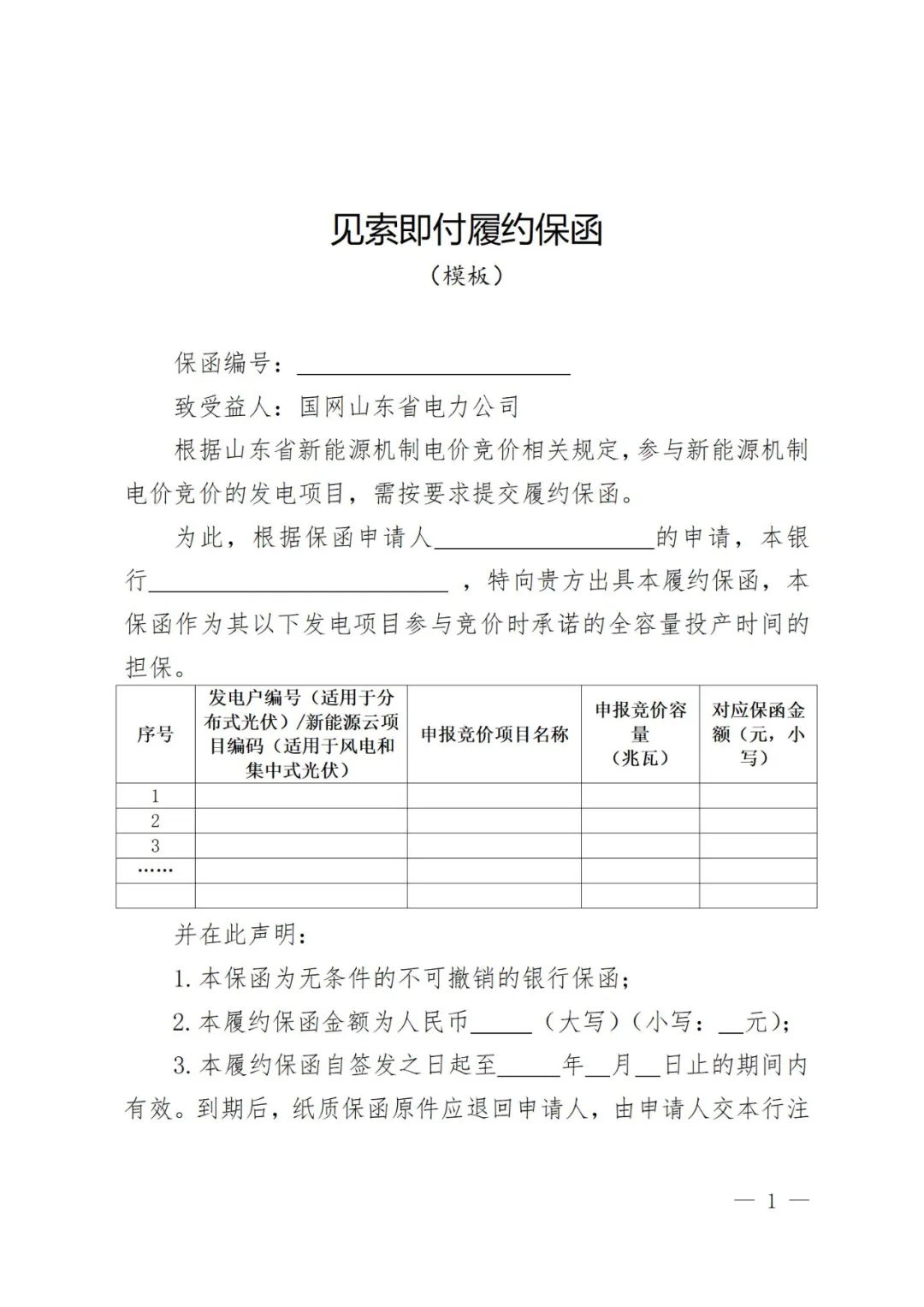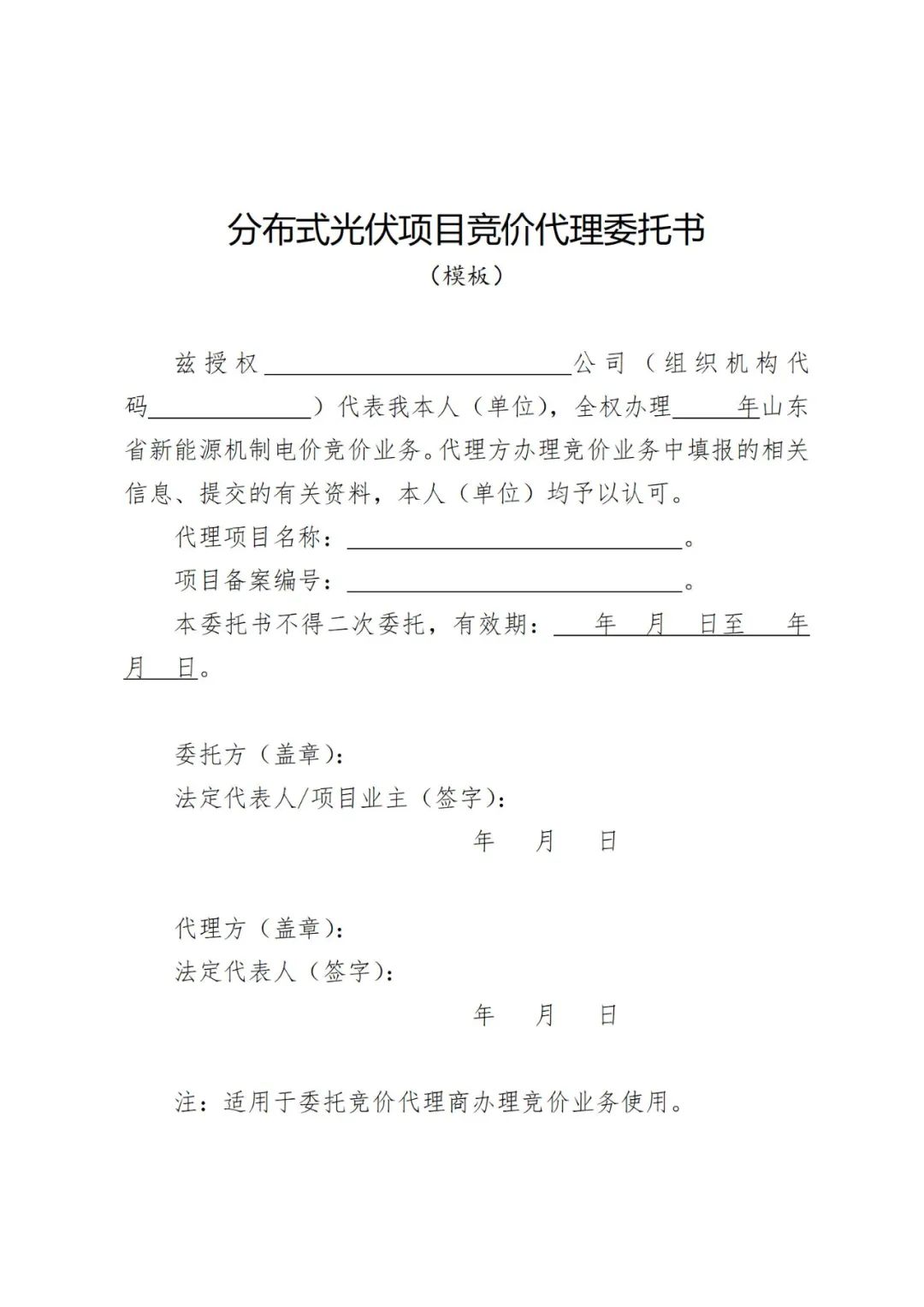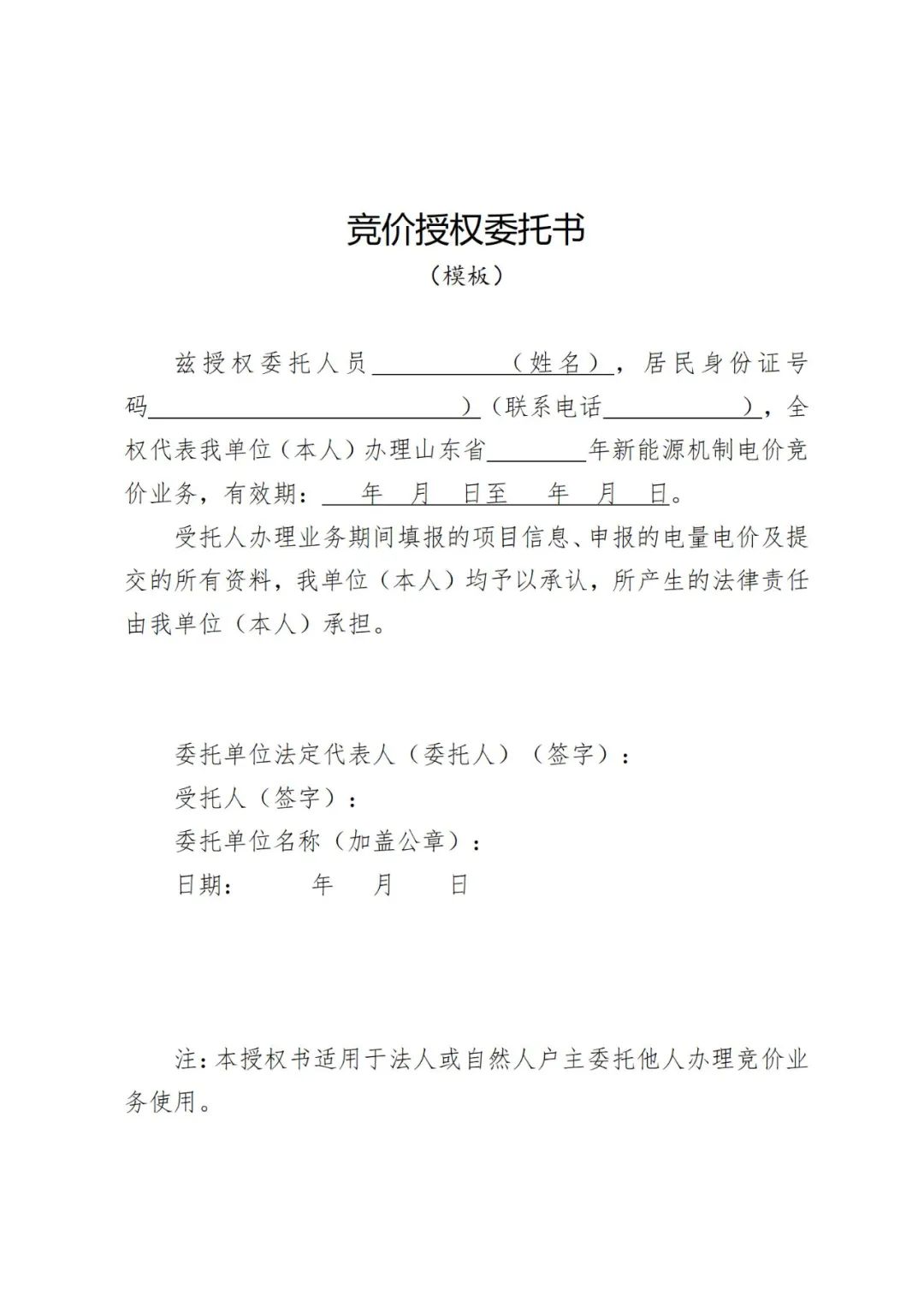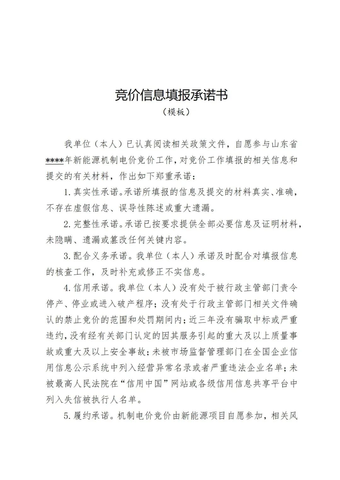 各市發展改革委、能(neng)源(yuan)局,國(guo)(guo)網山(shan)(shan)東省電(dian)(dian)力(li)(li)公(gong)(gong)(gong)(gong)司(si),山(shan)(shan)東電(dian)(dian)力(li)(li)交易中心,山(shan)(shan)東能(neng)源(yuan)集團有(you)(you)(you)限(xian)公(gong)(gong)(gong)(gong)司(si)、華能(neng)山(shan)(shan)東發電(dian)(dian)有(you)(you)(you)限(xian)公(gong)(gong)(gong)(gong)司(si)、華電(dian)(dian)國(guo)(guo)際電(dian)(dian)力(li)(li)股(gu)份有(you)(you)(you)限(xian)公(gong)(gong)(gong)(gong)司(si)山(shan)(shan)東分(fen)公(gong)(gong)(gong)(gong)司(si)、國(guo)(guo)家能(neng)源(yuan)集團山(shan)(shan)東電(dian)(dian)力(li)(li)有(you)(you)(you)限(xian)公(gong)(gong)(gong)(gong)司(si)、大(da)唐(tang)山(shan)(shan)東發電(dian)(dian)有(you)(you)(you)限(xian)公(gong)(gong)(gong)(gong)司(si)、國(guo)(guo)家電(dian)(dian)力(li)(li)投資集團公(gong)(gong)(gong)(gong)司(si)山(shan)(shan)東分(fen)公(gong)(gong)(gong)(gong)司(si)、華潤電(dian)(dian)力(li)(li)控股(gu)有(you)(you)(you)限(xian)公(gong)(gong)(gong)(gong)司(si)華北大(da)區(qu)、中國(guo)(guo)三峽集團山(shan)(shan)東分(fen)公(gong)(gong)(gong)(gong)司(si)、山(shan)(shan)東核(he)電(dian)(dian)有(you)(you)(you)限(xian)公(gong)(gong)(gong)(gong)司(si): 為推動新(xin)能源高質量發(fa)(fa)展(zhan),根據《關于印發(fa)(fa)<山(shan)東省(sheng)(sheng)新(xin)能源上網電價(jia)市場(chang)化(hua)改革實(shi)施方案(an)>的通知》(魯發(fa)(fa)改價(jia)格〔2025〕576號)等(deng)文件規定(ding),省(sheng)(sheng)發(fa)(fa)展(zhan)改革委、山(shan)東能源監(jian)管(guan)辦、省(sheng)(sheng)能源局研究制(zhi)定(ding)了《山(shan)東省(sheng)(sheng)新(xin)能源機制(zhi)電價(jia)競價(jia)實(shi)施細則》,現印發(fa)(fa)給你們,請抓好貫徹執行。 山(shan)東(dong)省發展和(he)改革委員(yuan)會 國(guo)家能源局山(shan)東監管(guan)辦(ban)公室(shi) 山東省能源局 2025年8月6日 附件 山東省新能源機制電價競價實施細則 第一章 總 則 第一條 【制定依據】根(gen)據《關于印(yin)發<山東省新能源上網電價市(shi)場化改革實(shi)(shi)施(shi)(shi)方案>的通知》(魯發改價格〔2025〕576號)等文件(jian)規定,制定本(ben)實(shi)(shi)施(shi)(shi)細則(ze)。 第二條(tiao) 【實施(shi)范(fan)圍】本實施(shi)細則(ze)所稱新(xin)(xin)能(neng)源項目(mu),是指2025年6月1日(ri)及以后投產(即全(quan)容(rong)量并網,下(xia)(xia)同)的(de)風電、光伏發電(以下(xia)(xia)簡稱新(xin)(xin)能(neng)源項目(mu))。 任何單位不得將(jiang)配置儲能作(zuo)為6月(yue)1日及以后投(tou)產(chan)風電、光伏(fu)發電核準、并網、上網等的前置條件。 第(di)三條(tiao) 【全容量(liang)認定方式】新(xin)能源(yuan)項目全容量(liang)規模(mo),以項目核準(zhun)(備(bei)案)裝(zhuang)機容量(liang)(交流側,下同)為準(zhun)。 第四條 【并(bing)網(wang)(wang)(wang)時(shi)(shi)(shi)間(jian)認定方式(shi)】新(xin)能源(yuan)項(xiang)目(mu)全容量(liang)并(bing)網(wang)(wang)(wang)時(shi)(shi)(shi)間(jian),以項(xiang)目(mu)首(shou)次并(bing)網(wang)(wang)(wang)時(shi)(shi)(shi)間(jian)為準,其中(zhong)風電、集中(zhong)式(shi)光(guang)伏(fu)(fu)和10千伏(fu)(fu)及(ji)以上分(fen)布(bu)式(shi)光(guang)伏(fu)(fu)項(xiang)目(mu),為電網(wang)(wang)(wang)企業(ye)發(fa)電設備啟動試運(yun)票(piao)中(zhong)標(biao)注的“開工(gong)時(shi)(shi)(shi)間(jian)”;10千伏(fu)(fu)(不含)以下低(di)壓分(fen)布(bu)式(shi)光(guang)伏(fu)(fu)項(xiang)目(mu),為電網(wang)(wang)(wang)企業(ye)現場驗(yan)收(shou)調試并(bing)網(wang)(wang)(wang)時(shi)(shi)(shi)間(jian)。首(shou)次并(bing)網(wang)(wang)(wang)前,新(xin)能源(yuan)項(xiang)目(mu)需全容量(liang)建成。 第五條 【分(fen)布式項(xiang)目并網(wang)條件(jian)】分(fen)布式項(xiang)目全容(rong)量并網(wang)時 應(ying)滿足(zu)“四可(ke)”(可(ke)觀、可(ke)測、可(ke)調、可(ke)控)條(tiao)件,具備在線參與電力(li)系統調節能力(li)。 第六條 【分期(qi)(批(pi)(pi))項(xiang)(xiang)目(mu)全容(rong)量認定(ding)方式】分期(qi)(批(pi)(pi))并網(wang)(wang)(wang)的(de)項(xiang)(xiang)目(mu),應在核準(備(bei)(bei)案(an))文(wen)件(jian)中(zhong)明確分期(qi)建(jian)設(she)規模(mo)和建(jian)設(she)內容(rong),或分別辦理核準(備(bei)(bei)案(an))文(wen)件(jian)。投產規模(mo)與(yu)核準(備(bei)(bei)案(an))文(wen)件(jian)中(zhong)分期(qi)(批(pi)(pi))建(jian)設(she)內容(rong)一致的(de),視同為當期(qi)(批(pi)(pi))項(xiang)(xiang)目(mu)按照核準(備(bei)(bei)案(an))文(wen)件(jian)全容(rong)量并網(wang)(wang)(wang)。對于分期(qi)(批(pi)(pi))建(jian)設(she)的(de)項(xiang)(xiang)目(mu),國網(wang)(wang)(wang)山東省電力公司按程序組織并網(wang)(wang)(wang)驗收(shou)。 第七條 【分(fen)(fen)期(qi)(qi)(qi)(批(pi))項目機(ji)(ji)制電價(jia)認(ren)定(ding)方式】分(fen)(fen)期(qi)(qi)(qi)(批(pi))并網(wang)項目可按期(qi)(qi)(qi)(批(pi))參(can)(can)加機(ji)(ji)制電價(jia)競(jing)價(jia),按期(qi)(qi)(qi)(批(pi))確定(ding)全容量(liang)并網(wang)時(shi)間。新能源(yuan)項目競(jing)得機(ji)(ji)制電量(liang)后分(fen)(fen)期(qi)(qi)(qi)(批(pi))并網(wang)的(de),按未全容量(liang)并網(wang)處(chu)置(zhi)。對于具有多(duo)個機(ji)(ji)制電量(liang)、機(ji)(ji)制電價(jia)的(de)同一個場站(zhan),若分(fen)(fen)期(qi)(qi)(qi)(批(pi))分(fen)(fen)別參(can)(can)與市(shi)場交易(yi),其每(mei)期(qi)(qi)(qi)(批(pi))發電設備應具備獨立計量(liang)、獨立控制、獨立預(yu)測等功(gong)能。 第二章 競價主體 第八