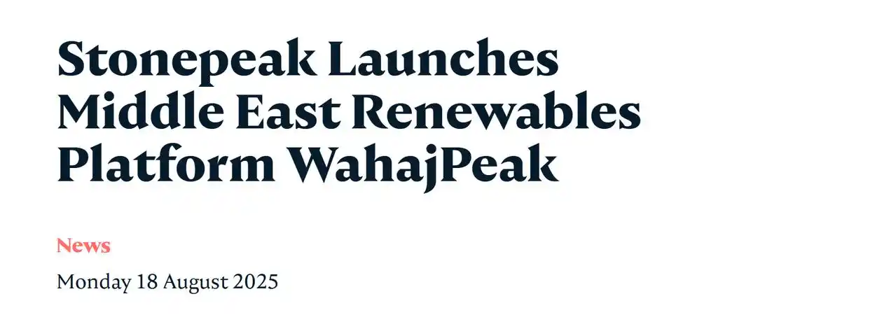 管理資產規模(mo)達763億美元的美國另類投(tou)資巨頭Stonepeak宣布,其(qi)在中東(dong)推出了可再生能(neng)源子公司WahajPeak,旨在于海灣合作(zuo)委員會(GCC)及(ji)更(geng)廣泛(fan)的中東(dong)地區(qu)投(tou)資并(bing)開發太陽能(neng)、風電及(ji)電池儲(chu)能(neng)等(deng)大型項目(mu)。 在(zai)WahajPeak成立前,Stonepeak與阿拉(la)伯能源基(ji)金(jin)(The Arab Energy Fund)已(yi)官宣合作伙伴關系,二(er)者(zhe)共同(tong)投(tou)資10億(yi)美(mei)元致(zhi)力于(yu)該(gai)地能源基(ji)礎(chu)設施(shi)建設。 中(zhong)東公(gong)司將由Mothana Qteishat領導,他曾任(ren)晶科(ke)電力副總(zong)裁,擁(yong)有(you)17年中(zhong)東新(xin)能(neng)源領域從業經(jing)驗(yan),累計(ji)開發交付超過5吉(ji)瓦(GW)的光能(neng)項(xiang)目(mu)。目(mu)前Stonepeak已在利雅得(de)和阿(a)布扎比設立團隊(dui)。 Stonepeak表示,該子公司(si)的設立契合區域去碳化(hua)、能源多(duo)元化(hua)和電(dian)網(wang)現(xian)代化(hua)的國(guo)家戰略。 據(ju)統計,至2030年中東和北非(fei)預(yu)計將部署約175吉瓦的可再生能源裝機容量(liang)。 WahajPeak是Stonepeak全球新(xin)能(neng)(neng)源平臺布(bu)局計劃的一部分,其已(yi)在(zai)亞(ya)洲、北美(mei)與歐洲等地建立能(neng)(neng)源子公司(si)。迄今(jin),該公司(si)在(zai)全球范(fan)圍(wei)內已(yi)有10.4GW風(feng)電、光伏(fu)及(ji)儲能(neng)(neng)資(zi)產(chan)處于運(yun)營、建設(she)或(huo)開發階(jie)段。 隨著沙特、阿聯酋等(deng)國加速能(neng)源轉型,WahajPeak的(de)成立不(bu)僅將為區(qu)域(yu)引入更多國際資本(ben),也(ye)將加快新能(neng)源項目的(de)落(luo)地。