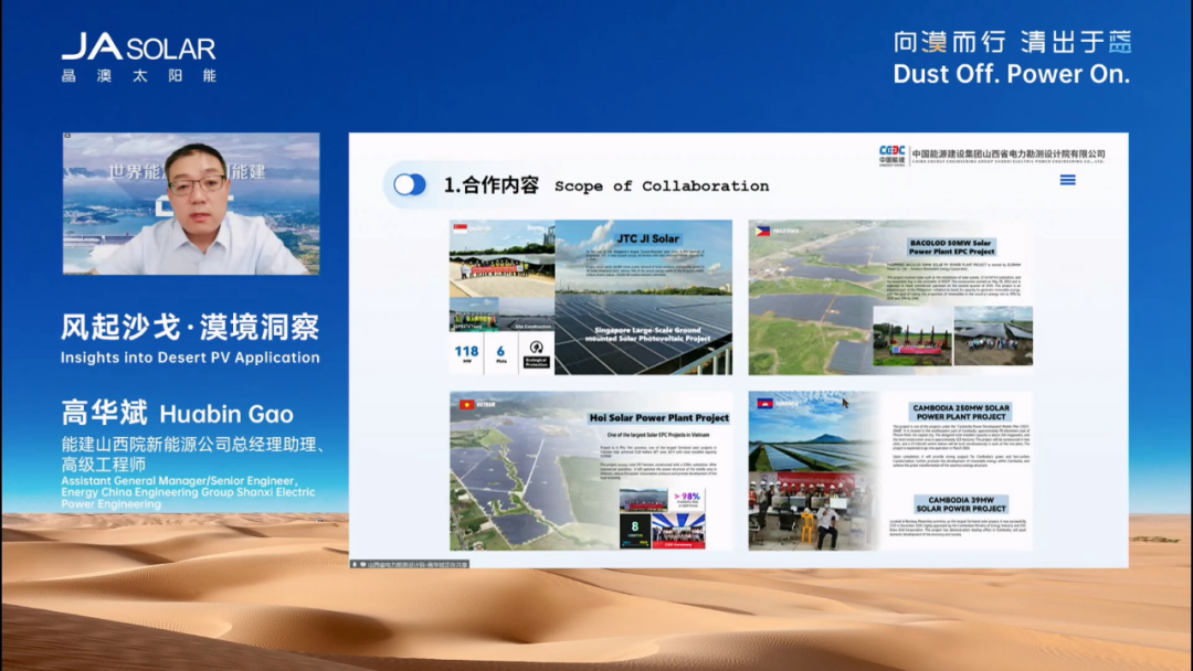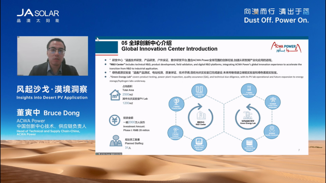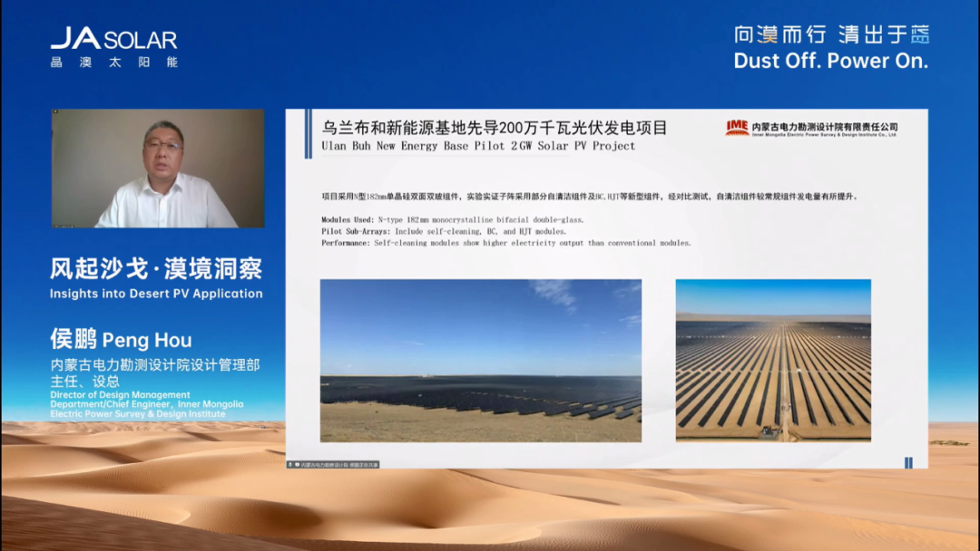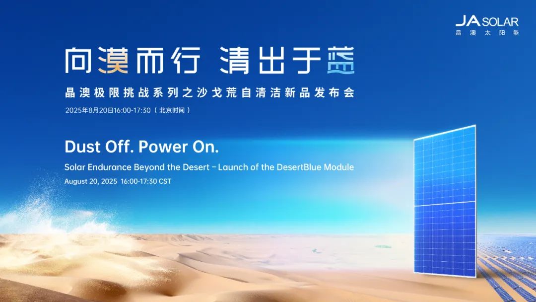 8月20日,“向漠而行 清出于藍”晶澳科技極限挑戰系列之沙戈荒自清潔新品發布會在北京盛大召開。本次發布會云集內蒙古電力勘測設計院、ACWA Power、能建山西院新能源公司等知名企業,及德國萊茵TüV、TüV南德、國檢集團等權威機構,共同見證晶澳科技榮耀發布全新“漠藍”專業組件,開啟沙戈荒能源開發效益新時代! 沙戈荒開發圖景壯麗 發布會伊始,晶澳科技執行總裁楊愛青為大會作開幕致辭。他表示,沙戈荒占中國國土近27%,同時占全球陸地約25%的面積,當下國家正有序推進沙戈荒大基地和電力外送通道規劃建設,中東非地區也掀起了能源與生態雙重革命。今天,晶澳科技推出全球首款深度聚焦沙戈荒環境系統性挑戰的專業組件“漠藍”,不僅重構了光伏組件抗沙性能標準,更填補了行業空白。沙戈荒光伏的前景無限光明,而“漠藍”,正是賦能沙戈荒價值開發的堅實伙伴! 內蒙古電力勘測設計院設總侯鵬表示,目前“十五五”期間實施的沙戈荒大基地規劃已初步形成,主要圍繞9個沙漠戈壁進行布局,其中光伏規劃約117GW。在此次基地規劃中,沙地場景將大幅增加,對組件產品要求更高,晶澳科技“漠藍”組件的推出恰逢其時。 ACWA Power中國創新中心技術、供應鏈負責人董寅中表示,中東地區太陽能資源優渥,極其適合開發光伏。但在項目實際運行中,因沙塵過載,組件需一天一清掃,導致ARC膜失效,功率衰減嚴重,同時清洗機器人故障率高、容易脫軌,運維綜合成本很高。針對沙戈荒場景開發具有抗灰塵能力的組件勢在必行,晶澳創造了又一個行業里程碑。 能建山西院新能源公司總經理助理、高級工程師高華斌表示,中亞五國與中東北非地區與我國沙戈荒光伏開發具有相同難點,其中氣候極端、施工物流艱難、運維成本高等問題最為尖銳。針對本次“漠藍”組件發布,能建山西院愿與晶澳共同驗證新技術、新產品,共享項目數據,共同推動沙戈荒光伏建設行業標準,提升項目質量和效益。 真沙戈荒組件,當如“漠藍” “作為行業首款專業沙戈荒組件,‘漠藍’最大的優勢就是效益提升所見即所得。”發布會現場,伴隨晶澳科技產品與解決方案研發中心產品部長(下稱“產品負責人”)開啟演講,本次大會正式迎來高能環節——“漠藍”組件全球榮耀發布。 晶澳產品負責人指出,“漠藍”組件從建設、運營到系統發電全方位為客戶創造價值:“在沙戈荒項目建設中,‘漠藍’可顯著降低初始投資,包括每瓦節省0.003元的接地成本,以及在中國和中東地區分別節省0.04元/W和0.025元/W的清洗機器人投入。在運營階段,以100MW沙漠電站為例,其可將人工清洗(干刷)頻率降低一半,年省24萬元,25年累計節省600萬元;在中國西北和中東地區機器人清洗(干刷)25年運行成本也可分別節省700萬元與540萬元。系統發電方面,蒙能烏蘭布和項目采用晶澳‘漠藍’組件,較常規組件發電量增加達4.49%。” 如此巨大的客戶價值背后,源于晶澳科技對沙戈荒環境與客戶需求的深刻洞察。作為全球客戶信賴的綠色能源解決方案合作伙伴,晶澳已深度參與諸多沙戈荒光伏項目建設,并總結出四大典型痛點:沙塵中的小粒徑積灰、大粒徑磨損、強風高載荷以及極端高溫。 “小粒徑積灰影響透光率,降低發電量;大粒徑磨損加速膜層老化,導致功率衰減;強風高載荷引發隱裂與結構損壞;極端高溫則會削弱發電能力、加速材料老化。”晶澳產品負責人解釋道。 針對這些挑戰,晶澳在賦予“漠藍”量產最高650W領先功率與最高24%轉換效率的基礎上,重構沙戈荒產品性能標準,再創四大核心優勢: 自清潔:采用納米級自清潔涂層,致密微結構與抗靜電特性大幅降低灰塵附著力,輕松借助風力實現自清潔,透光率衰減比常規組件玻璃降低32%以上; 耐侯及耐磨性:各項可靠性至少提升了32%,延長壽命3–5年;同時提升膜層硬度,在強沙塵環境下功率損失減少14%; 高載荷:結構強化并搭載高強度邊框,正面載荷6000Pa、背載4000Pa,相較常規組件載荷能力提升超60%。其鋼材料邊框兼具熱膨脹適應性與優良導電性,降低接地材料需求與碳排放; 抗高溫:溫度系數優化至-0.28%/℃,配合晶澳TOPCon電池高開路電壓,在50℃沙漠環境、75–85℃組件工作溫度下發電量提升0.5–0.6%。同時,相較常規組件,“漠藍”組件在沙塵環境下,工作溫度降低近5℃,相當于額外提升約1.5%發電能力。 向漠而行,聯合驗證計劃啟動 當前,“漠藍”組件的卓越性能及其在沙戈荒環境中的超高增益已獲多家國際權威機構認證,進一步印證了“漠藍”的技術領先性與環境適應性。 發布會現場,德國萊茵TüV部門經理姚源博表示:晶澳“漠藍”已率先斬獲TüV萊茵頒發的全球首張“沙漠組件”認證,這項認證被業內譽為最嚴酷的環境和安全考核,它包含7個嚴苛測試序列,包括高溫條件下的高強度紫外照射,輻照劑量高達120kWh/m2;400次熱循環測試,相比IEC 61215標準溫度提升至105℃;UV60kWh/m2之后的1萬次的動態機械載荷測試;濕熱條件疊加UV以及高溫TC200的多重耦合測試;還有干熱、吹沙、沙礫磨損測試以及70℃高溫下的熱斑測試。晶澳“漠藍”組件在所有測試中表現出色,功率穩定、零黃變、零隱裂。 TüV南德大中華區智慧能源部,電站服務團隊技術負責人顧斌峰表示:晶澳科技“漠藍”產品在沙戈荒光伏技術領域已取得里程碑式突破,在TüV南德認證下,“漠藍”成功攻克全球首個針對50-150μm沙塵