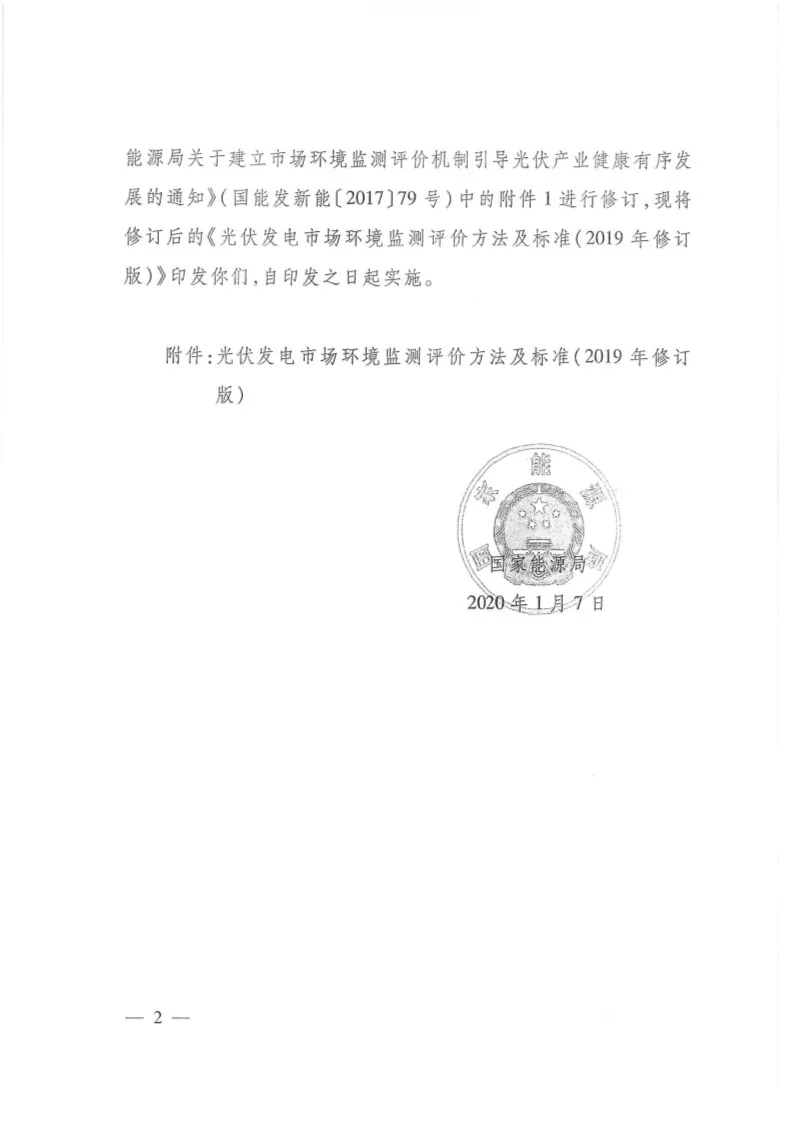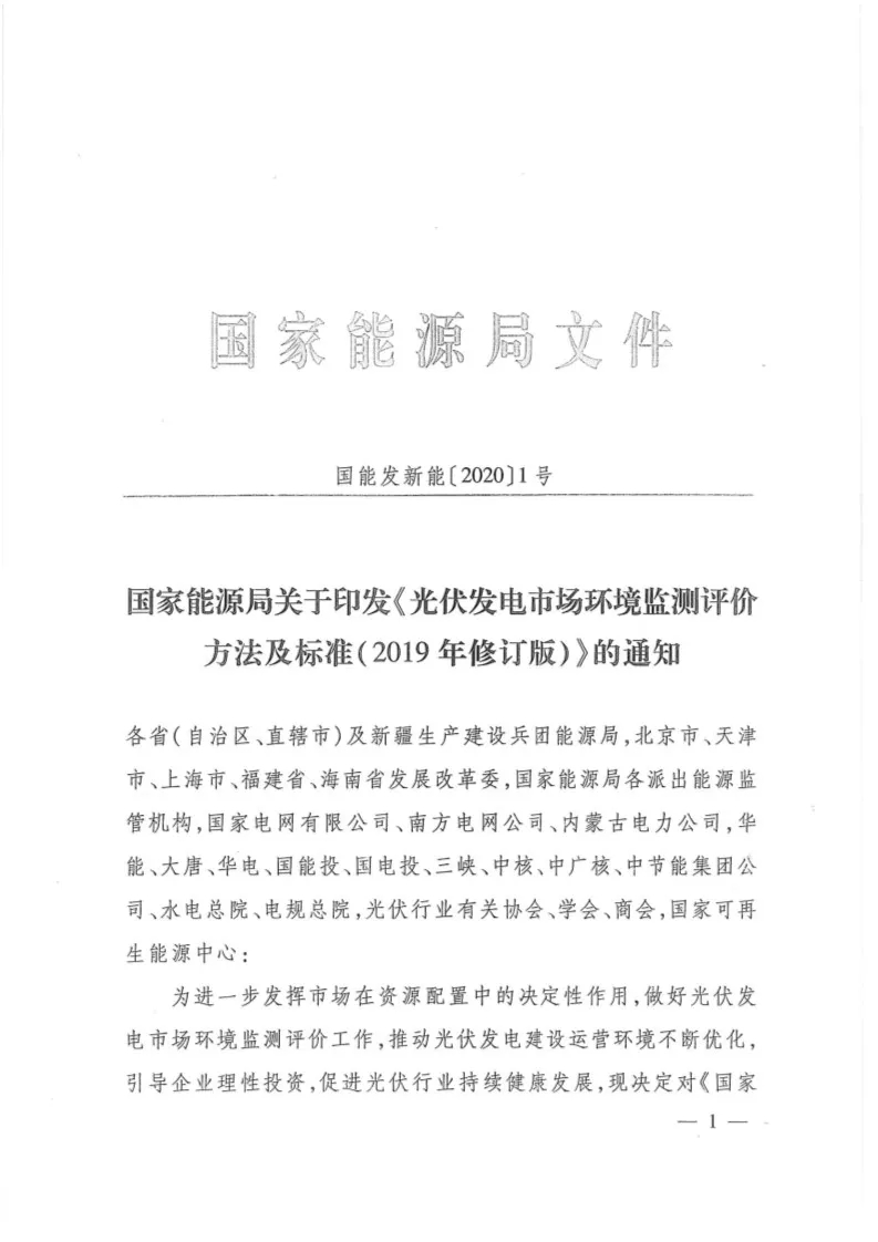 3月6日,上海發改委轉發了《國家能源局關于印發〈光伏發電市場環境監測評價方法及標準(2019年修訂版)〉的通知》的通知。 各區發展改革委、市電力公司: 近(jin)日,國家能(neng)源局(ju)印(yin)發(fa)了《光(guang)伏發(fa)電市(shi)場(chang)(chang)環(huan)境監(jian)測評價方法及(ji)標準(2019年修訂版)的(de)通知》(國能(neng)發(fa)新能(neng)〔2020〕1號),現將該通知轉發(fa)你單位(wei),請按(an)要求進一步做好本市(shi)光(guang)伏發(fa)電市(shi)場(chang)(chang)環(huan)境優化(hua)相(xiang)關工作。 一、請各區(qu)做好光伏(fu)項目管理(li)和發展規劃研究(jiu)工作。一是鼓勵各區出臺區級光(guang)伏(fu)補貼政策,研(yan)究制定本區(qu)資(zi)源競(jing)(jing)爭性配置辦法,資(zi)源配置工(gong)作(zuo)中不得附加(jia)條件(包(bao)括攤派(pai)、產(chan)業配套(tao)等(deng))。二(er)是密切跟蹤、加(jia)快推進2019年(nian)國(guo)家補(bu)貼(tie)競(jing)(jing)價目錄項目建設,加(jia)強項目事(shi)中事(shi)后監管(guan)。并及時(shi)做好2020年(nian)國(guo)家補(bu)貼(tie)競(jing)(jing)價工(gong)作(zuo)準備工(gong)作(zuo)。三(san)是排摸本區(qu)光伏建設資(zi)源,適(shi)時(shi)開展本區(qu)“十四五(wu)”期(qi)間(jian)光伏發展規劃(hua)前(qian)期(qi)研(yan)究。 二、請市電力公司做(zuo)好電網(wang)服務。一是依據全市光(guang)伏(fu)發(fa)電(dian)(dian)年度(du)實(shi)施(shi)方案(an),及時做好(hao)項目(mu)電(dian)(dian)力(li)(li)接(jie)入(ru)系統方案(an)確認和(he)(he)配套(tao)送出工程(cheng)建設。電(dian)(dian)力(li)(li)接(jie)入(ru)系統方案(an)批復(fu)平(ping)均工作(zuo)(zuo)周期須在3個月內。二(er)是落實(shi)本市光(guang)伏(fu)發(fa)電(dian)(dian)全額保障性收購政策,確保本市可再生能(neng)源(yuan)發(fa)電(dian)(dian)消納。三是及時做好(hao)電(dian)(dian)量(liang)計量(liang)、電(dian)(dian)費結算(suan)和(he)(he)補(bu)貼資金轉撥等工作(zuo)(zuo)。 特此通知。 附件:《國家(jia)能源局關于印發〈光伏發電市場環(huan)境監(jian)測評價(jia)方(fang)法及標準(2019年(nian)修訂版(ban))〉的(de)通知(zhi)》(國能發新(xin)能〔2020〕1號).pdf 上海(hai)市發(fa)展和(he)改(gai)革委員(yuan)會 2020年3月3日