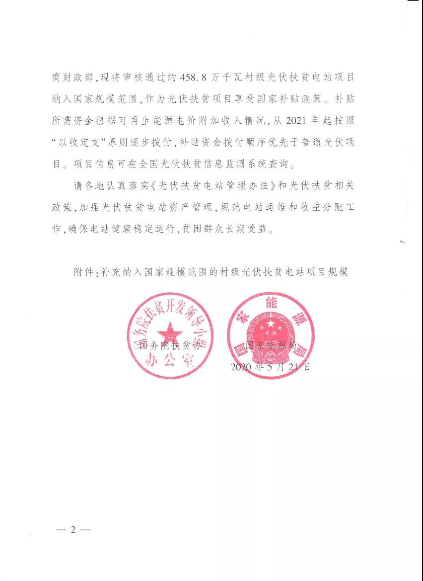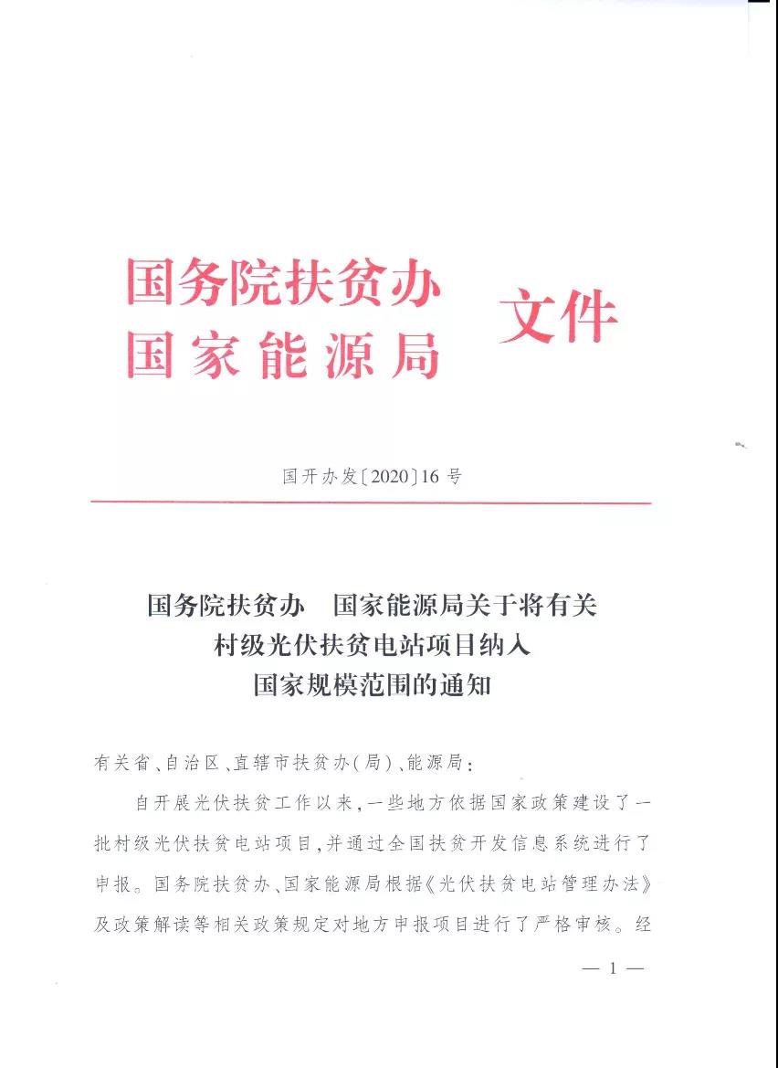 國務院扶貧辦、能源局聯合發文!4.588GW村級光伏扶貧電站項目納入國補范圍2020-05-26 22:02瀏覽數:3次