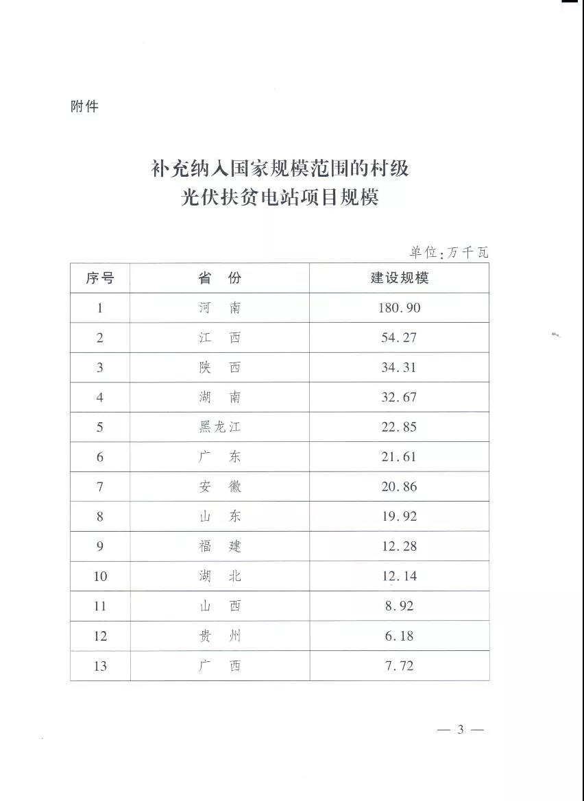剛剛,國務院扶貧辦和國家能源局聯合下發了《關于將有關村級光(guang)伏扶(fu)貧電站(zhan)項目納入國家規模范圍(wei)的通知(國開辦發(fa)[2020]16號)》 文件中指出:經商財政部,將審核通過的458.8萬千瓦村級光伏扶貧電站項目(mu)納入國家(jia)(jia)規模范圍,作為光伏扶貧項目(mu)享受國家(jia)(jia)補貼政策。 補貼(tie)資金按“以收定支”原則逐步(bu)撥付,補貼(tie)資金撥付順序優先(xian)于(yu)普通光伏項目。 項目信息(xi)可在全(quan)國光(guang)伏扶貧(pin)信息(xi)監測系統查詢。
