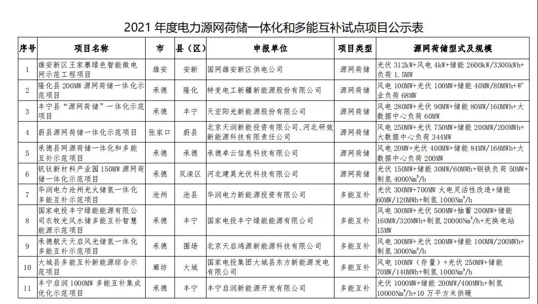 12月(yue)21日,河(he)北省發改委公示該(gai)省2021年(nian)度電(dian)力源網荷儲一(yi)體化(hua)(hua)和多(duo)能(neng)互(hu)補試(shi)點(dian)項(xiang)目(mu)(mu)。本次擬(ni)安排試(shi)點(dian)項(xiang)目(mu)(mu)11個,其中源網荷儲一(yi)體化(hua)(hua)項(xiang)目(mu)(mu)6個、多(duo)能(neng)互(hu)補項(xiang)目(mu)(mu)5個。國家電(dian)投、特變電(dian)工新疆新能(neng)源、國網、華潤電(dian)力等多(duo)家企業項(xiang)目(mu)(mu)入(ru)圍。 公示(shi)時間:2021年12月(yue)20日至(zhi)12月(yue)24日。 全(quan)文如下(xia): 河北省(sheng)2021年度電力源網荷儲一體化和(he)多能互(hu)補(bu)試點項目公示 按照《國家能(neng)(neng)(neng)源局綜合司關(guan)(guan)于推進2021年度(du)電力(li)(li)源網(wang)(wang)荷儲一(yi)體化(hua)(hua)和(he)(he)多(duo)能(neng)(neng)(neng)互(hu)補(bu)發展(zhan)工作的通知》、《河北(bei)省(sheng)發展(zhan)和(he)(he)改革委員會關(guan)(guan)于組織申(shen)報(bao)“十四(si)五”電力(li)(li)源網(wang)(wang)荷儲一(yi)體化(hua)(hua)和(he)(he)多(duo)能(neng)(neng)(neng)互(hu)補(bu)項目(mu)方案(an)的通知》等有(you)關(guan)(guan)要求,經各市申(shen)報(bao)把關(guan)(guan)、電網(wang)(wang)公司接入消納條件確(que)認及第(di)三方咨詢機構評審核查,現對(dui)河北(bei)省(sheng)2021年度(du)電力(li)(li)源網(wang)(wang)荷儲一(yi)體化(hua)(hua)和(he)(he)多(duo)能(neng)(neng)(neng)互(hu)補(bu)試點項目(mu)予以公示。本次擬(ni)安排(pai)試點項目(mu)11個,其(qi)中源網(wang)(wang)荷儲一(yi)體化(hua)(hua)項目(mu)6個、多(duo)能(neng)(neng)(neng)互(hu)補(bu)項目(mu)5個,具體名單見附(fu)件。 公示時(shi)間為(wei)2021年12月20日至(zhi)12月24日。期間如有異議,請向省發展(zhan)改革委(wei)(能源(yuan)局)電力處(chu)反映。 聯系(xi)電(dian)話:0311—88600577(傳真) 電子(zi)郵(you)箱:dlc@hbdrc.gov.cn 附件:2021年度電力(li)源(yuan)網荷儲(chu)一體化和多能互(hu)補試點項目公示表 河北省發展和改革(ge)委員會 2021年12月20日(ri) 上一篇: 煤電一體化企業進軍光伏!