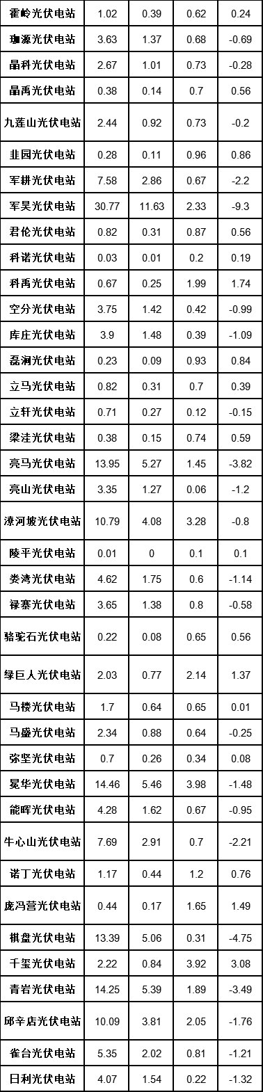 1月19日(ri),國家能源局河(he)南(nan)監管辦公室(shi)發布(bu)河(he)南(nan)能源監管辦關于2021年11月份新(xin)能源電廠并網運行(xing)管理結(jie)算情(qing)況的通(tong)知(zhi),其中涉及光伏項目137個。 原文 國網河南省電(dian)力公(gong)司、有關發電(dian)企業: 近期,國網(wang)河(he)南(nan)省(sheng)電(dian)力公(gong)司對(dui)我省(sheng)2021年(nian)11月份(fen)“新能(neng)源并(bing)網(wang)運行(xing)管(guan)理”考核(he)情況進(jin)行(xing)了(le)匯總(zong)和披露,各發電(dian)企業(ye)對(dui)結算數據進(jin)行(xing)了(le)復核(he)和確認,國網(wang)河(he)南(nan)省(sheng)電(dian)力公(gong)司將公(gong)示后(hou)的(de)結算情況上報河(he)南(nan)能(neng)源監管(guan)辦。 現(xian)將我省2021年11月份“新能源(yuan)電(dian)(dian)廠(chang)并網運(yun)行管理(li)”結算情況通知(zhi)如下(xia)(見附(fu)件)。請國網河(he)南省電(dian)(dian)力公司和各發電(dian)(dian)企(qi)業按(an)照通知(zhi)的結算費(fei)用,隨同(tong)電(dian)(dian)廠(chang)電(dian)(dian)費(fei)一并結算。執行中有何(he)問題請及時報河(he)南能源(yuan)監管辦。 河南能源監管辦 2022年1月18日 附件:2021年11月份河南省“新能源電廠并(bing)網運行(xing)管理”結算(suan)情況(光伏) 單位:電量:萬千瓦時(shi),費用:萬元