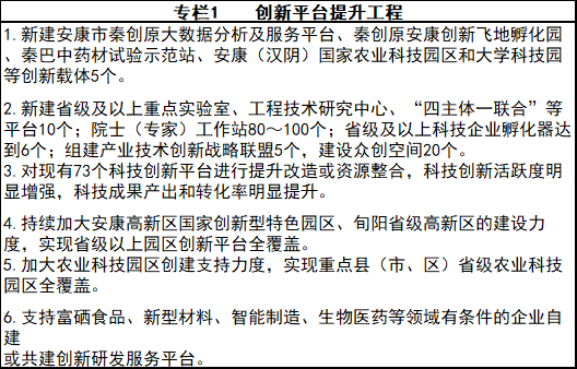 建設(she)五大載體:①安(an)康科技(ji)資源統(tong)籌(chou)共享(xiang)服務平臺;②秦創原安(an)康創新飛地孵(fu)化園;③秦巴中(zhong)藥材試驗示范(fan)站;④安(an)康(漢陰)國家(jia)農業科技(ji)園區;⑤大學科技(ji)園。