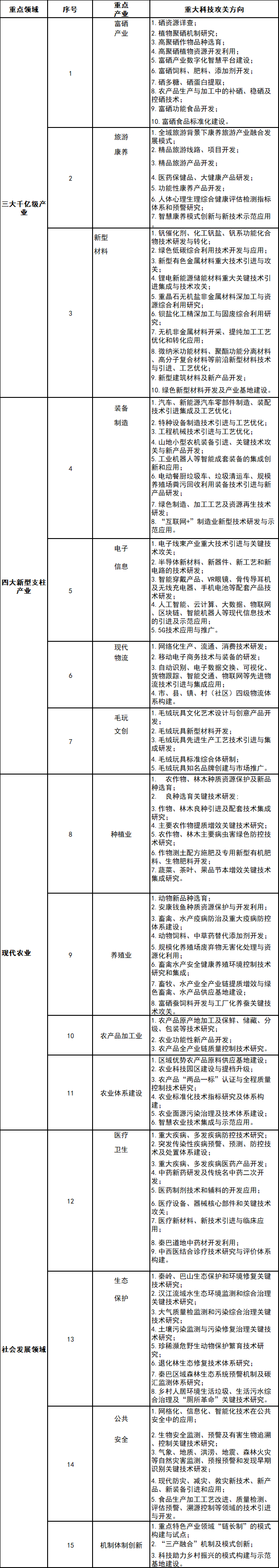 安康市“十四五”期間(jian)重點領域(yu)科技創新指南