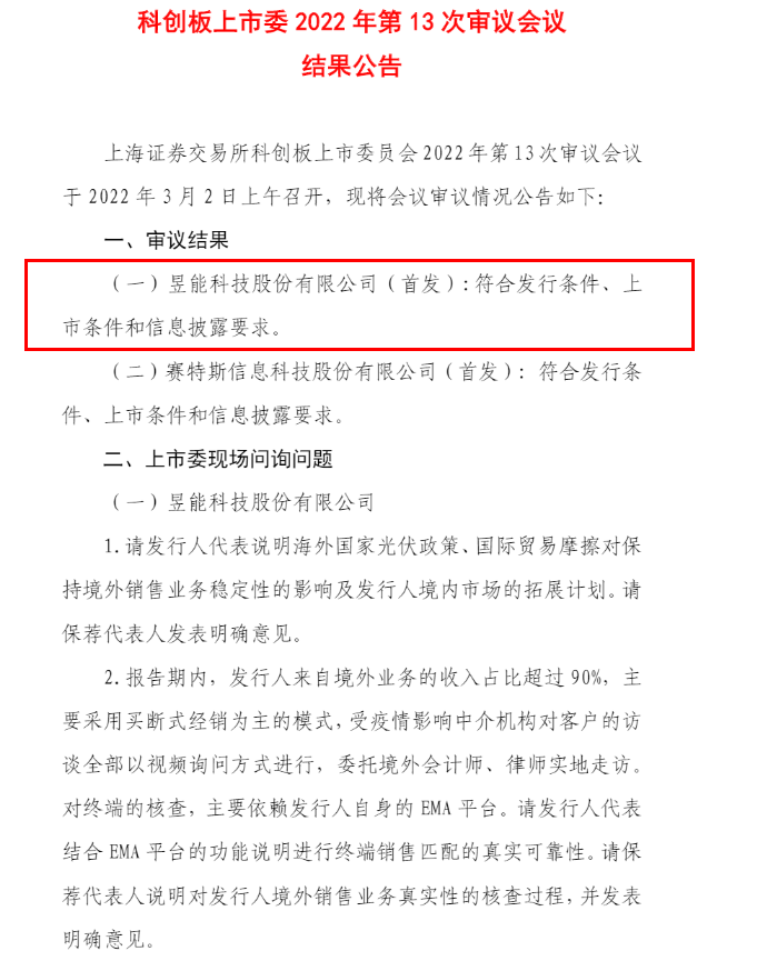 昱能科技科創板首發過會2022-03-03 15:44瀏覽數:3次