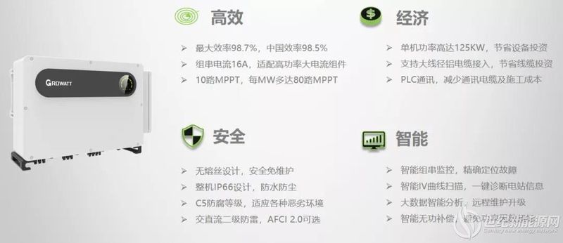 根據組(zu)件的電氣參數,最大(da)功率(lv)點的工(gong)作電流約10.9A,采用古(gu)瑞(rui)瓦特新(xin)一代MAX 100-125KTL3-X LV機(ji)型,能(neng)(neng)夠全面適配當下大功率組(zu)件,同時兼(jian)顧高效和經濟性,能(neng)(neng)夠更好(hao)的節約初始投資。具(ju)體產品特征如下:
