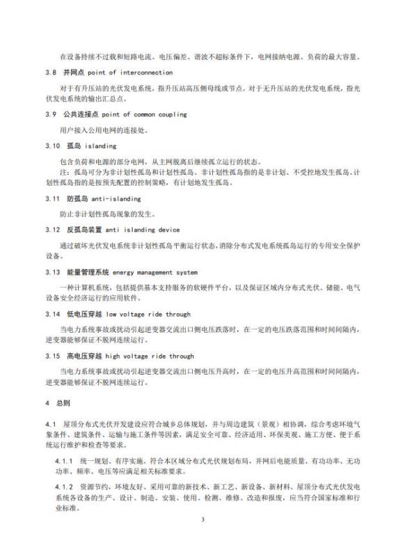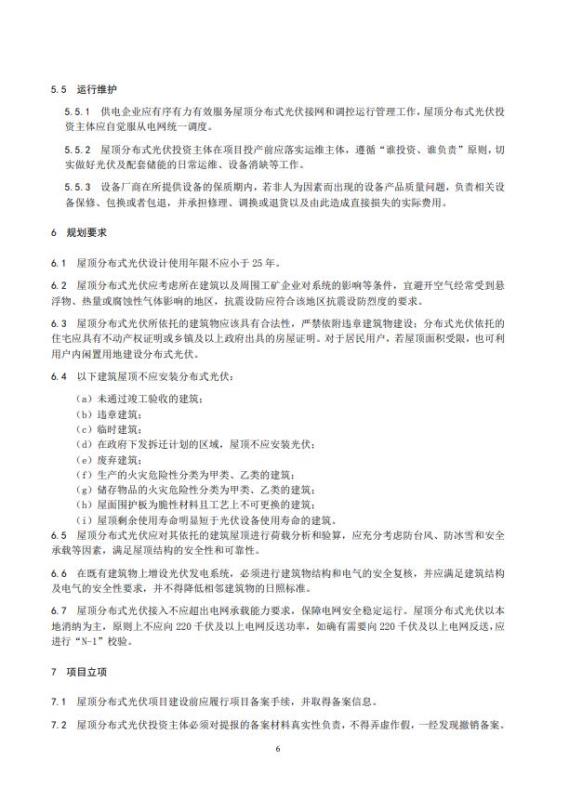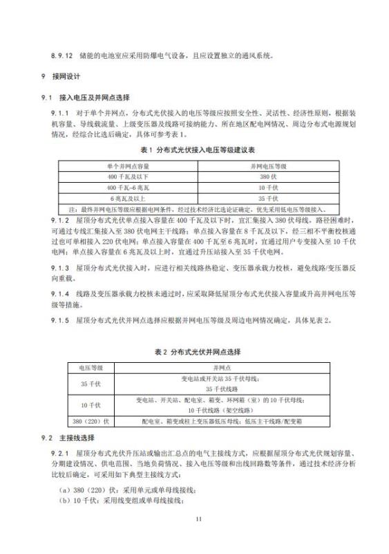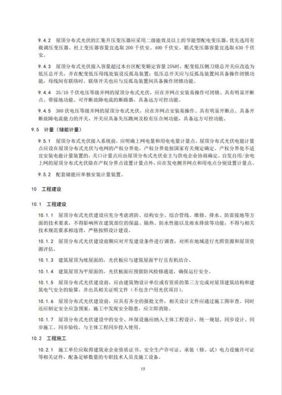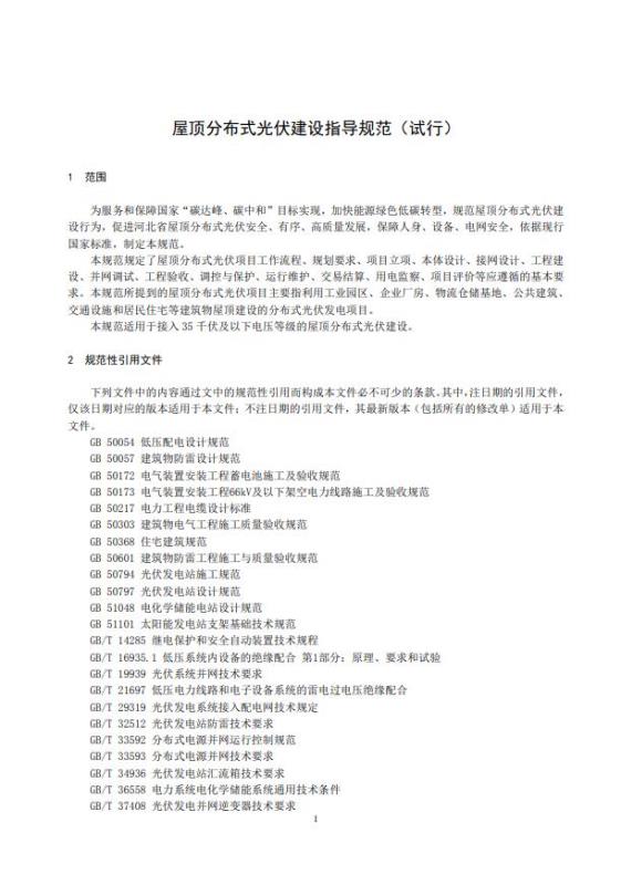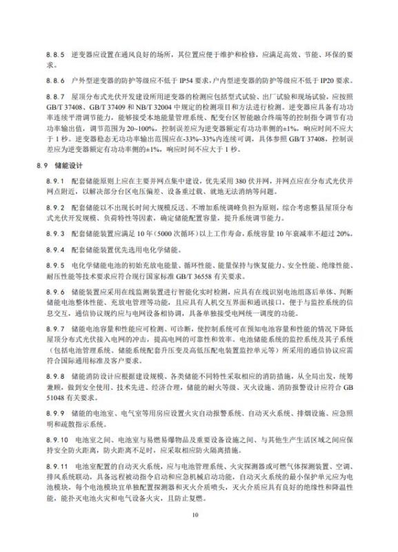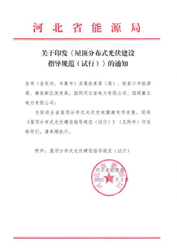 河北:屋頂分布式光伏項目逐步按照“光伏+儲能”方式開發建設3月16日,河北省能源局發布《屋頂分布式光伏建設指導規范(試行)》的通知。根據文件,本規范規定了屋頂分布式光伏項目工作流程、規劃要求、項目立項、本體設計、接網設計、工程建設、并網調試、工程驗收、調控與保護、運行維護、交易結算、用電監察、項目評價等應遵循的基本要求。 本規范所提到的屋頂分布式光伏項目主要指利用工業園區、企業廠房、物流倉儲基地、公共建筑、交通設施和居民住宅等建筑物屋頂建設的分布式光伏發電項目。 本規范適用于接入35千伏及以下電壓等級的屋頂分布式光伏建設。 屋頂分布式光伏項目逐步按照“光伏+儲能”方式開發建設,以確保電網安全運行和用戶供用電安全為原則,統籌考慮負荷特性和電能質量要求進行儲能配置。 屋頂分布式光伏配套儲能,可選擇自建、共建或租賃等方式靈活開展配套儲能建設。 屋頂分布式光伏設計使用年限不應小于25年。自然人的屋頂分布式光伏項目應不大于50千瓦。 配套儲能原則上應在主要并網點集中建設,優先采用380伏并網,并網點應在分布式光伏并網點附近,以解決部分臺區電壓偏差、設備重過載、就地無法消納等問題。 配套儲能以不出現長時間大規模反送、不增加系統調峰負擔為原則,綜合考慮整縣屋頂分布式光伏開發規模、負荷特性等因素,確定儲能配置容量,提升系統調節能力。 配套儲能裝置應滿足10年(5000次循環)以上工作壽命,系統容量10年衰減率不超過 20%。
