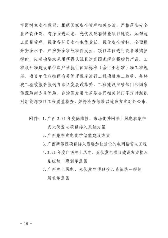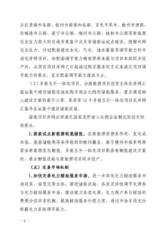 廣西:2023年底前建成投產電化學儲能容量不低于150萬千瓦/300萬千瓦時3月10日,廣西壯(zhuang)族(zu)自治(zhi)區(qu)發改委(wei)發布加快(kuai)推進既有(you)陸上(shang)風電、光伏發電項(xiang)目及配套(tao)設施建設方案。 方案中提出積極開展以集中共享式電化學儲能為重點的新型儲能示范應用,提升電力系統靈活調節能力,2023年底前建成投產電化學儲能容量不低于150萬千瓦/300萬千瓦時。 建立儲能(neng)(neng)服務購買機制,儲能(neng)(neng)項目投運后,可向風電(dian)、光伏發(fa)電(dian)項目有(you)償提供儲能(neng)(neng)服務,服務費(fei)用以不高于(yu)建設方案(an)規定(ding)比例儲能(neng)(neng)建設綜合成本且保(bao)障儲能(neng)(neng)建設企業(ye)合理收益為前提,由市場(chang)化并網新能(neng)(neng)源項目投資主體(ti)與(yu)儲能(neng)(neng)運營(ying)商(shang)協商(shang),一次性或按(an)年度支付(fu)。持續完善峰谷(gu)分時(shi)電(dian)價政策,構建用戶側儲能(neng)(neng)盈利模式,推進用戶側儲能(neng)(neng)加(jia)快發(fa)展。 須按照(zhao)要求(qiu)配(pei)置相應的(de)調(diao)節(jie)能(neng)(neng)力(li)(li)或購買(mai)相應比(bi)例(li)的(de)儲能(neng)(neng)服務(wu),并(bing)(bing)與項目本體同(tong)步(bu)建(jian)(jian)成投(tou)產或在(zai)(zai)項目并(bing)(bing)網(wang)(wang)前完成服務(wu)協議簽(qian)訂。鼓勵電(dian)網(wang)(wang)企(qi)業及有實力(li)(li)的(de)新能(neng)(neng)源(yuan)投(tou)資企(qi)業在(zai)(zai)系(xi)統(tong)需要的(de)區域建(jian)(jian)設集中共(gong)享儲能(neng)(neng)設施,重(zhong)點在(zai)(zai)貴港市(shi)(shi)(shi)東部(bu)、欽州市(shi)(shi)(shi)南部(bu)和東部(bu)、百色平(ping)果市(shi)(shi)(shi)、梧州市(shi)(shi)(shi)西部(bu)、防城港市(shi)(shi)(shi)北部(bu)、南寧市(shi)(shi)(shi)北部(bu)、柳州市(shi)(shi)(shi)北部(bu)、桂林(lin)市(shi)(shi)(shi)北部(bu)等(deng)新能(neng)(neng)源(yuan)送出(chu)壓力(li)(li)較大的(de)區域開展(zhan)集中式共(gong)享儲能(neng)(neng)站試點建(jian)(jian)設,緩解電(dian)網(wang)(wang) 送出(chu)壓力(li)(li)。計劃配(pei)套建(jian)(jian)設水電(dian)、氣電(dian)、抽水蓄能(neng)(neng)等(deng)調(diao)節(jie)能(neng)(neng)力(li)(li)的(de)市(shi)(shi)(shi)場化并(bing)(bing)網(wang)(wang)項目,如配(pei)套調(diao)節(jie)能(neng)(neng)力(li)(li)確(que)有困難未能(neng)(neng)與項目本體同(tong)步(bu)投(tou)產的(de),必須在(zai)(zai)項目并(bing)(bing)網(wang)(wang)之日起通過購買(mai)服務(wu)的(de)方式來滿足項目調(diao)節(jie)能(neng)(neng)力(li)(li)的(de)要求(qiu),直至(zhi)配(pei)套調(diao)節(jie)能(neng)(neng)力(li)(li)建(jian)(jian)成為(wei)止。 原文如下: