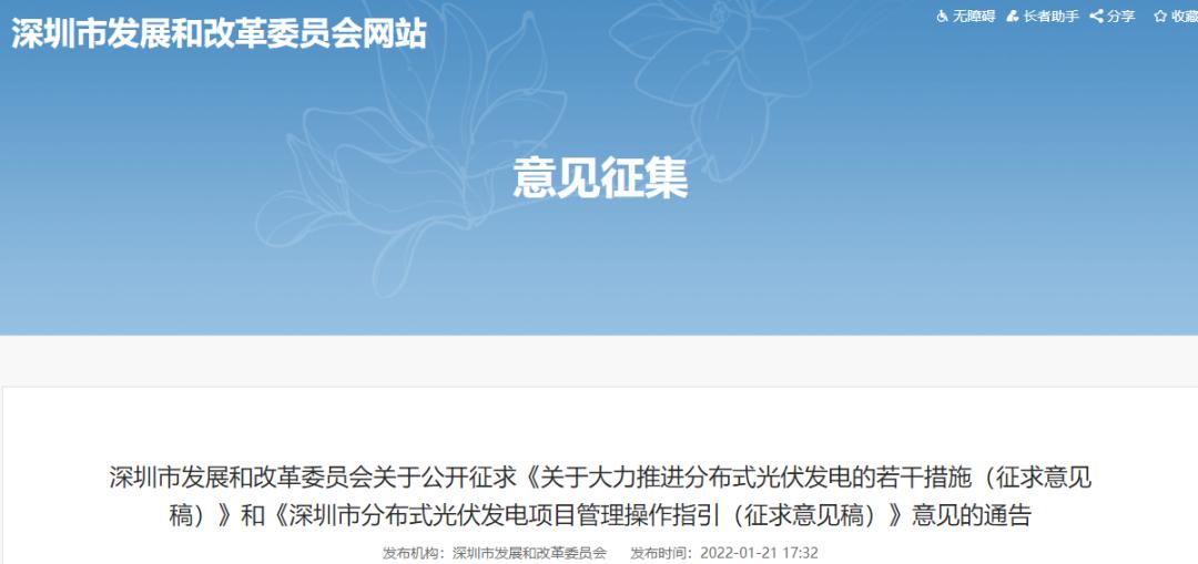 特此通(tong)告(gao)。 附件: 1.關(guan)于大力推進(jin)分布式光伏發(fa)電的若干(gan)措施(shi)(征求意見稿) 2.深(shen)圳(zhen)市分布式光伏發電項(xiang)目管理操作指引(征求(qiu)意見稿) 3.起(qi)草說(shuo)明(點(dian)擊“閱讀(du)原文”下載全部附件) 深圳市發展(zhan)和改革委員會 2022年1月21日(ri) 關于大力推進分布(bu)式光伏發電的若干措施 (征求意見稿) 為深入貫徹落實黨中(zhong)央、國(guo)務院關于(yu)碳達峰碳中(zhong)和決策(ce)部(bu)署,優化調整我市能源結構,千方百計加(jia)大可再生能源利用(yong)比例,加(jia)快(kuai)推進我市光(guang)伏產(chan)業(ye)高質量發展,支持分布(bu)式光(guang)伏發電項目(以(yi)下簡稱(cheng)“光(guang)伏項目”)推廣應用(yong),特制(zhi)定以(yi)下政策(ce)措施: 一、推(tui)進分布(bu)(bu)式光(guang)(guang)(guang)伏規模(mo)應用(yong)(yong)(yong)(yong)。鼓勵(li)充分利(li)用(yong)(yong)(yong)(yong)工(gong)業園區(qu)(qu)、企(qi)業廠房、物(wu)流倉儲基地、公共建(jian)(jian)(jian)(jian)(jian)筑(zhu)、交通(tong)設(she)施和居民住宅等建(jian)(jian)(jian)(jian)(jian)筑(zhu)物(wu)屋(wu)(wu)頂、外(wai)立面或附(fu)屬空(kong)閑場地,按照(zhao)“宜建(jian)(jian)(jian)(jian)(jian)盡建(jian)(jian)(jian)(jian)(jian)”原(yuan)則(ze),積極開(kai)(kai)展光(guang)(guang)(guang)伏項(xiang)(xiang)(xiang)目(mu)建(jian)(jian)(jian)(jian)(jian)設(she),因地制宜地實現分布(bu)(bu)式光(guang)(guang)(guang)伏規模(mo)應用(yong)(yong)(yong)(yong)。重點推(tui)動(dong)在(zai)工(gong)業園區(qu)(qu)規模(mo)化布(bu)(bu)局光(guang)(guang)(guang)電轉換效率達先(xian)進水平(ping)的光(guang)(guang)(guang)伏項(xiang)(xiang)(xiang)目(mu),鼓勵(li)推(tui)廣(guang)光(guang)(guang)(guang)伏建(jian)(jian)(jian)(jian)(jian)筑(zhu)一體化(BIPV)示范項(xiang)(xiang)(xiang)目(mu)。鼓勵(li)大型企(qi)業集團(tuan)積極開(kai)(kai)展光(guang)(guang)(guang)伏項(xiang)(xiang)(xiang)目(mu)建(jian)(jian)(jian)(jian)(jian)設(she)。鼓勵(li)各(ge)(ge)區(qu)(qu)政府(fu)(新區(qu)(qu)、合(he)(he)(he)(he)作(zuo)區(qu)(qu)管委(wei)(wei)(wei)會(hui))出臺針對性扶持(chi)政策,建(jian)(jian)(jian)(jian)(jian)立光(guang)(guang)(guang)伏發電應用(yong)(yong)(yong)(yong)協調(diao)工(gong)作(zuo)機制,引(yin)導建(jian)(jian)(jian)(jian)(jian)筑(zhu)業主單位(wei)(含使(shi)用(yong)(yong)(yong)(yong)單位(wei))自建(jian)(jian)(jian)(jian)(jian)或與專(zhuan)業化企(qi)業合(he)(he)(he)(he)作(zuo)建(jian)(jian)(jian)(jian)(jian)設(she)屋(wu)(wu)頂光(guang)(guang)(guang)伏項(xiang)(xiang)(xiang)目(mu),主動(dong)協調(diao)項(xiang)(xiang)(xiang)目(mu)備案、建(jian)(jian)(jian)(jian)(jian)筑(zhu)管理等工(gong)作(zuo),擇優選取先(xian)進光(guang)(guang)(guang)伏企(qi)業開(kai)(kai)展項(xiang)(xiang)(xiang)目(mu)的建(jian)(jian)(jian)(jian)(jian)設(she)運營(ying)。各(ge)(ge)區(qu)(qu)政府(fu)(新區(qu)(qu)、合(he)(he)(he)(he)作(zuo)區(qu)(qu)管委(wei)(wei)(wei)會(hui))要(yao)強化光(guang)(guang)(guang)伏項(xiang)(xiang)(xiang)目(mu)建(jian)(jian)(jian)(jian)(jian)設(she)主體責(ze)任(ren)意識,按照(zhao)年度任(ren)務(wu)有序推(tui)進項(xiang)(xiang)(xiang)目(mu)建(jian)(jian)(jian)(jian)(jian)設(she),力爭“十(shi)四五”期間全市新增光(guang)(guang)(guang)伏裝機容量達到(dao)150萬千瓦。[各(ge)(ge)區(qu)(qu)政府(fu)(新區(qu)(qu)、合(he)(he)(he)(he)作(zuo)區(qu)(qu)管委(wei)(wei)(wei)會(hui))負責(ze),市發展改革委(wei)(wei)(wei)、住房建(jian)(jian)(jian)(jian)(jian)設(she)局、交通(tong)運輸局配合(he)(he)(he)(he)] 二、完善光(guang)伏項(xiang)(xiang)(xiang)(xiang)(xiang)目(mu)(mu)(mu)管(guan)理工作(zuo)。加強(qiang)建(jian)(jian)筑安裝(zhuang)光(guang)伏發(fa)電(dian)設(she)(she)施的安全性評(ping)價(jia)和管(guan)理工作(zuo),市(shi)發(fa)展改(gai)革(ge)委(wei)負(fu)(fu)責(ze)制定(ding)(ding)光(guang)伏項(xiang)(xiang)(xiang)(xiang)(xiang)目(mu)(mu)(mu)管(guan)理操作(zuo)指(zhi)引,建(jian)(jian)立(li)簡便高效規范(fan)的項(xiang)(xiang)(xiang)(xiang)(xiang)目(mu)(mu)(mu)報批流(liu)程,明確項(xiang)(xiang)(xiang)(xiang)(xiang)目(mu)(mu)(mu)備案(an)(an)、建(jian)(jian)設(she)(she)、驗收(shou)(shou)、運維等工作(zuo)要求。項(xiang)(xiang)(xiang)(xiang)(xiang)目(mu)(mu)(mu)主體應(ying)在建(jian)(jian)設(she)(she)前向所在區(qu)發(fa)改(gai)部(bu)門申請項(xiang)(xiang)(xiang)(xiang)(xiang)目(mu)(mu)(mu)備案(an)(an)。項(xiang)(xiang)(xiang)(xiang)(xiang)目(mu)(mu)(mu)建(jian)(jian)成后,項(xiang)(xiang)(xiang)(xiang)(xiang)目(mu)(mu)(mu)建(jian)(jian)設(she)(she)單位應(ying)根據國家相(xiang)關規定(ding)(ding)和技術標準組織(zhi)項(xiang)(xiang)(xiang)(xiang)(xiang)目(mu)(mu)(mu)驗收(shou)(shou),電(dian)網企業負(fu)(fu)責(ze)并(bing)網驗收(shou)(shou)。[市(shi)發(fa)展改(gai)革(ge)委(wei)、各區(qu)政(zheng)府(新(xin)區(qu)、合(he)作(zuo)區(qu)管(guan)委(wei)會)、深(shen)圳供(gong)電(dian)局、深(shen)圳前海蛇口自貿區(qu)供(gong)電(dian)有(you)限公(gong)司按職責(ze)分工負(fu)(fu)責(ze)] 三、培(pei)育光(guang)(guang)(guang)伏產(chan)業(ye)(ye)和(he)骨干企(qi)(qi)業(ye)(ye)。支(zhi)持企(qi)(qi)業(ye)(ye)和(he)科(ke)(ke)研機構持續提升光(guang)(guang)(guang)伏材料、組件及(ji)配套設備等技術(shu)水平(ping),強化(hua)光(guang)(guang)(guang)伏裝備、電池片及(ji)組件、系統集成、電站建(jian)設運(yun)維產(chan)業(ye)(ye)鏈條。加(jia)強政(zheng)策引(yin)導與支(zhi)持,建(jian)立光(guang)(guang)(guang)伏產(chan)業(ye)(ye)骨干企(qi)(qi)業(ye)(ye)培(pei)育機制(zh