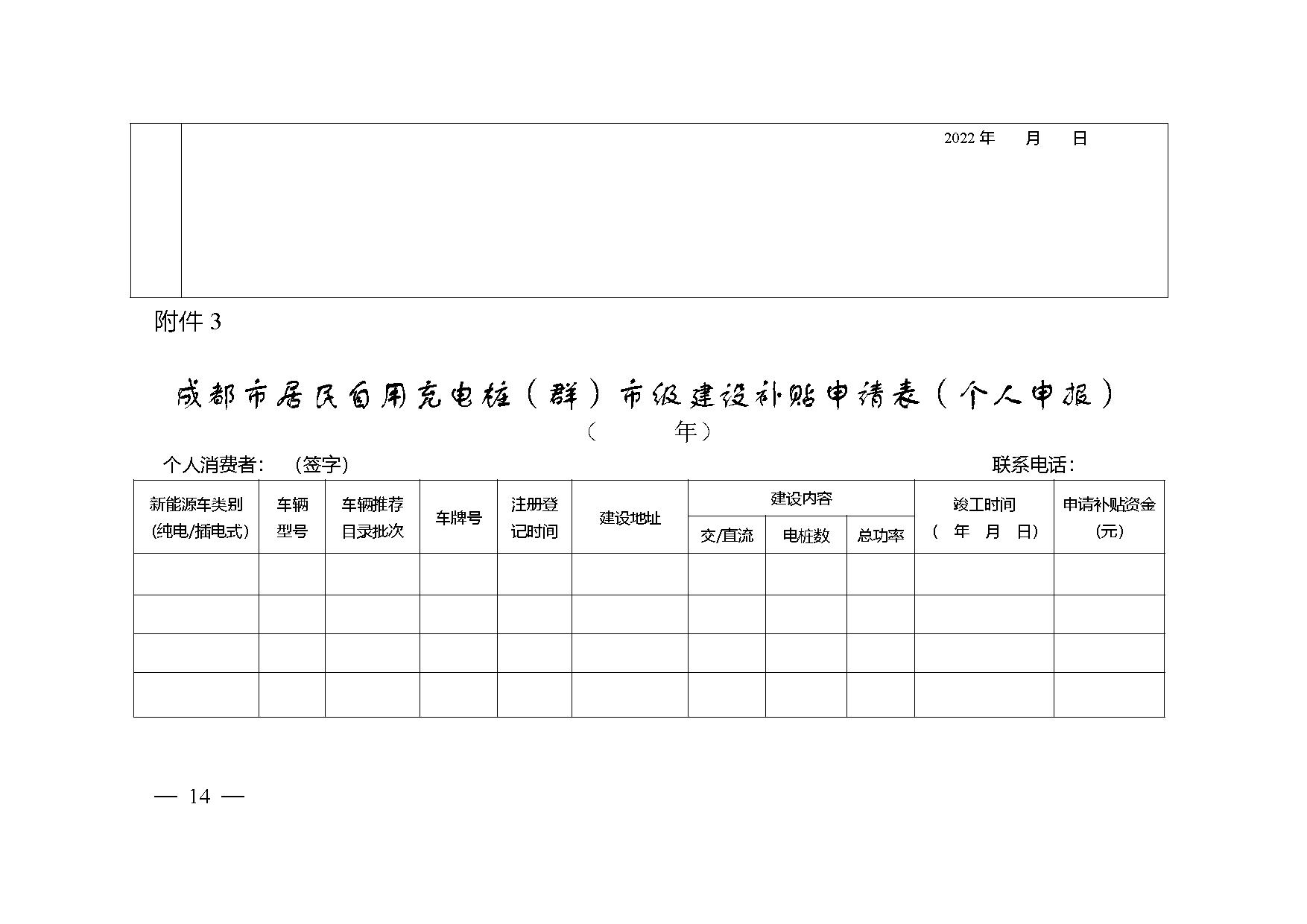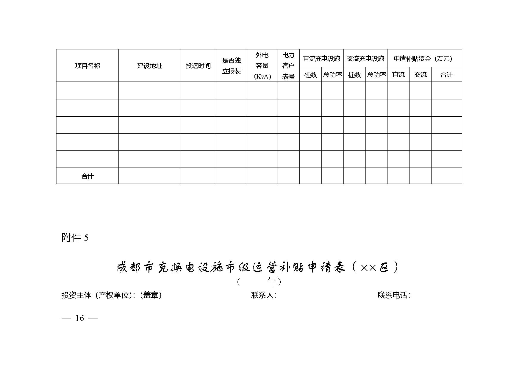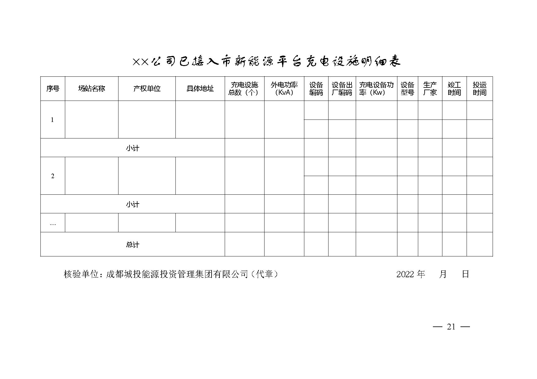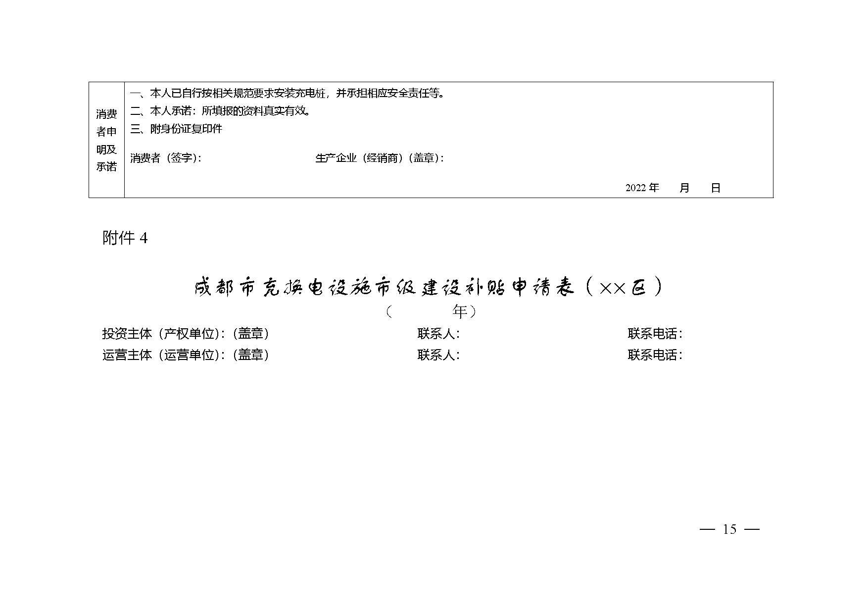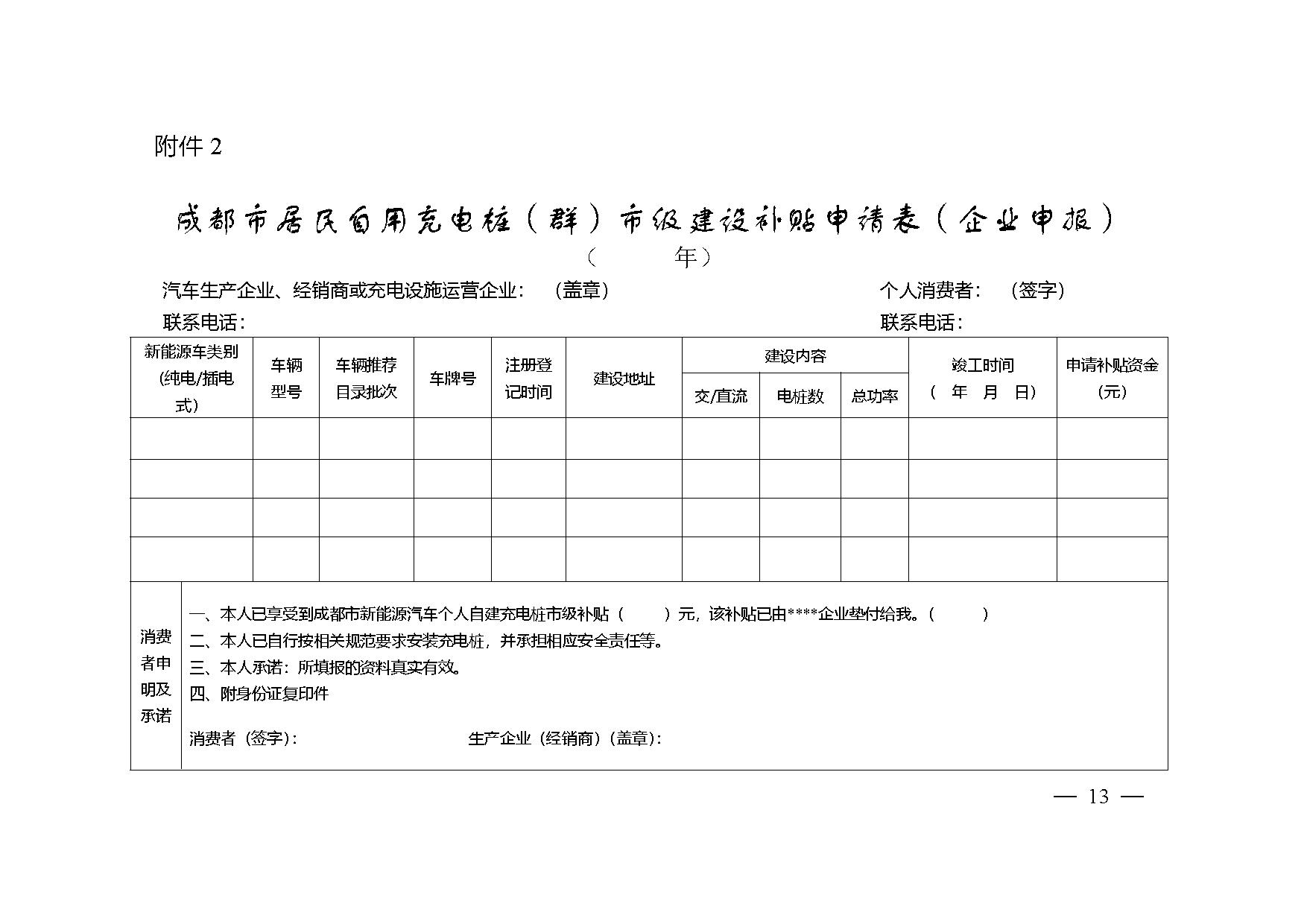 最高500萬元的運營補貼!成都開展2022年新能源汽車充電設施市級補貼申報工作6月(yue)1日,成(cheng)(cheng)(cheng)都(dou)經濟和信(xin)息化(hua)局(ju)發(fa)布關于(yu)組織成(cheng)(cheng)(cheng)都(dou)市2022年(nian)新能源汽車市級(ji)補貼申報工作的通知。申報建設補貼的,申報單位(wei)2021年(nian)度(du)在成(cheng)(cheng)(cheng)都(dou)全市行政(zheng)區(qu)域內建成(cheng)(cheng)(cheng)投運的充(chong)換(huan)電設施(shi)裝機功率不低于(yu)1000kW。 自(專)用(群),按照裝機功率給予投資主體交流(liu)每千瓦(wa)(wa)100元(yuan)、直流(liu)每千瓦(wa)(wa)200元(yuan)的一次性補貼,單(dan)個充電樁(群)最(zui)高20萬元(yuan)。 經(jing)營性(xing)集中式公(專)用充換電(dian)站(zhan)(BOT充換電(dian)站(zhan)除外),按照(zhao)裝機功(gong)率給(gei)予投資主體(ti)交流每(mei)千瓦(wa)150元、直流每(mei)千瓦(wa)400元,單個充換電(dian)站(zhan)最(zui)高500萬元的一次(ci)性(xing)補貼。 充換電(dian)設施年度累計充電(dian)量(BOT充換電(dian)站除外),按照(zhao)分(fen)段超額累進的(de)(de)方式(shi),給予投資主體(ti)最高500萬(wan)元(yuan)的(de)(de)運營(ying)補(bu)(bu)貼。補(bu)(bu)貼標準為:1000萬(wan)(含)千(qian)瓦時(shi)(shi)(shi)以內部分(fen),每(mei)千(qian)瓦時(shi)(shi)(shi)補(bu)(bu)貼0.1元(yuan);1000萬(wan)千(qian)瓦時(shi)(shi)(shi)至2000萬(wan)(含)千(qian)瓦時(shi)(shi)(shi)部分(fen),每(mei)千(qian)瓦時(shi)(shi)(shi)補(bu)(bu)貼0.15元(yuan);2000萬(wan)千(qian)瓦時(shi)(shi)(shi)以上部分(fen),每(mei)千(qian)瓦時(shi)(shi)(shi)補(bu)(bu)貼0.2元(yuan)。 原文如下: 關于組織(zhi)成都市2022年新能(neng)源汽車充電設施市級補(bu)貼申(shen)報工作的(de)通知 各充電樁有關企業: 市經信(xin)局、市財政局、市發改委已組(zu)織開展成都市2022年新能源汽(qi)車充電設施市級補貼申報(bao)工作(zuo)。為(wei)保障申報(bao)工作(zuo)有序組(zu)織開展,現(xian)請有關企業認真(zhen)閱讀(du)申報(bao)通(tong)知和附件要求,并(bing)且嚴格按(an)照通(tong)知和附件要求準備(bei)申報(bao)材料,詳細通(tong)知見鏈(lian)接: //cdjx.chengdu.gov.cn/cdsjxw/c132872/2022-05/24/content_6970803ae0b84fd0af6ed38d7493ddac.shtml。 一、申報條件 1. 申報單位(個人)應符合《成(cheng)都市支持氫能(neng)暨新能(neng)源汽車(che)產(chan)業發(fa)展及推(tui)廣應用若干政策實(shi)施(shi)細則(充換電(dian)基礎(chu)設施(shi)部分)》(成(cheng)經信辦〔2020〕1號)(見附件2)相關要求。 2. 申報建設補貼的(de),申報單(dan)位2021年度在成(cheng)都全市行政(zheng)區域(yu)內建成(cheng)投運的(de)充換(huan)電設施裝機(ji)功率(lv)不低于1000kW。 3. 申(shen)報(bao)單(dan)位須(xu)將(jiang)申(shen)報(bao)項目在(zai)內的所有充(chong)換(huan)電設(she)(she)施(shi)接(jie)入(ru)(ru)成都市(shi)(shi)新能(neng)源(yuan)汽車(che)及(ji)充(chong)電設(she)(she)施(shi)監測(ce)監管平臺(tai)(以下簡稱市(shi)(shi)車(che)樁(zhuang)平臺(tai)),并按照(zhao)市(shi)(shi)車(che)樁(zhuang)平臺(tai)要求(qiu)進行充(chong)換(huan)電基礎設(she)(she)施(shi)信息錄入(ru)(ru)及(ji)數據實時(shi)推送(song)。 二、申報方式及(ji)資料要求 1. 申報單位(wei)將其(qi)在龍泉驛區內的項目打捆(kun),編制申報資料并裝訂成(cheng)冊(紙質版一式5份、電子(zi)版1份),報送至(zhi)龍泉驛區經信局(ju)。 2. 申報單位須按照(zhao)《成都市(shi)支持氫能(neng)暨新能(neng)源汽車產業發展及(ji)推廣應用若干政策實(shi)施(shi)細(xi)則(充換(huan)電基(ji)礎設施(shi)部分)》(成經(jing)信(xin)辦〔2020〕1號)要求編(bian)制申報材料。 統一資料編(bian)制格式: (1)申報資料采用硬殼封面、A4紙張(zhang)、裝訂成(cheng)冊; (2)資料封(feng)面(mian)統一為“成都市2022年新能源汽車充電(dian)設施市級(ji)補貼申(shen)報書”,封(feng)面(mian)依次落申(shen)報單位(wei)正(zheng)式(shi)名稱、申(shen)報區(qu)域范圍、申(shen)報時(shi)間、聯系(xi)人及(ji)聯系(xi)方式(shi),加蓋(gai)單位(wei)公章; (3)按照《實施細則》要求提供材料(liao)的順序依(yi)次(ci)編(bian)制申(shen)報(bao)資料(liao)目錄; (4)資料(liao)(復印(yin)件)內(nei)容(rong)(rong)清晰、電子(zi)版(pdf格式)內(nei)容(rong)(rong)完整。 3. 申報(bao)項目所需材料確因客觀原因導致缺失的,申報(bao)單位須在申報(bao)材料中一并提交其他(ta)印證材料(說明)。 4. 申(shen)報(bao)單位對(dui)申(shen)報(bao)資(zi)料真實性負責,提供虛(xu)假信息騙取(qu)市(shi)級補貼(tie)的,取(qu)消申(shen)報(bao)單位(個人)申(shen)報(bao)資(zi)格。 三、申報要求及時間 1. 紙質材(cai)料一式5份,復印(yin)件需(xu)加蓋公章。 2. 電(dian)子(zi)版申報材料一份(整套資料帶章pdf掃(sao)描件)。 3. 申報單位于2022年6月23日(包含修改后提交時間)前將申報材料(liao)報送至(zhi)龍泉(quan)驛區經信(xin)局(經開區南四路325號(hao)成都公路口岸)811室,規定時間內未報送申報材料(liao)視為自動放棄,逾期不予受理。 成都市支持氫能暨新能源汽(qi)車產業發展 及推廣應(ying)用若干政策(ce)實(shi)施細則 (充換(huan)電(dian)設(she)施部分) 為(wei)加強新(xin)能源(yuan)(yuan)(yuan)(yuan)汽車充換電基礎設(she)施補貼資金的規(gui)范管(guan)理,根據財(cai)政部等四(si)部委《關(guan)于進(jin)一(yi)步(bu)完善新(xin)能源(yuan)(yuan)(yuan)(yuan)汽車推廣應(ying)用(yong)財(cai)政補貼政策的通知》(財(cai)建〔2019〕138號(hao))、國家發展(zhan)改革委等四(si)部委《關(guan)于印(yin)發〈提升新(xin)能源(yuan)(yuan