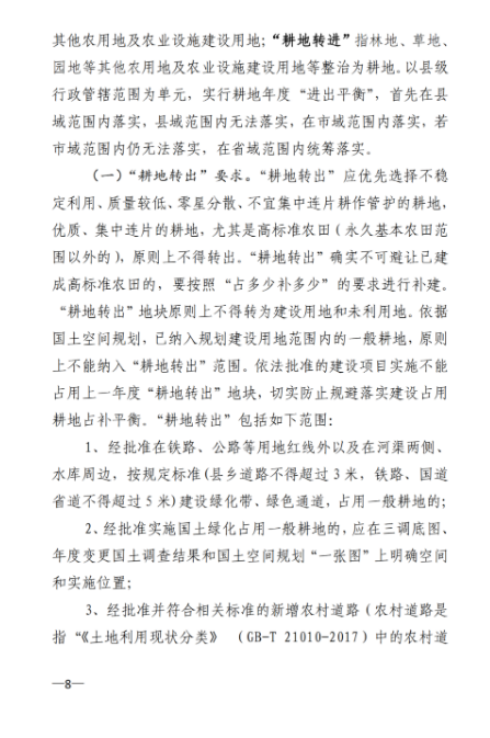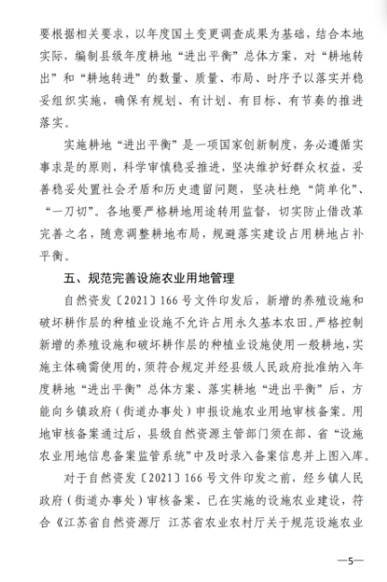 日前,江(jiang)(jiang)蘇(su)省自然資源廳、江(jiang)(jiang)蘇(su)省農業農村廳、江(jiang)(jiang)蘇(su)省林業局發布(bu)了《關于加強耕地保護嚴(yan)格耕地用途管制的通(tong)知》。 文件要(yao)求(qiu),嚴格耕(geng)(geng)(geng)地(di)(di)(di)(di)用途管制,是(shi)守(shou)住耕(geng)(geng)(geng)地(di)(di)(di)(di)紅線的改革舉措和現實(shi)需要(yao),遏制耕(geng)(geng)(geng)地(di)(di)(di)(di)“非農化”、防止(zhi)“非糧化”。強調要(yao)嚴防死守(shou)18億(yi)畝(mu)耕(geng)(geng)(geng)地(di)(di)(di)(di)紅線,采取(qu)長牙齒的硬措施(shi),落(luo)實(shi)最嚴格的耕(geng)(geng)(geng)地(di)(di)(di)(di)保護(hu)制度(du),18億(yi)畝(mu)耕(geng)(geng)(geng)地(di)(di)(di)(di)必須(xu)(xu)(xu)實(shi)至名歸,農田就是(shi)農田,而且必須(xu)(xu)(xu)是(shi)良田。必須(xu)(xu)(xu)相應落(luo)實(shi)耕(geng)(geng)(geng)地(di)(di)(di)(di)“占補(bu)平衡(heng)”或耕(geng)(geng)(geng)地(di)(di)(di)(di)“進出平衡(heng)。 文(wen)件還強調,已劃定的永(yong)(yong)(yong)久基本農田(tian),任何單位和(he)個(ge)人(ren)不得(de)擅自(zi)占用(yong)或者改(gai)變(bian)用(yong)途(tu)。能源、交通(tong)、水利、軍事設施等重大建設項目(mu)選址確(que)實(shi)難以避(bi)讓(rang)永(yong)(yong)(yong)久基本農田(tian)的,經依法批準,應在落實(shi)耕(geng)(geng)地(di)占補平衡(heng)基礎上,按照數(shu)量(liang)不減、質(zhi)量(liang)不降原(yuan)則,在可以長期(qi)穩定利用(yong)的耕(geng)(geng)地(di)上落實(shi)永(yong)(yong)(yong)久基本農田(tian)補劃任務。 嚴格(ge)執行建設(she)(she)占用(yong)耕(geng)(geng)地先補后占和(he)“占一(yi)補一(yi)、占優補優、占水(shui)田(tian)補水(shui)田(tian)”要求(qiu),確保依(yi)法(fa)批準建設(she)(she)占用(yong)耕(geng)(geng)地足額優質補充到位。嚴格(ge)管控耕(geng)(geng)地轉為林(lin)地、草地、園地等其他農(nong)用(yong)地以及(ji)新增農(nong)村(cun)道路、畜禽養殖(zhi)設(she)(she)施、水(shui)產養殖(zhi)設(she)(she)施和(he)破壞耕(geng)(geng)作層(ceng)的種(zhong)植業設(she)(she)施等農(nong)業設(she)(she)施建設(she)(she)用(yong)地,確需轉變用(yong)途的,應(ying)嚴格(ge)落實耕(geng)(geng)地“進出平(ping)衡”責任。 另外,耕(geng)地(di)“進出(chu)平衡”包括“耕(geng)地(di)轉(zhuan)出(chu)”和(he)“耕(geng)地(di)轉(zhuan)進”兩個方面。“耕(geng)地(di)轉(zhuan)出(chu)”指(zhi)一般耕(geng)地(di)轉(zhuan)為林地(di)、草地(di)、園(yuan)地(di)等其他(ta)農用(yong)地(di)及農業(ye)設施建設用(yong)地(di)。 “耕地轉進”指林地、草地、園地等(deng)其(qi)他農用(yong)地及農業設(she)施建(jian)設(she)用(yong)地等(deng)整(zheng)治為(wei)耕地。以縣(xian)級(ji)行政管轄范(fan)圍為(wei)單元,實(shi)(shi)行耕地年度“進出平(ping)衡”,首先(xian)在(zai)縣(xian)域范(fan)圍內(nei)落(luo)(luo)實(shi)(shi),縣(xian)域范(fan)圍內(nei)無(wu)法落(luo)(luo)實(shi)(shi),在(zai)市(shi)域范(fan)圍內(nei)落(luo)(luo)實(shi)(shi),若市(shi)域范(fan)圍內(nei)仍無(wu)法落(luo)(luo)實(shi)(shi),在(zai)省域范(fan)圍內(nei)統(tong)籌落(luo)(luo)實(shi)(shi)。 “耕(geng)地(di)轉(zhuan)出”要求(qiu): 一(yi)、應優先選擇(ze)不(bu)穩定利用、質(zhi)量(liang)較低、零(ling)星(xing)分散(san)、不(bu)宜(yi)集中(zhong)連片耕(geng)作管(guan)護的耕(geng)地(di),優質(zhi)、集中(zhong)連片的耕(geng)地(di),尤其是(shi)高標準農田(永久基(ji)本農田范圍以(yi)外的),原則(ze)上不(bu)得(de)轉出。 二、確實不可避讓已建成(cheng)高(gao)標準農田的,要(yao)按照“占多(duo)少補多(duo)少”的要(yao)求進行(xing)補建。“耕地轉出”地塊原則(ze)上(shang)不得轉為建設用地和(he)未利用地。 “耕地轉進”要求:優先考慮自(zi)身規(gui)模較大的(de)(de)地塊,或與周(zhou)邊現狀(zhuang)耕地布局集中連(lian)片、農田水利(li)設施配套較好的(de)(de)地塊。另外具體的(de)(de)耕地轉出(chu)、轉進范(fan)圍詳(xiang)看文件。 對于(yu)耕(geng)地(di)(di)“進(jin)出(chu)平(ping)衡”項目(mu)庫建設(she)與指標管理。根據縣級人民(min)政府申請,經省自然資源廳(ting)同意,將(jiang)已(yi)有的耕(geng)地(di)(di)占(zhan)補平(ping)衡、增(zeng)減(jian)(jian)掛(gua)鉤項目(mu)庫中新增(zeng)耕(geng)地(di)(di)指標轉至耕(geng)地(di)(di)“進(jin)出(chu)平(ping)衡”指標庫后(hou),扣(kou)除相(xiang)應的補充耕(geng)地(di)(di)指標和增(zeng)減(jian)(jian)掛(gua)鉤新增(zeng)耕(geng)地(di)(di)指標。2022年度實行“進(jin)出(chu)同步”,次年起嚴格執行“先進(jin)后(hou)出(chu)”。