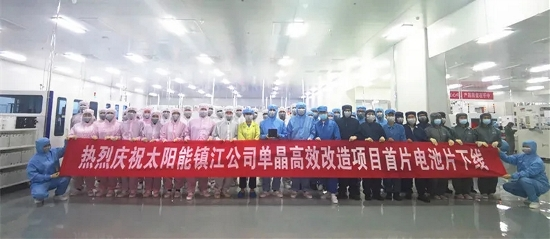 9月19日下(xia)午19點(dian)18分(fen),鎮江公司高效單(dan)晶雙面太陽(yang)電池技(ji)(ji)術升(sheng)級與智能(neng)制造(zao)技(ji)(ji)術改(gai)造(zao)項目(mu)(以下(xia)簡稱(cheng)“電池一車間技(ji)(ji)術改(gai)造(zao)項目(mu)”)首(shou)片(pian)電池片(pian)成(cheng)功(gong)下(xia)線! 中節能(neng)太陽能(neng)鎮(zhen)江公(gong)司(si)電(dian)池一車間(jian)技(ji)術改造項目首片(pian)高效單晶電(dian)池片(pian)的(de)(de)成功下線(xian),對于公(gong)司(si)全體(ti)而言(yan),是鎮(zhen)江公(gong)司(si)發(fa)展的(de)(de)又一里程(cheng)碑(bei),這(zhe)離(li)(li)不開(kai)上級公(gong)司(si)、主(zhu)管部門(men)的(de)(de)大力(li)支持,離(li)(li)不開(kai)相關領導的(de)(de)熱心關懷,離(li)(li)不開(kai)施工人員的(de)(de)辛勤付出,更離(li)(li)不開(kai)鎮(zhen)江公(gong)司(si)各(ge)部門(men)的(de)(de)通力(li)協作與高效落實。 只爭朝夕,攻堅克(ke)難。中節(jie)能太陽能鎮江人(ren)將秉承著讓發電更加綠(lv)色的美好(hao)愿景,不忘初心(xin)、牢記(ji)使命(ming),不斷激發科技創新活力(li),夯(hang)實質量根基(ji),提升(sheng)服務品(pin)質,為助(zhu)力(li)光(guang)伏產業高(gao)質量發展貢獻力(li)量。