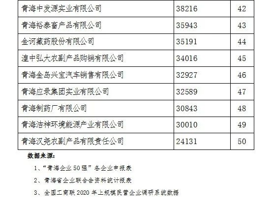 改革開放以來,黨和國家制(zhi)定的(de)一系列(lie)關于非(fei)公有制(zhi)經(jing)濟發(fa)(fa)展(zhan)的(de)方針政策(ce)和法律法規(gui),從根本上改變了(le)非(fei)公有制(zhi)經(jing)濟的(de)發(fa)(fa)展(zhan)環(huan)境,極大(da)地(di)激發(fa)(fa)了(le)人們自主創業(ye)的(de)熱(re)情,使蘊藏在人民群(qun)眾中的(de)勞動、知識(shi)、技術、管理(li)和資本的(de)活力得以競相迸發(fa)(fa)。 近年來,在省委、省政(zheng)(zheng)府的(de)高(gao)度(du)重(zhong)視(shi)下,省工業和(he)信息(xi)化廳、省工商聯等相關(guan)部門狠抓落實,我省連(lian)續出臺更多優惠政(zheng)(zheng)策,實施更多幫(bang)扶(fu)舉措,為民(min)營經濟和(he)中小企(qi)業的(de)持(chi)續健康發展(zhan)保駕護航。青(qing)海大地上一(yi)批民(min)營企(qi)業如雨后春筍般成長起來,許多耳熟(shu)能詳的(de)企(qi)業名字代表青(qing)海第一(yi)代非公有(you)制(zhi)企(qi)業的(de)輝煌。 更(geng)進一步地(di)推動我省民(min)營企業(ye)(ye)(ye)(ye)更(geng)好、更(geng)快的(de)穩步發(fa)展,為(wei)省內外各界提供青(qing)海民(min)營企業(ye)(ye)(ye)(ye)發(fa)展的(de)相關(guan)(guan)數據與研究(jiu)信(xin)息(xi)(xi)。由(you)省工業(ye)(ye)(ye)(ye)和信(xin)息(xi)(xi)化廳、省統計局、省工商聯、省企業(ye)(ye)(ye)(ye)聯合會共同組織,并在中(zhong)央(yang)駐青(qing)、省垣新聞單(dan)位(wei)和相關(guan)(guan)企業(ye)(ye)(ye)(ye)的(de)協助下,按照國際(ji)通行的(de)慣例,采(cai)取企業(ye)(ye)(ye)(ye)自愿申報的(de)方(fang)式,以(yi)2019年企業(ye)(ye)(ye)(ye)銷售收(shou)入(或(huo)主(zhu)營業(ye)(ye)(ye)(ye)務收(shou)入)為(wei)標準,排出(chu)了2020“青(qing)海民(min)營企業(ye)(ye)(ye)(ye)50強”名(ming)單(dan)。并經省內相關(guan)(guan)專家委(wei)員會審定(ding),現將名(ming)單(dan)予以(yi)公布。