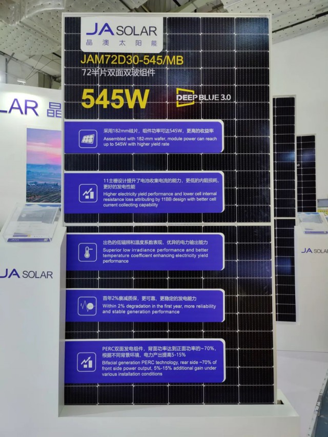 7月23日,備受矚(zhu)目(mu)的第17屆(jie)濟南太陽能利用大會(hui)暨博(bo)覽會(hui)在濟南高新(xin)國(guo)際(ji)會(hui)展中心盛大開幕。晶澳(ao)科技攜DeepBlue 3.0、DeepBlue 4.0 X等多款高效(xiao)產品亮相VIP6展(zhan)位,吸引(yin)了(le)眾多參展(zhan)觀眾駐足了(le)解。 DeepBlue 3.0組(zu)件作(zuo)為晶(jing)澳的(de)一(yi)款明星(xing)產(chan)品(pin),推出(chu)兩年來得到(dao)(dao)行業(ye)的(de)一(yi)致認可(ke),該組(zu)件基于目(mu)(mu)前(qian)市(shi)場主流(liu)的(de)182mm硅片(pian),采用p型PERCIUM+電(dian)池技(ji)(ji)術(shu)(shu)、摻鎵硅片(pian)技(ji)(ji)術(shu)(shu)、半片(pian)電(dian)池技(ji)(ji)術(shu)(shu)、MBB技(ji)(ji)術(shu)(shu)等高效(xiao)產(chan)品(pin)技(ji)(ji)術(shu)(shu),因此(ci)在(zai)組(zu)件可(ke)靠性(xing)能、效(xiao)率(功率)和發電(dian)性(xing)能等方面具有突出(chu)的(de)優勢。組(zu)件量產(chan)功率可(ke)以(yi)達到(dao)(dao)595W,效(xiao)率可(ke)以(yi)達到(dao)(dao)21.3%。北京(jing)豐臺站(zhan)站(zhan)房屋頂(ding)5.9MW分布(bu)式(shi)項(xiang)(xiang)目(mu)(mu)、北京(jing)聯合國大(da)樓(lou)85.6kW分布(bu)式(shi)項(xiang)(xiang)目(mu)(mu)、秘魯(lu)最大(da)連(lian)鎖超(chao)市(shi)品(pin)牌(pai)Plaza Vea 255.73kW分布(bu)式(shi)項(xiang)(xiang)目(mu)(mu)、巴西最大(da)超(chao)市(shi)集團Packages Limited總部3.12MW分布(bu)式(shi)項(xiang)(xiang)目(mu)(mu)等國內外(wai)重(zhong)點分布(bu)式(shi)項(xiang)(xiang)目(mu)(mu)均全部安(an)裝DeepBlue 3.0組(zu)件。 展會現場DeepBlue 3.0組件 本次展(zhan)出(chu)(chu)的另(ling)外一款(kuan)備(bei)受(shou)關注的產品,是晶(jing)澳(ao)最(zui)新推出(chu)(chu)的DeepBlue 4.0 X組(zu)(zu)件(jian)。這款(kuan)產品采(cai)用(yong)高(gao)效n型(xing)Bycium+電(dian)(dian)池(chi)和(he)零間距柔(rou)性(xing)互(hu)連(lian)技(ji)術(GFI)兩種核心(xin)技(ji)術,電(dian)(dian)池(chi)量(liang)產效率達(da)到24.8%以上,組(zu)(zu)件(jian)效率可以達(da)到22.4%,發(fa)電(dian)(dian)能力表現突(tu)出(chu)(chu)。晶(jing)澳(ao)聯(lian)合(he)TüV北德一年期實(shi)證結果顯示,采(cai)用(yong)Bycium+電(dian)(dian)池(chi)的n型(xing)組(zu)(zu)件(jian)發(fa)電(dian)(dian)量(liang)比p型(xing)組(zu)(zu)件(jian)高(gao)3.9%左右。高(gao)效、高(gao)發(fa)電(dian)(dian)能力、高(gao)可靠性(xing)是衡量(liang)光伏組(zu)(zu)(zu)件(jian)(jian)性能和客(ke)戶價值(zhi)的(de)核心標(biao)準,DeepBlue 4.0 X組(zu)(zu)(zu)件(jian)(jian)真(zhen)正詮釋(shi)了這一點(dian)。在(zai)組(zu)(zu)(zu)件(jian)(jian)版型方面(mian),DeepBlue 4.0 X有(you)54、72、78三種選擇,適用(yong)于不同(tong)的(de)應(ying)用(yong)場景(jing)(戶外(wai)屋頂(ding)、工商業屋頂(ding)以及大型地(di)面(mian)電站等(deng)),在(zai)分布(bu)式市場應(ying)用(yong)方面(mian)擁有(you)極大潛(qian)力。 上一篇: 晶澳科技出席2022年光伏產業鏈供應論壇