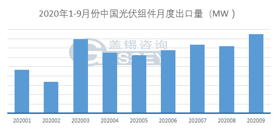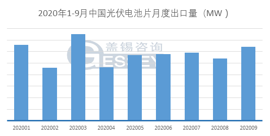 根(gen)據蓋錫(xi)咨詢調研數據分析,2020年9月份中國光(guang)伏組件出口量環比上升18%,電(dian)池(chi)片出口(kou)量環比上升19%。