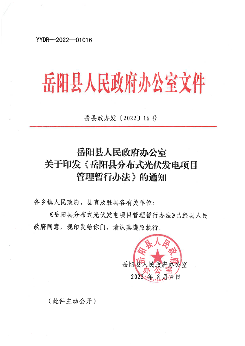 湖南岳陽縣發布《分布式光伏發電項目管理暫行辦法》2022-08-18 14:41瀏覽數:220次