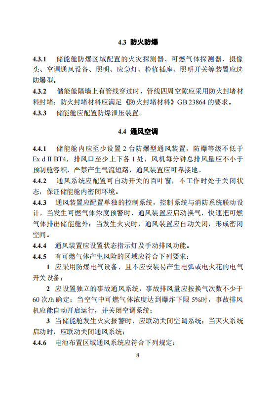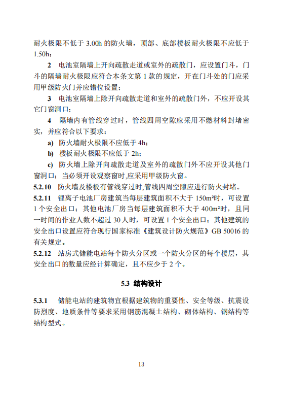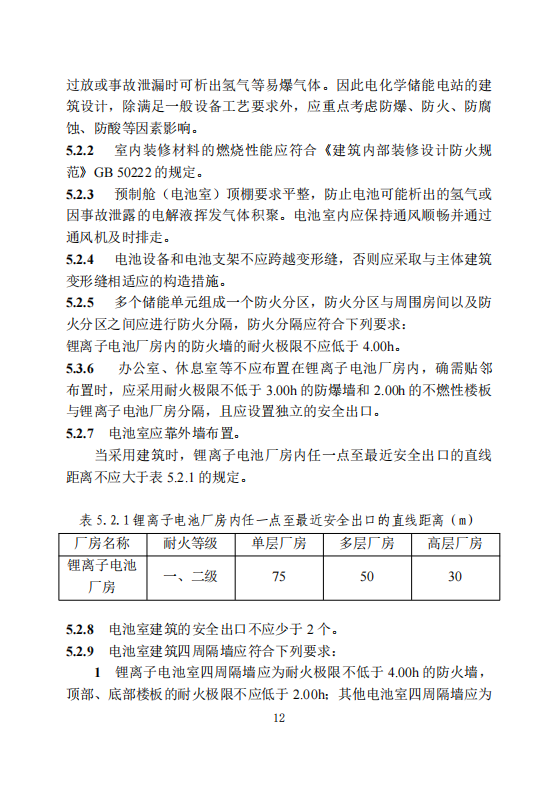 針對儲能安全!山東電化學儲能電站建設工程消防設計審查驗收技術指南!9月6日(ri),山東省住房(fang)和城鄉建(jian)設廳發布關于征求《山東省建(jian)設工程消防設計審查驗收(shou)技術指南(電化學)》意見的通知。 鋰離(li)子電池(chi)預(yu)制(zhi)艙之間的防火(huo)間距不(bu)應小于3米 ,短邊端不(bu)應小于4米(預(yu)制(zhi)艙本體之間的距離(li),不(bu)含(han)空調(diao)等附(fu)屬物)。當采用防火(huo)墻(qiang)時,防火(huo)間距不(bu)限。防火(huo)墻(qiang)長(chang)度、高度應超出預(yu)制(zhi)艙外(wai)廓(kuo)各1米。 鋰離子(zi)電(dian)池(chi)設備宜分(fen)區(qu)布(bu)置,單(dan)層電(dian)池(chi)廠(chang)房(fang)單(dan)個電(dian)池(chi)室額定能(neng)量(liang)(liang)不宜超(chao)過(guo)(guo) 30MWh,多層電(dian)池(chi)廠(chang)房(fang)單(dan)個電(dian)池(chi)室額定能(neng)量(liang)(liang)不宜超(chao)過(guo)(guo)15MWh。屋外(wai)電(dian)池(chi)預制艙(cang)(柜)布(bu)置分(fen)區(qu)內儲能(neng)系統(tong)額定能(neng)量(liang)(liang)不宜超(chao)過(guo)(guo)200MWh,相(xiang)鄰分(fen)區(qu)的間距不應(ying)小于10m。當間距不能(neng)滿足時,應(ying)設置耐(nai)火(huo)極(ji)限不低于4.00h的防火(huo)墻,防火(huo)墻應(ying)超(chao)出(chu)設備外(wai)輪廓1.0m。 原文如下: 山東省住房和城鄉(xiang)建設廳關于征求《山東省建設工(gong)程消防設計審查驗收技術指(zhi)南(電化(hua)學儲能電站(zhan))》意見的通知 各市住(zhu)房城(cheng)鄉建設局(ju)、行(xing)政審批(pi)局(ju),各有(you)關(guan)單(dan)位: 為規范和提高全省(sheng)電(dian)化學(xue)儲能電(dian)站(zhan)工程消防(fang)設(she)(she)(she)計審查驗收工作水平,保障電(dian)化學(xue)儲能電(dian)站(zhan)工程消防(fang)質量(liang)和安全,根據全省(sheng)建(jian)設(she)(she)(she)工程消防(fang)審驗工作計劃安排,省(sheng)住(zhu)房城(cheng)鄉建(jian)設(she)(she)(she)廳組織有(you)關單位和專家編制完成(cheng)了《山東省(sheng)建(jian)設(she)(she)(she)工程消防(fang)設(she)(she)(she)計審查驗收技術指南(電(dian)化學(xue)儲能電(dian)站(zhan))》(征求意見稿),現發你們征求意見,請于2022年9月19日(ri)前(qian)將意見建(jian)議報送至省(sheng)建(jian)設(she)(she)(she)工程消防(fang)技術服務中心。 聯系人:王齊 聯系(xi)電話:0531-51765371 電子郵箱(xiang):zjtwangqi@shandong.cn。 附件(jian)1:《山東省(sheng)建設工程消防(fang)設計審(shen)查驗收技術(shu)指南(電化學儲能電站)》征求意見稿.pdf 附件2:意見(jian)反(fan)饋表.doc 山東省住房和城鄉建(jian)設廳 2022年9月6日 相關閱讀: 北京(jing)市(shi)住房和城(cheng)鄉建設(she)(she)委(wei)員會 北京(jing)市(shi)規(gui)劃(hua)和自然資源委(wei)員會 北京(jing)市(shi)消(xiao)防救援總隊關于印發《北京(jing)市(shi)關于深化(hua)城(cheng)市(shi)更新中既有建筑改(gai)造消(xiao)防設(she)(she)計審(shen)查(cha)驗(yan)收改(gai)革的實施方案》的通(tong)知 各有關單位: 為進一步深化“放管服”改(gai)革(ge)和優化營商環境,著力改(gai)進本市(shi)既(ji)有建(jian)筑改(gai)造(zao)消(xiao)防設(she)計(ji)審(shen)(shen)查驗(yan)收管理(li),完善便(bian)民利企服務舉措,充分激發市(shi)場活(huo)力,推進城(cheng)市(shi)更新行動,市(shi)住房城(cheng)鄉建(jian)設(she)委(wei)、市(shi)規劃自(zi)然資(zi)源委(wei)、市(shi)消(xiao)防救援總隊制(zhi)定了《北京市(shi)關于深化城(cheng)市(shi)更新中既(ji)有建(jian)筑改(gai)造(zao)消(xiao)防設(she)計(ji)審(shen)(shen)查驗(yan)收改(gai)革(ge)的(de)實施(shi)方(fang)案(an)》,經市(shi)委(wei)全面深化改(gai)革(ge)委(wei)員會第22次(ci)會議(yi)和市(shi)政府第130次(ci)常務會議(yi)審(shen)(shen)議(yi)通過,現(xian)印(yin)發給你們,請認真貫徹執行。 北京市住房和城鄉建設委員會 北京市規劃和(he)自然(ran)資源委員會(hui) 北京市消防救援總隊 2021年11月28日 北京市(shi)關于深化城市(shi)更新中既有建筑改(gai)造消防設計審(shen)查驗收改(gai)革的實施(shi)方案(an) 為(wei)進(jin)一步深化“放管(guan)服”改(gai)革和優(you)化營商環境,著力(li)改(gai)進(jin)本市(shi)既有(you)建(jian)(jian)(jian)筑改(gai)造消防設(she)計審查驗(yan)(yan)收(shou)管(guan)理,完善便民利企服務舉(ju)措,充分激發市(shi)場活力(li),推進(jin)城(cheng)市(shi)更新(xin)(xin)行動(dong),根據《建(jian)(jian)(jian)設(she)工程消防設(she)計審查驗(yan)(yan)收(shou)管(guan)理暫行規定》《住(zhu)房和城(cheng)鄉建(jian)(jian)(jian)設(she)部辦公廳關(guan)于(yu)開展既有(you)建(jian)(jian)(jian)筑改(gai)造利用消防設(she)計審查驗(yan)(yan)收(shou)試點的通知》(建(jian)(jian)(jian)辦科(ke)函〔2021〕164號)、《北京市(shi)人民政府(fu)關(guan)于(yu)實(shi)施(shi)城(cheng)市(shi)更新(xin)(xin)行動(dong)的指導意見》(京政發〔2021〕10號)及相(xiang)關(guan)配套政策文件等有(you)關(guan)規定,結合本市(shi)實(shi)際,制定本實(shi)施(shi)方案。 一、總體要求 以(yi)(yi)習近平新時代中(zhong)國特(te)色(se)社(she)會主義思(si)想為指導,全面(mian)貫(guan)徹(che)黨的十九大和(he)(he)十九屆二中(zhong)、三中(zhong)、四中(zhong)、五中(zhong)、六中(zhong)全會精神,統籌(chou)發展與(yu)安(an)全,堅持問題導向(xiang)、突出首善(shan)標準、強化底線(xian)思(si)維(wei),以(yi)(yi)我市作為既有(you)建筑改(gai)造消(xiao)(xiao)(xiao)防(fang)(fang)設計(ji)審查驗收試點城市為契機,進(jin)一步(bu)聚(ju)焦市場主體關(guan)切,以(yi)(yi)健全消(xiao)(xia