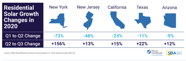 美國太(tai)陽能公司在2020年第三(san)季度(du)安裝(zhuang)了(le)3.8吉瓦的新太(tai)陽能光伏發電容量,這與第二季度的安裝量相比增加了9%,因為該行業努力從Covid-19大流行的部分最嚴重影響中恢復過來。 根據太(tai)陽(yang)能工業協(xie)會(SEIA)和伍德(de)·麥(mai)肯齊(Wood Mackenzie)發布的(de)(de)《美國太(tai)陽(yang)能市場洞察(cha)力2020年(nian)第四季度(du)(du)》報告,到2020年(nian)第三(san)季度(du)(du),太(tai)陽(yang)能占所有新增(zeng)(zeng)發電(dian)能力增(zeng)(zeng)加量(liang)(liang)的(de)(de)43%,超過任何其他電(dian)源(yuan)。該(gai)報告預測,到2020年(nian),新的(de)(de)太(tai)陽(yang)能裝(zhuang)機容量(liang)(liang)將達到創紀錄(lu)的(de)(de)19吉瓦,比(bi)2019年(nian)同比(bi)增(zeng)(zeng)長43%。 由于大(da)流行抬高了(le)市場,今(jin)(jin)年初(chu)幾個(ge)州的太(tai)陽能安裝量(liang)在今(jin)(jin)年初(chu)出現大(da)幅下降之后在第三季度反彈。 圖片:SEIA 住宅太陽能市場受到了大流(liu)行的商(shang)業影響,遭(zao)受的打擊最(zui)大。該市場超過(guo)了復蘇預(yu)期(qi),比第二季度(du)(du)增長了14%。即使如此,它仍然低(di)于第一季度(du)(du)的水平(ping)。 Wood Mackenzie的(de)高(gao)級分析師米歇(xie)爾·戴維斯(Michelle Davis)表示:“從邏輯(ji)上講,第二季度(du)安裝量下降幅(fu)度(du)最大(da)的(de)州,第三季度(du)的(de)回收量也最大(da),例(li)如紐(niu)約(yue)和新(xin)澤西,那里的(de)限制很大(da)。”“通過虛擬銷售(shou)策(ce)略和價格促銷等業務(wu)模式調整,在整個夏季和秋季期間都將(jiang)繼續帶(dai)來收益。” 公用事業規模市場是第三季(ji)度(du)安裝(zhuang)量(liang)(liang)的(de)主要驅動力,新增容(rong)量(liang)(liang)為(wei)2.7吉(ji)瓦,占第三季(ji)度(du)上線的(de)所有太陽(yang)能容(rong)量(liang)(liang)的(de)70%。 Sun Belt州(zhou)今年(nian)(nian)(nian)在(zai)增加新裝機容量方面處于領先地位,得克(ke)薩斯(si)州(zhou)和(he)佛羅里達州(zhou)到(dao)2020年(nian)(nian)(nian)第三季(ji)度都安裝了2吉瓦以上。這幾乎是這兩個州(zhou)在(zai)2018年(nian)(nian)(nian)和(he)2019年(nian)(nian)(nian)安裝的太(tai)陽能總(zong)量。 在(zai)該季(ji)度(du)中,Enel Green Power在(zai)其位于德克薩(sa)斯州(zhou)(zhou)阿普頓縣的(de)(de)Roadrunner太陽(yang)能(neng)(neng)發(fa)(fa)(fa)電(dian)(dian)(dian)廠的(de)(de)第二階(jie)段245兆瓦開(kai)始運營。497兆瓦項(xiang)目(mu)是(shi)德克薩(sa)斯州(zhou)(zhou)最大(da)的(de)(de)可運營太陽(yang)能(neng)(neng)發(fa)(fa)(fa)電(dian)(dian)(dian)場(chang),也是(shi)公司(si)在(zai)美國的(de)(de)最大(da)太陽(yang)能(neng)(neng)發(fa)(fa)(fa)電(dian)(dian)(dian)場(chang)。Enel Green Power的(de)(de)其他建設項(xiang)目(mu)包括得克薩(sa)斯州(zhou)(zhou)的(de)(de)181MW Lily太陽(yang)能(neng)(neng)+儲能(neng)(neng)項(xiang)目(mu),密蘇里州(zhou)(zhou)的(de)(de)236.5MW White Cloud風力發(fa)(fa)(fa)電(dian)(dian)(dian)項(xiang)目(mu),北達科(ke)他州(zhou)(zhou)的(de)(de)299MW Aurora風力發(fa)(fa)(fa)電(dian)(dian)(dian)項(xiang)目(mu)以及Cimarron Bend風力發(fa)(fa)(fa)電(dian)(dian)(dian)場(chang)的(de)(de)199MW擴(kuo)建在(zai)堪(kan)薩(sa)斯州(zhou)(zhou)。 SEIA Q3報告稱(cheng),公(gong)(gong)用事業規模的項目管道(dao)增(zeng)長至創紀(ji)錄的69.2GW,目前預計到(dao)2021年中,美國累(lei)計太陽能安裝量將(jiang)達到(dao)100GW。本季(ji)度宣布了(le)總計9.5GW的新公(gong)(gong)用事業PV電(dian)力(li)購買協議。 對2021-2025的(de)預測表(biao)明,太陽(yang)能(neng)總安(an)裝(zhuang)量將(jiang)超過107吉瓦(wa),比上一季(ji)度增加10吉瓦(wa),這(zhe)主要是受公(gong)用(yong)事業規模太陽(yang)能(neng)管(guan)道增加的(de)推(tui)動(dong)。