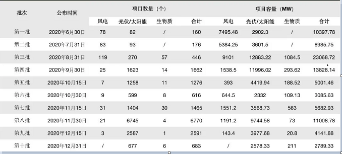 根據《財政部 國家發展改革委 國家能源局關于促進非水可再生能源發電健康發展的若干意見》(財建〔2020〕4號)、《財政部 國家發展改革委 國家能源局關于印發<可再生能源電價附加資金管理辦法>的通知》(財建〔2020〕5號)、《財政部辦公廳關于開展可再生能源發電補貼項目清單審核有關工作的通知》(財辦建〔2020〕6號)和《財政部辦公廳關于加快推進可再生能源發電補貼項目清單審核有關工作的通知》(財辦建〔2020〕70號)規定,國家電網有限公司積極配合各省級能源主管部門和國家可再生能源信息管理中心,為符合中央財政補助條件的可再生能源發電項目提供補貼清單申報服務。 自2020年6月30日起,國網新能源云平臺已經完成公示十批可再生能源發電項目補貼項目清單并上報國家主管部門。 截至2020年12月31日,完成公示程序后納入2020年可再生能源發電項目補貼清單項目數量15845個,項目總容量87990.4MW。 其中,太陽能發電項目15338個,項目容量58004.3MW;風電項目376個,項目容量27442.5MW;生物質項目131個,項目容量2543.6MW。 1~10批次可再生能源發電補貼項目清單