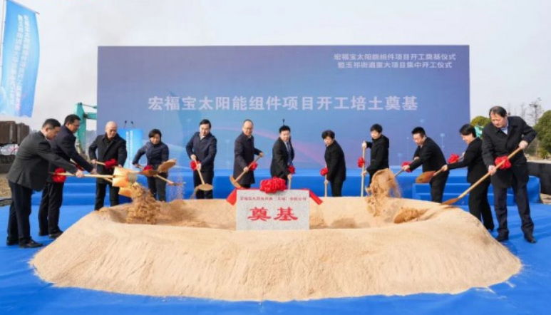 2023年2月(yue)3日(ri)上午,宏福寶太(tai)陽能(neng)科技(ji)(無錫)有限(xian)公司2GW太(tai)陽能(neng)高效組件項(xiang)(xiang)目(mu)奠基儀式隆(long)重(zhong)舉行,項(xiang)(xiang)目(mu)總投(tou)資6億元(yuan),建(jian)筑面積(ji)47600平方,達產(chan)后預計產(chan)值超20億。項(xiang)(xiang)目(mu)產(chan)業賽道新、投(tou)資規(gui)模大、科技含量高、是(shi)公司發展歷程的重(zhong)大里程碑。 出席今(jin)天開工奠基儀式的領導嘉賓有:無錫市政(zheng)(zheng)協(xie)副(fu)(fu)主席惠(hui)(hui)山區(qu)(qu)委(wei)(wei)書記吳建元(yuan),宏福(fu)寶太(tai)陽能科技(無錫)有限公司董(dong)(dong)(dong)事(shi)長(chang)(chang)陶元(yuan)福(fu)、副(fu)(fu)董(dong)(dong)(dong)事(shi)長(chang)(chang)周紫春、總經(jing)理吳慶豐、執行董(dong)(dong)(dong)事(shi)施超,惠(hui)(hui)山區(qu)(qu)人(ren)(ren)民政(zheng)(zheng)府區(qu)(qu)長(chang)(chang)程松,惠(hui)(hui)山區(qu)(qu)人(ren)(ren)大常(chang)委(wei)(wei)會主任(ren)計佳萍,惠(hui)(hui)山區(qu)(qu)政(zheng)(zheng)協(xie)主席鄧加紅(hong),惠(hui)(hui)山區(qu)(qu)委(wei)(wei)副(fu)(fu)書記,惠(hui)(hui)山高(gao)新區(qu)(qu)(籌)黨工委(wei)(wei)書記、洛社鎮黨委(wei)(wei)書記吳虹娟,惠(hui)(hui)山區(qu)(qu)委(wei)(wei)常(chang)委(wei)(wei)區(qu)(qu)政(zheng)(zheng)府常(chang)務副(fu)(fu)區(qu)(qu)長(chang)(chang)何國清,惠(hui)(hui)山區(qu)(qu)人(ren)(ren)民政(zheng)(zheng)府副(fu)(fu)區(qu)(qu)長(chang)(chang)趙磊(lei),惠(hui)(hui)山區(qu)(qu)人(ren)(ren)民政(zheng)(zheng)府副(fu)(fu)區(qu)(qu)田紅(hong)保,惠(hui)(hui)山區(qu)(qu)人(ren)(ren)民政(zheng)(zheng)府副(fu)(fu)區(qu)(qu)長(chang)(chang)虞潔,玉祁街道(dao)黨工委(wei)(wei)書記楊丹。同時(shi),還(huan)有公司的高(gao)管(guan)、合作伙(huo)伴以及各界人(ren)(ren)士,共(gong)同見證了(le)這(zhe)一(yi)重要(yao)時(shi)刻。 首先,由惠山區玉祁街道黨工委(wei)書記楊丹致辭,對宏(hong)福(fu)寶(bao)入(ru)駐(zhu)玉祁街道表達了熱烈(lie)歡迎,并表示未來政府(fu)一(yi)定做好(hao)各項服務,同時預祝(zhu)宏(hong)福(fu)寶(bao)發展蒸蒸日(ri)上。 隨(sui)后,由宏福寶太陽能科技(無錫)有限公司董事長陶元福介(jie)紹了項目的基本情況和(he)行業的發展(zhan)愿景。 最(zui)后,由無錫(xi)市政(zheng)協副主席惠山(shan)區委書記吳建元宣(xuan)布奠基儀式正(zheng)式開始,政(zheng)府(fu)相關(guan)領(ling)導、公司負責人(ren),相關(guan)建設單位(wei)領(ling)導等共(gong)同為項目進(jin)行培土奠基。伴隨著禮炮鳴響(xiang),開工典禮圓(yuan)滿落幕,這也標志(zhi)著宏(hong)福(fu)寶(bao)太陽(yang)能(neng)科(ke)技(無錫(xi))有限公司2GW太陽(yang)能(neng)高效組件項目奠基正(zheng)式啟動。在(zai)不遠的(de)將來(lai),宏(hong)福(fu)寶(bao)定(ding)將繼續(xu)譜寫高質(zhi)量(liang)發(fa)展的(de)篇章。