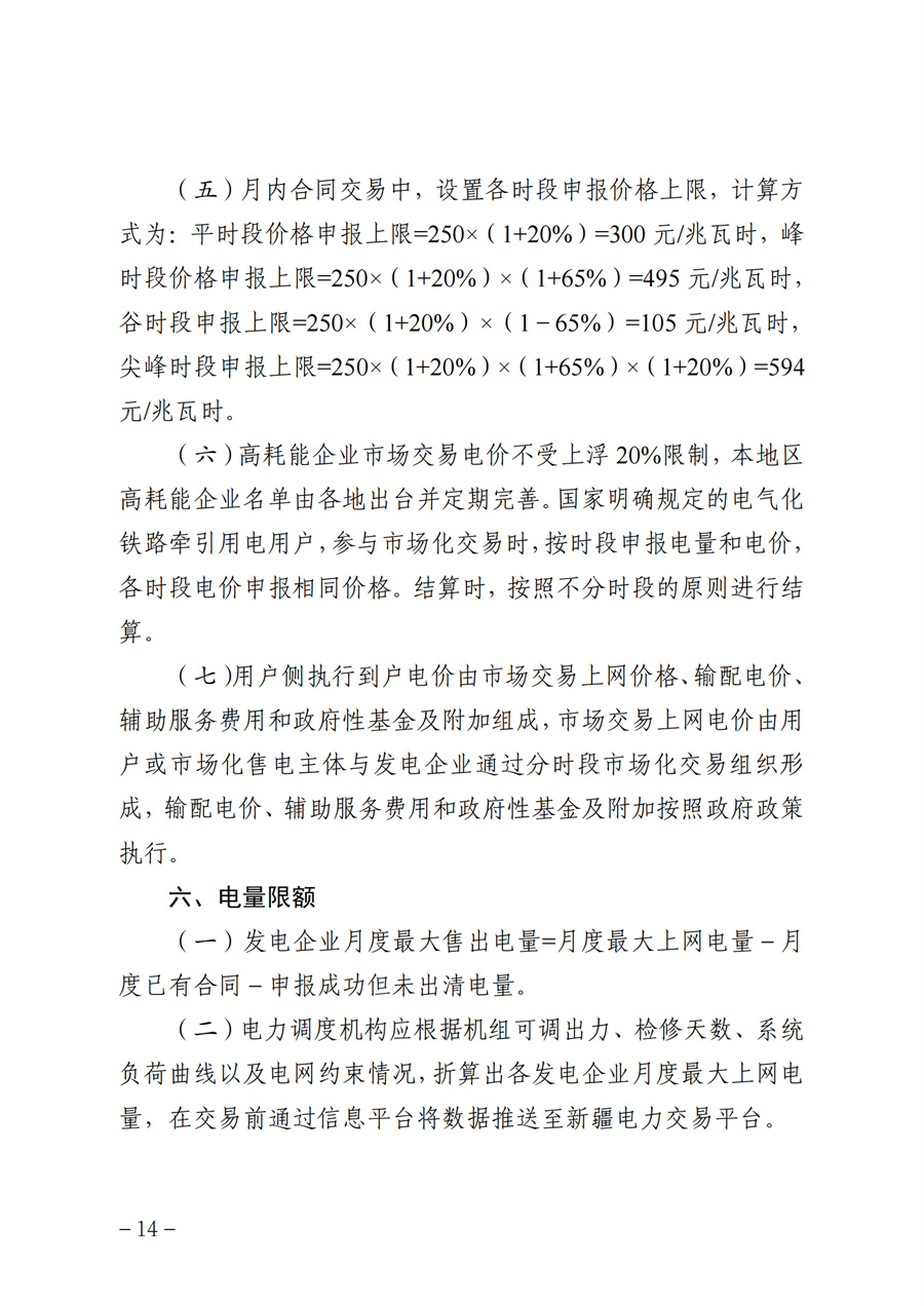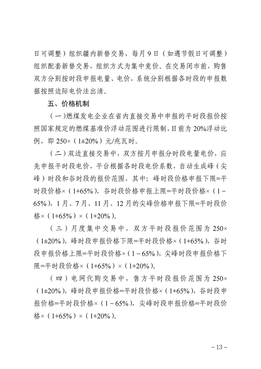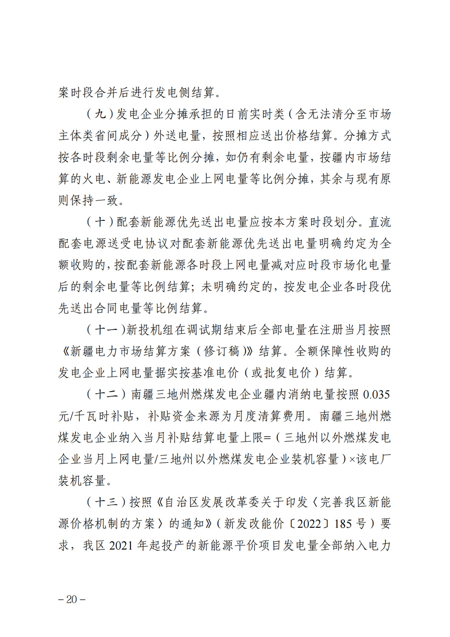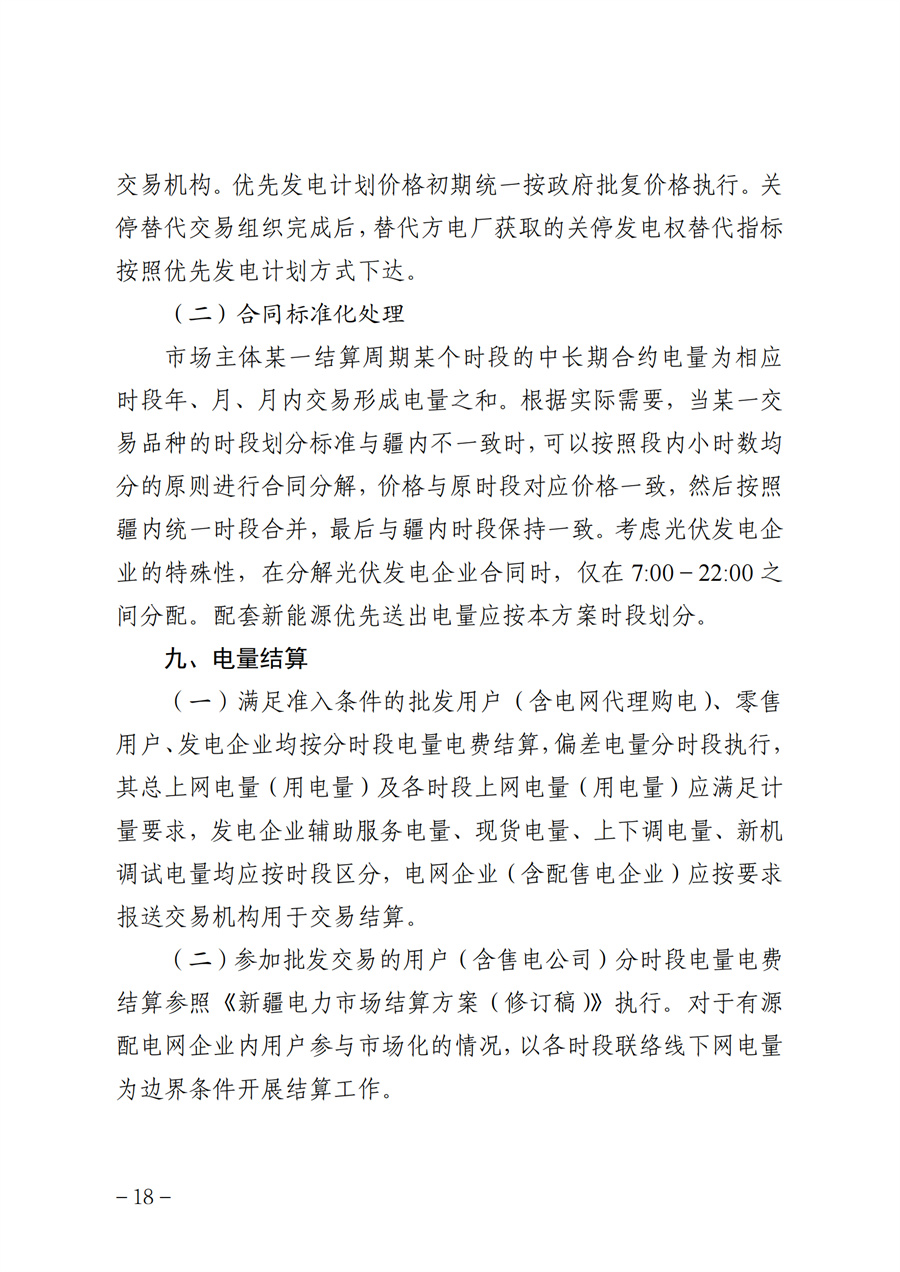 關于印發《新疆維吾爾自治區2023年電力市場化交易實施方案》的通知,通知指出,集中式扶貧光伏、特許權新能源、示范試驗類新能源等實行全額保障性收購,暫不參與新疆電力市場交易。 發電企業各時段最大申報電量=交易單元對應的裝機容量×(交易周期內自然月各時段對應的小時數)·K-該月各時段已成交合同-各時段申報成功但未出清電量,其中光伏發電企業僅在7:00-22:00之間折算各時段對應的小時數,火電企業K值取92%,新能源K值取80%。 原文如下: 關于印發《新疆維吾爾自治區2023年電力市場化交易實施方案》的通知 各地、州、市發展改革委,國網新疆電力有限公司,新疆電力交易中心有限公司,各有關企業: 根據《電力中長期交易基本規則》等國家有關文件要求,結合我區實際,我委編制了《新疆維吾爾自治區2023年電力市場化交易實施方案》。現印發給你們,請認真貫徹執行。 自治區發展改革委 2023年1月4日